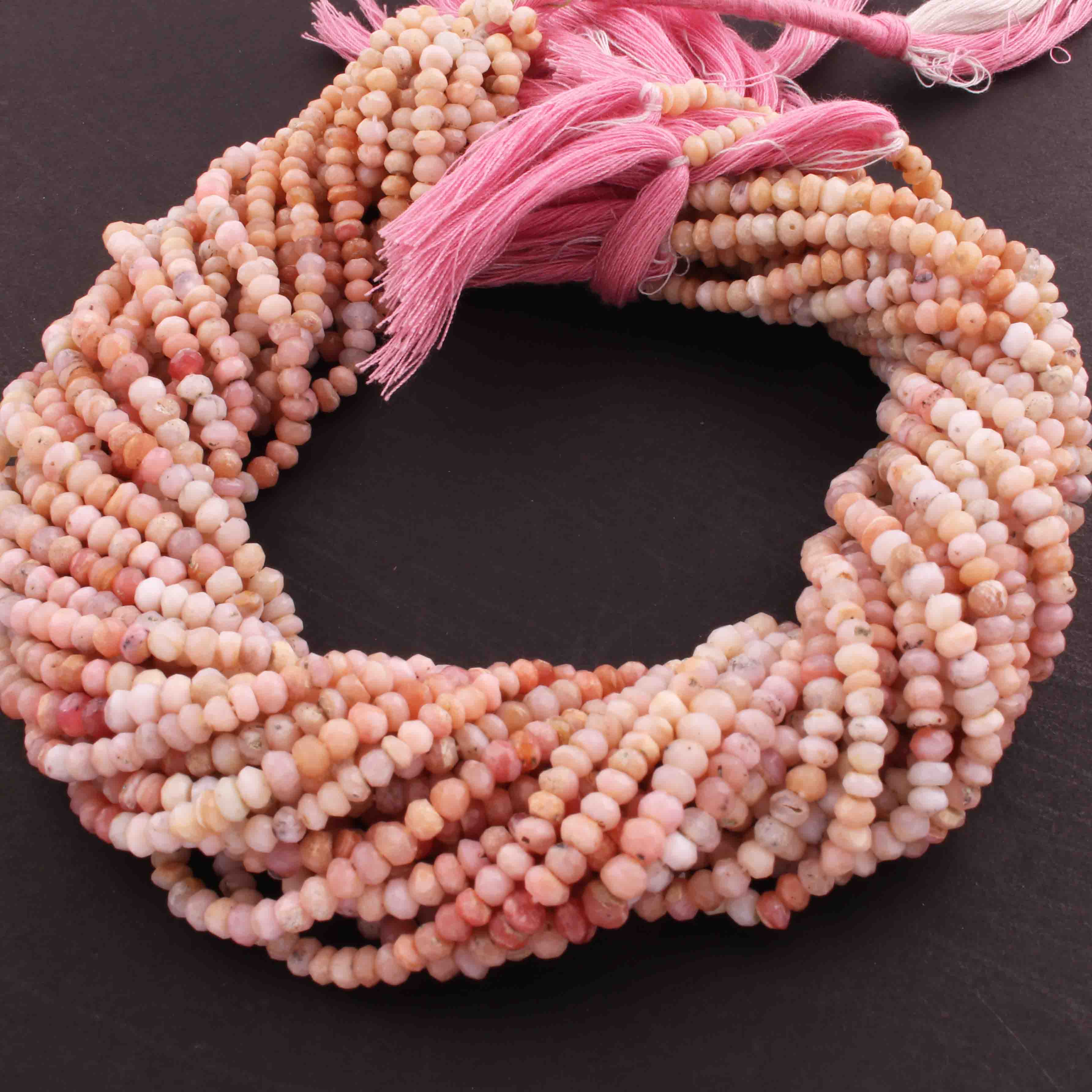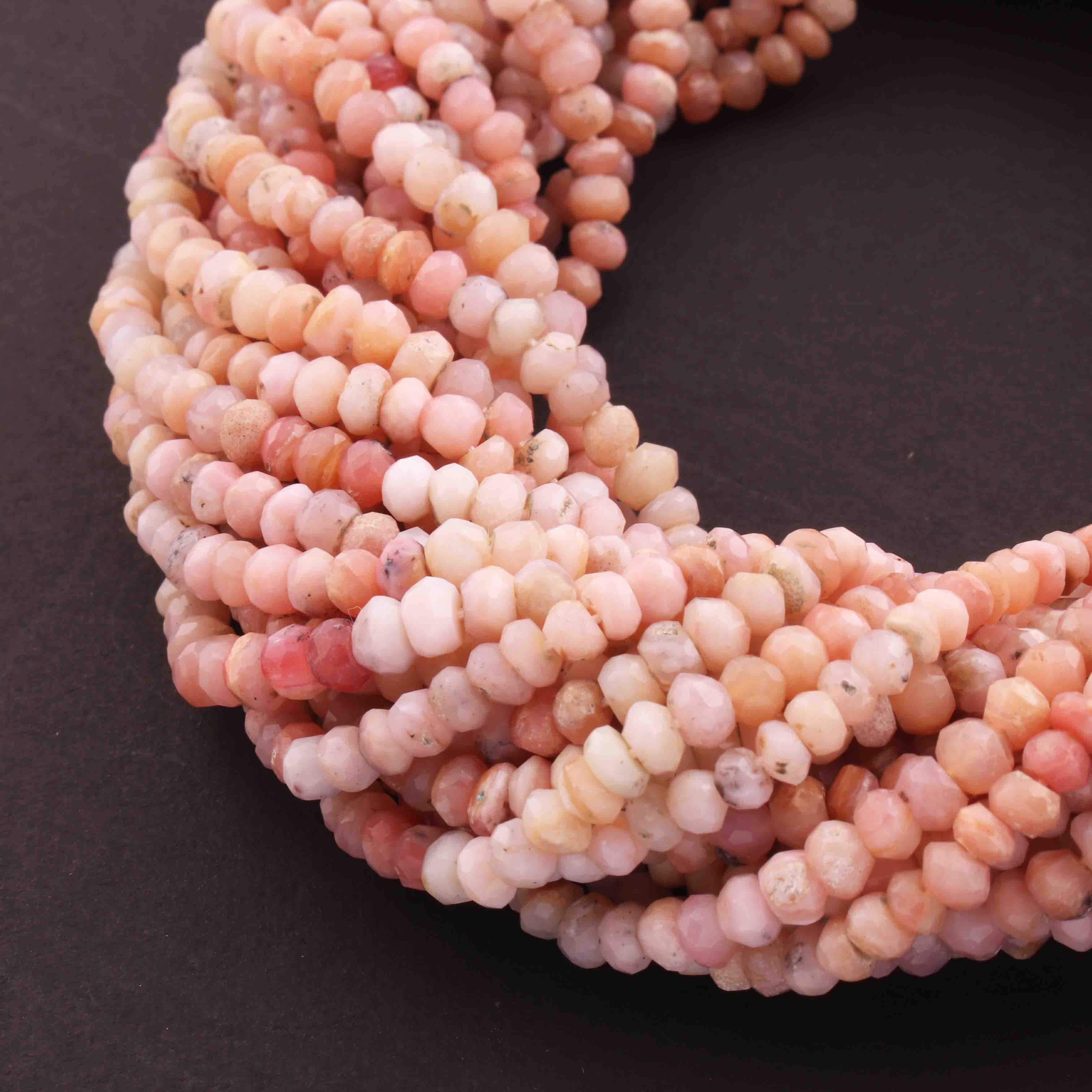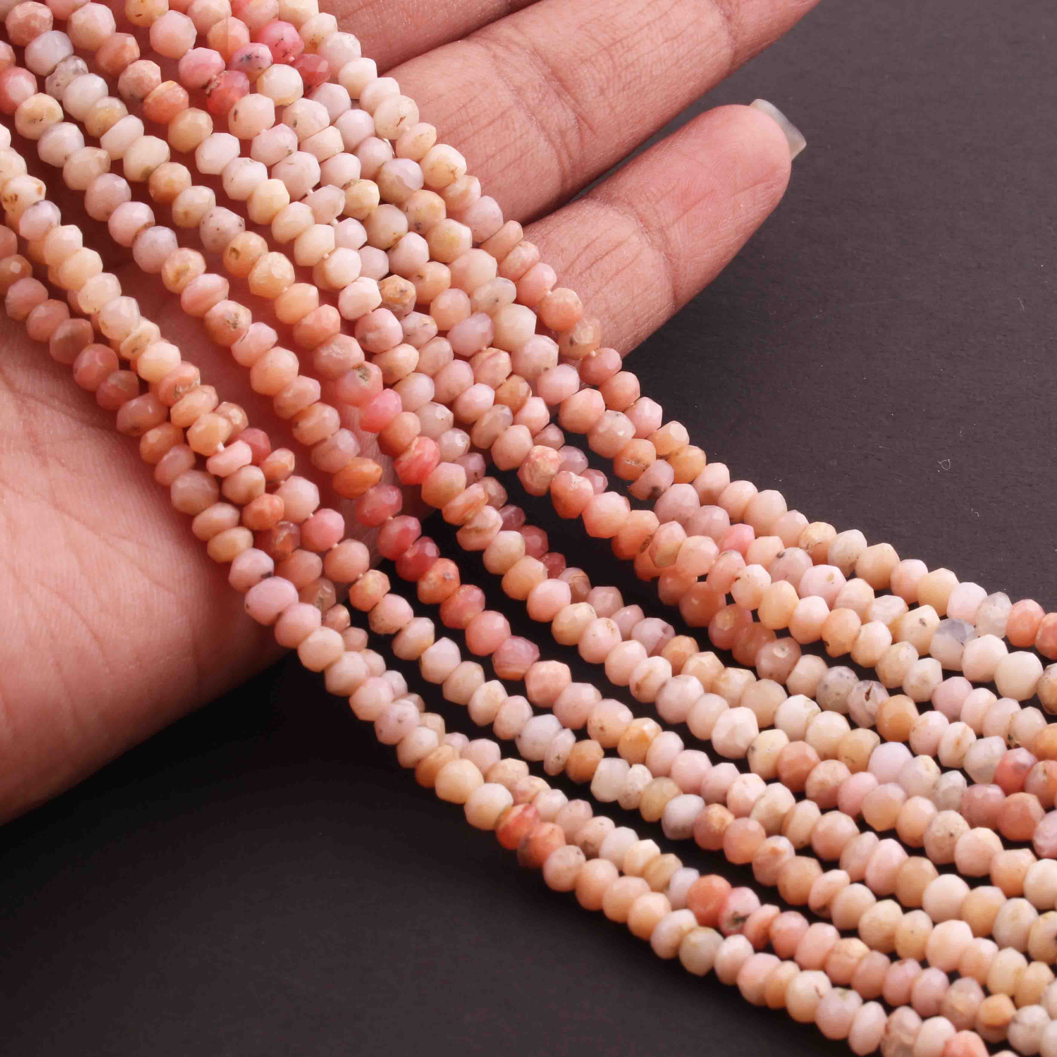 5 Strand Shaded Pink Opal Faceted Rondelles--Finest Quality Pink Opal Roundle 3mm-4mm 13.5 Inch Long RB405
