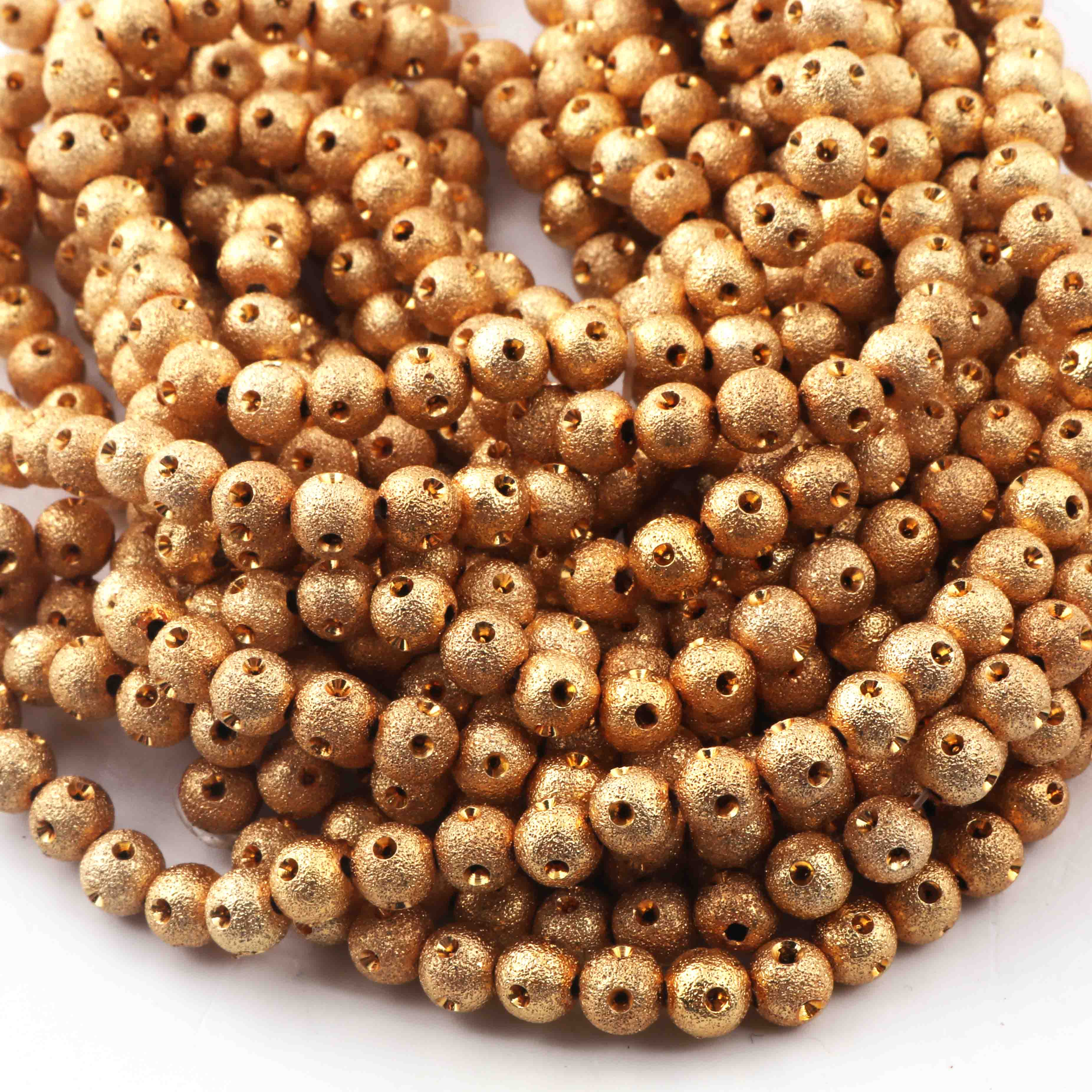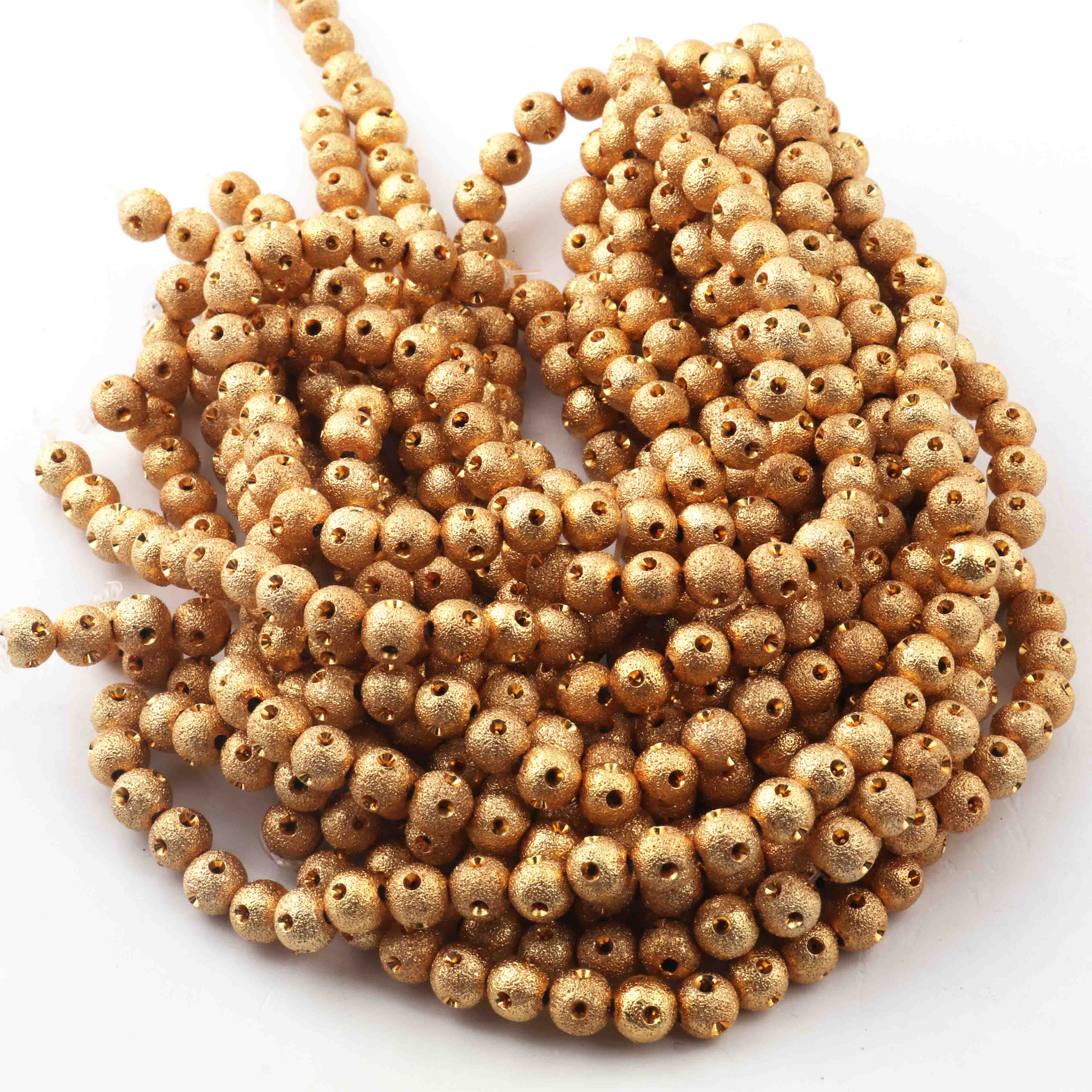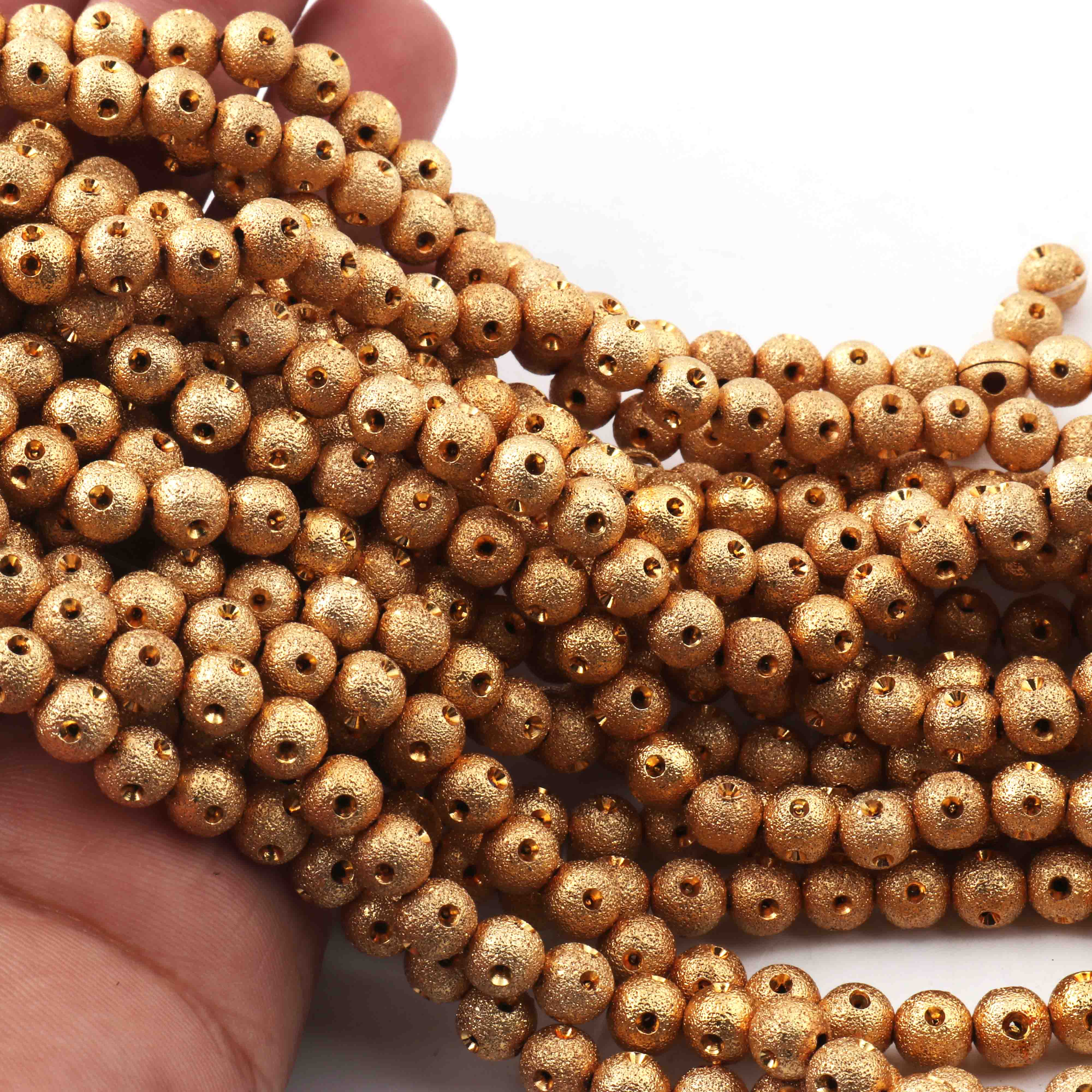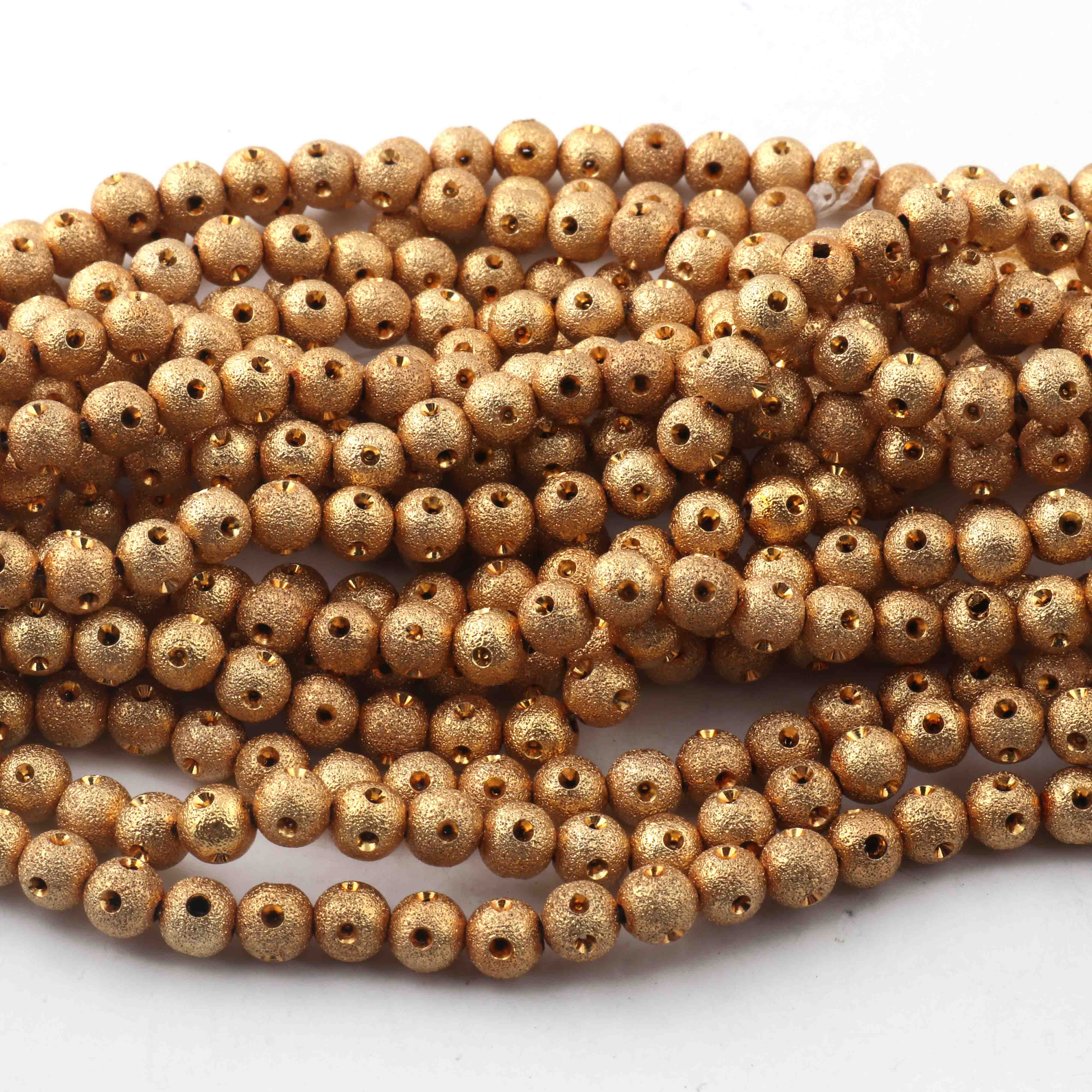 5 Strands 24k Gold Plated Copper Round Beads, Designer Fancy Ball Beads, Jewelry Making Tools, 6mm, 7.5 Inches,Gpc768