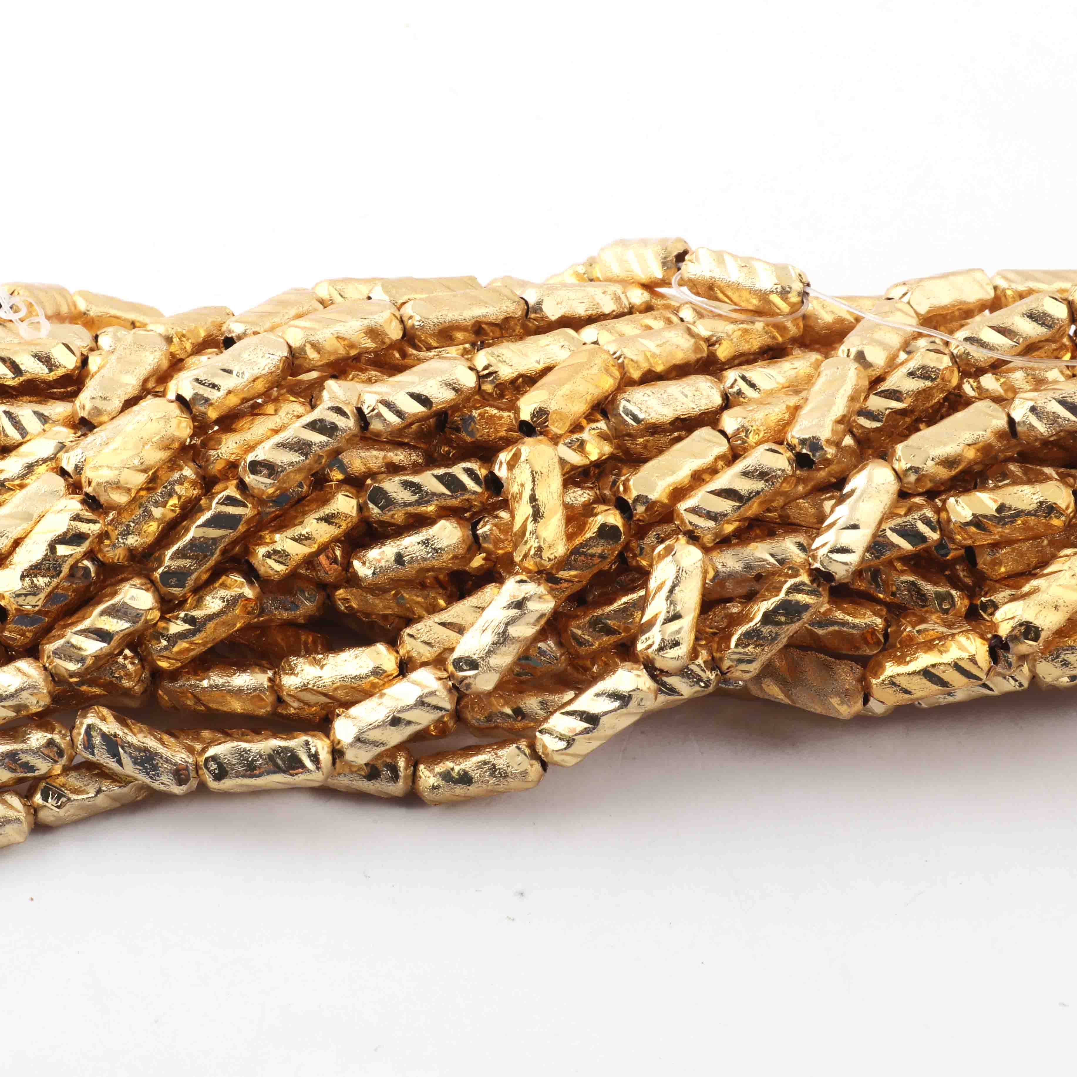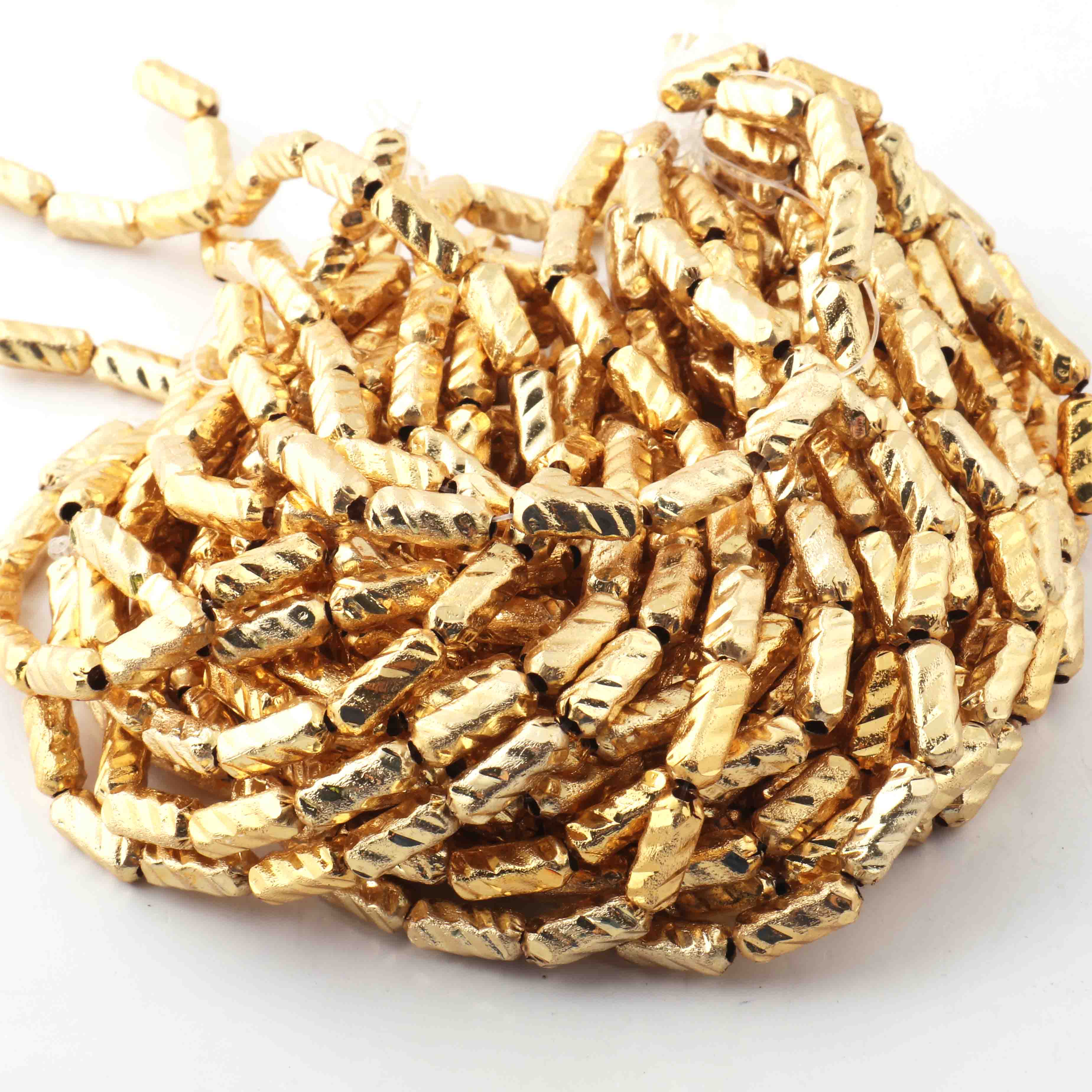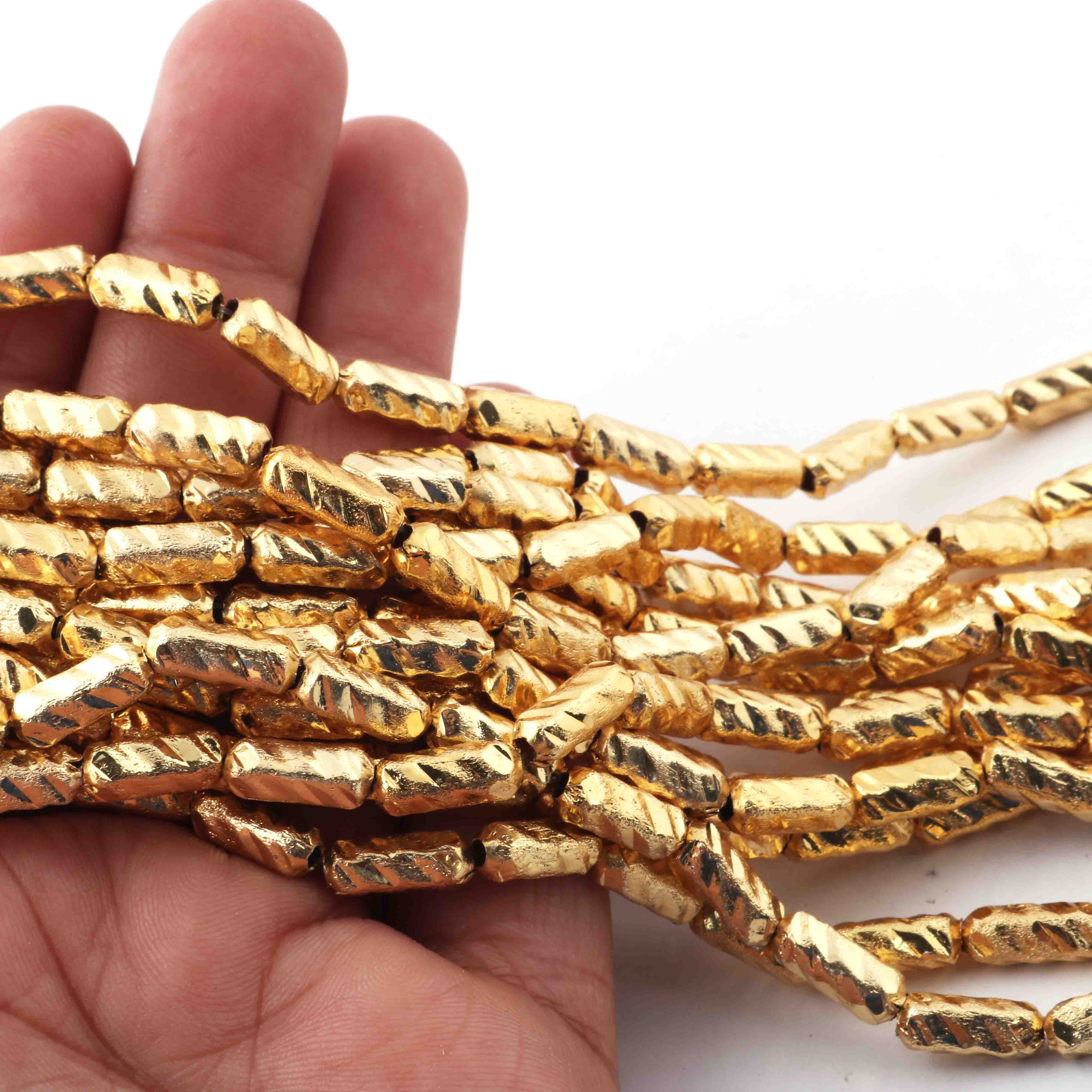 5 Strands Gold Plated Designer Copper Diamond cut Drum Beads, Jewelry Making Supplies 12mmx5mm 7 inches Bulk Lot GPC 377