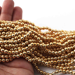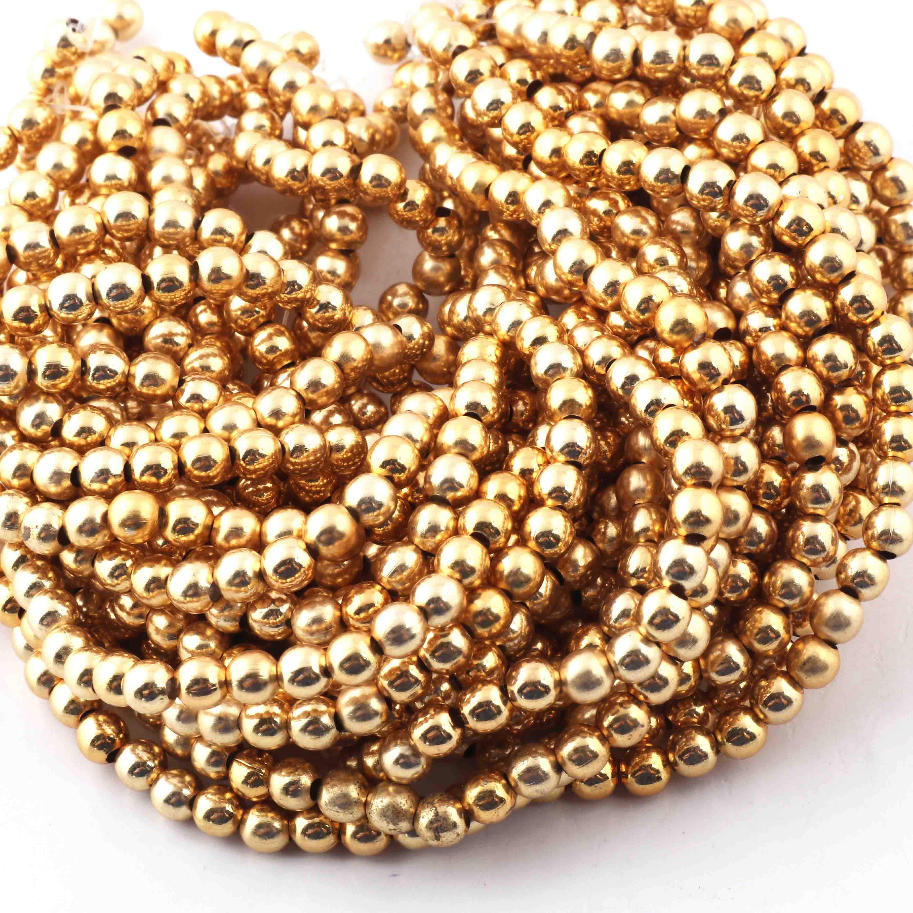 5 Strands Gold Plated Plain Copper Balls, Plain Copper Small Beads, Jewelry Making Supplies, 5mm, 7.5 inches, Bulk Lot GPC595