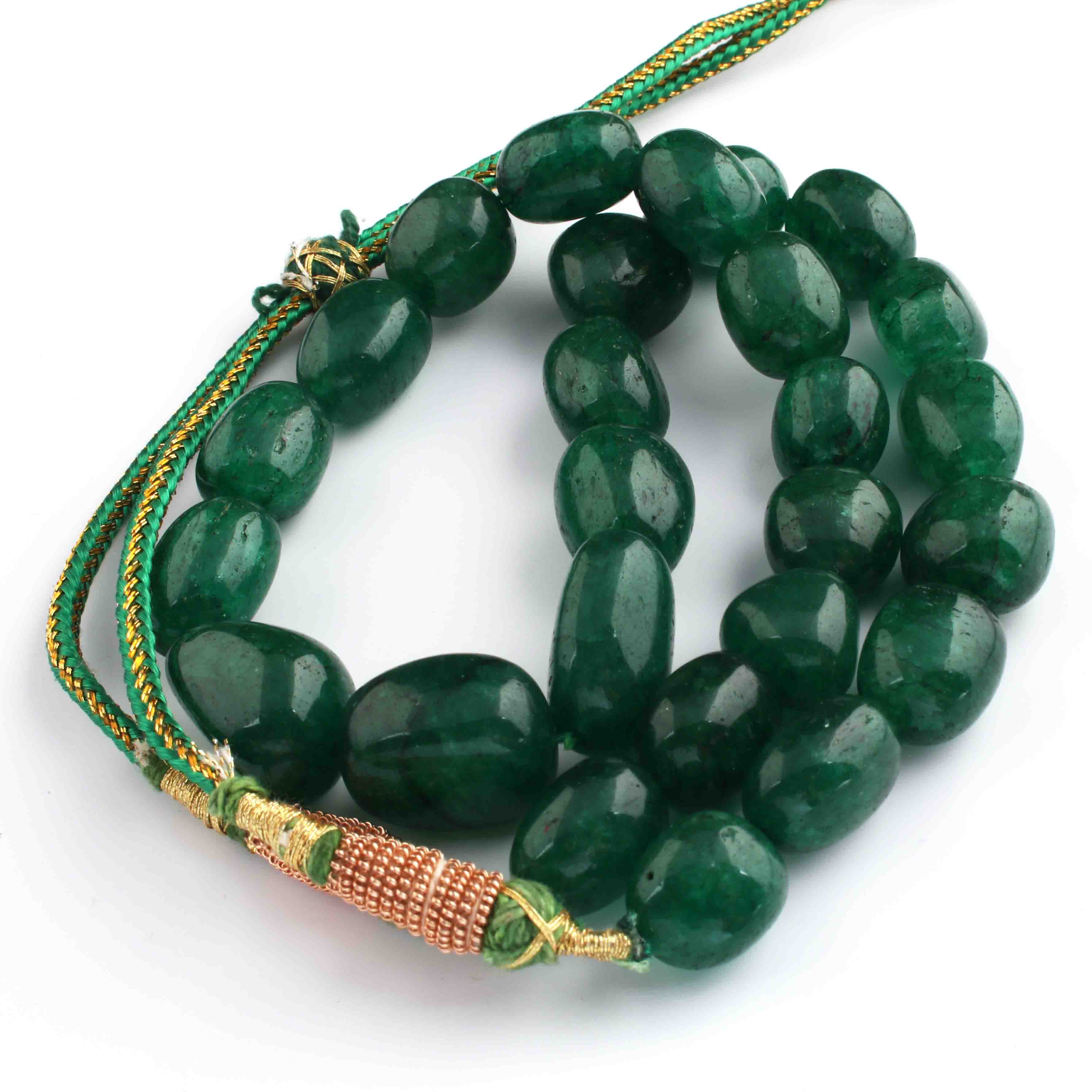 505 Carats 1 Strand Of Precious Genuine Emerald Necklace - Smooth oval Beads - Rare & Natural Emerald Necklace - BRU171