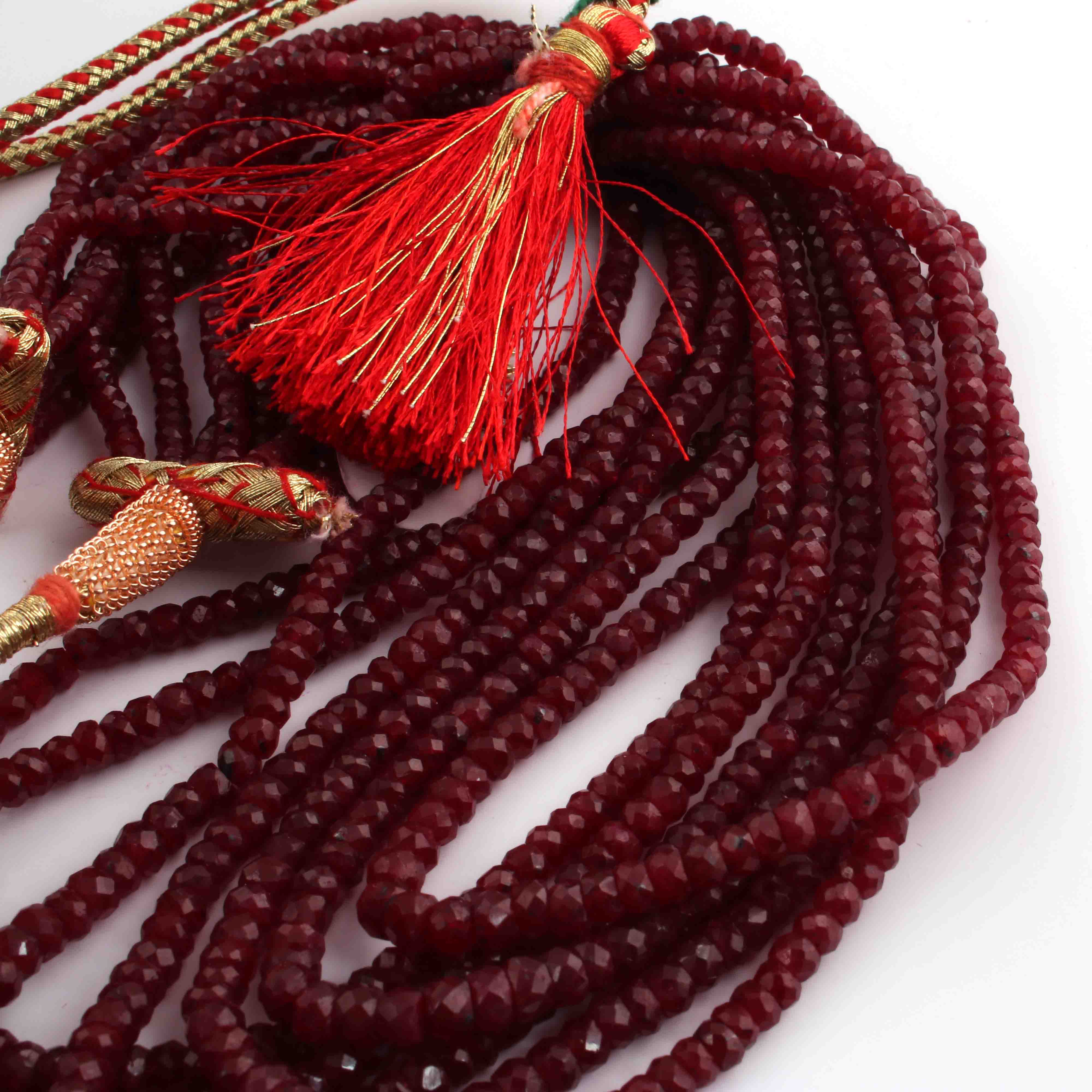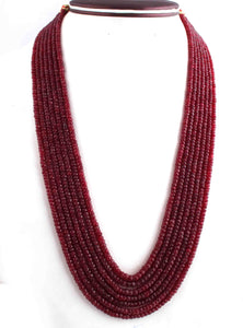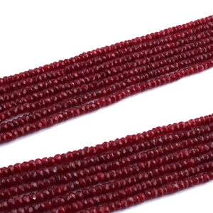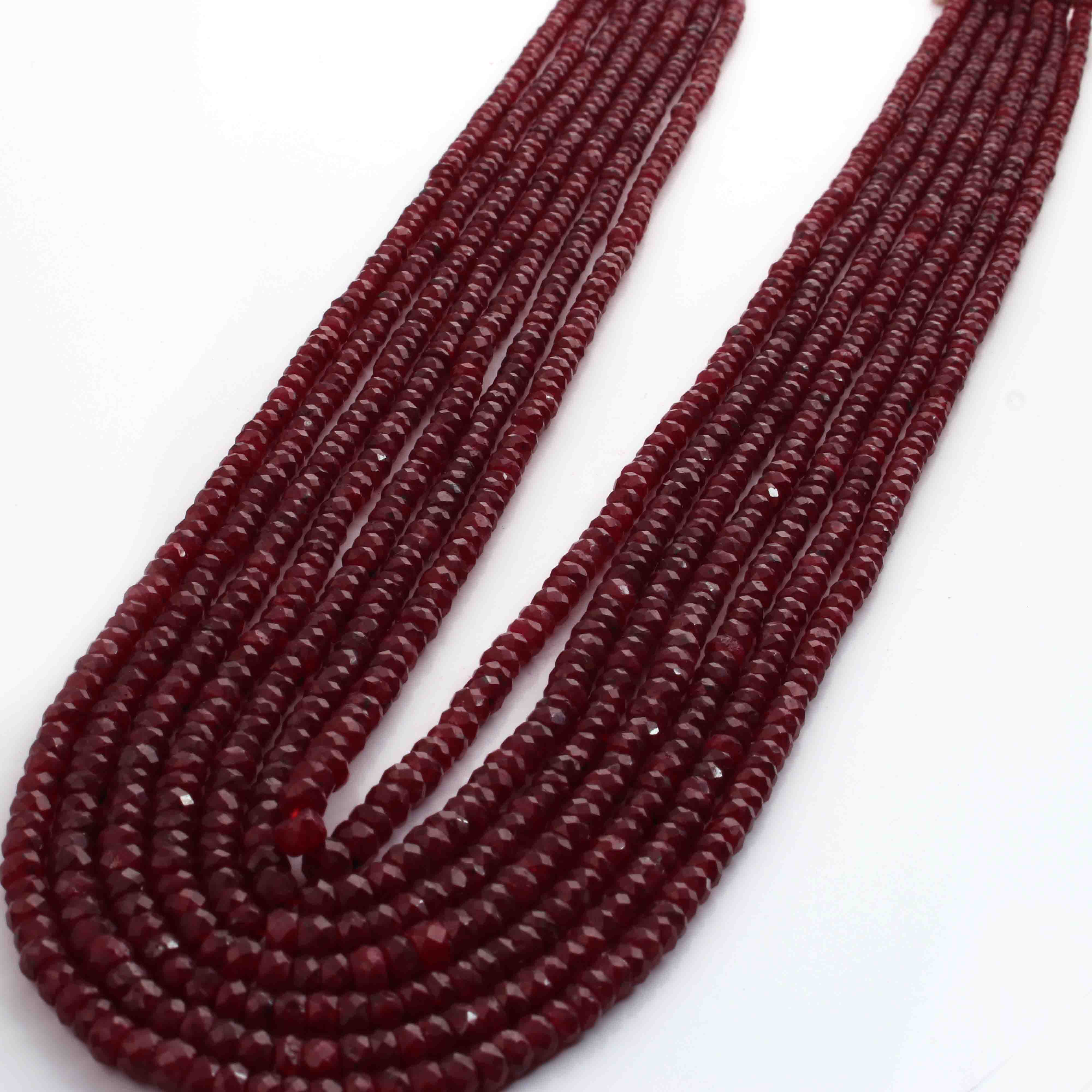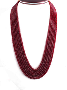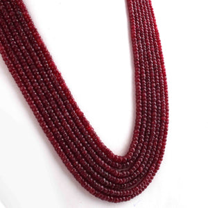 7 Strands Of Dyed Corundum  Ruby Necklace - Faceted Rondelle Beads - Stunning Elegant Necklace - 3mm-4mm-21 inch BR2642