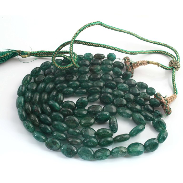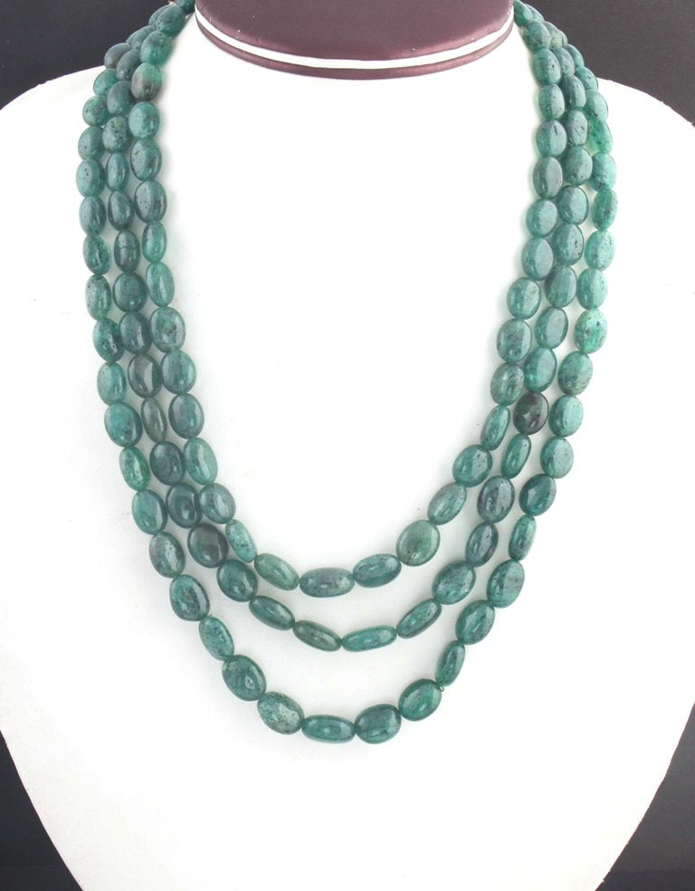 595 Carats 3 Strands Of Precious Genuine Emerald Necklace - Smooth oval Beads - Rare & Natural Emerald Necklace - Stunning Elegant Necklace SPB0040