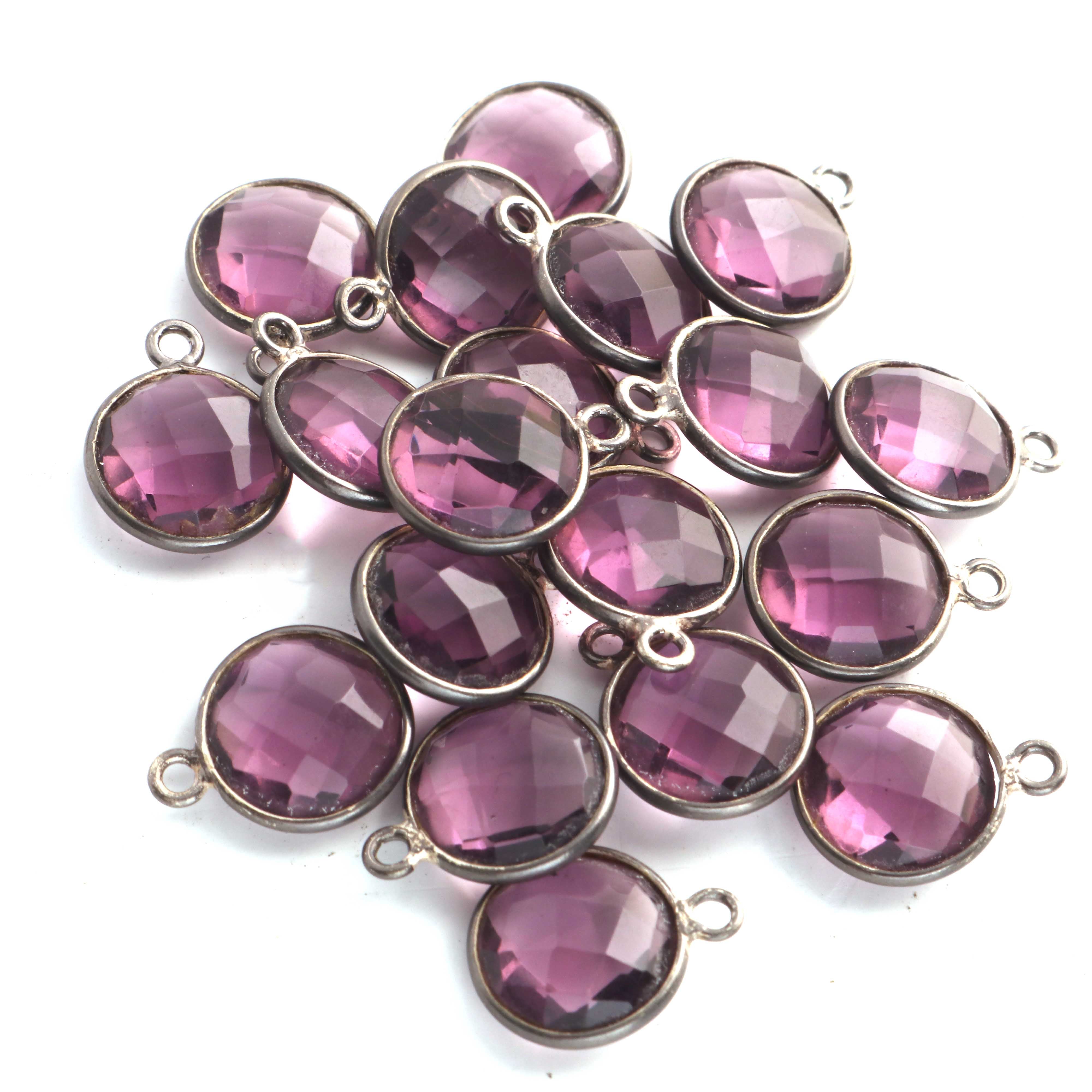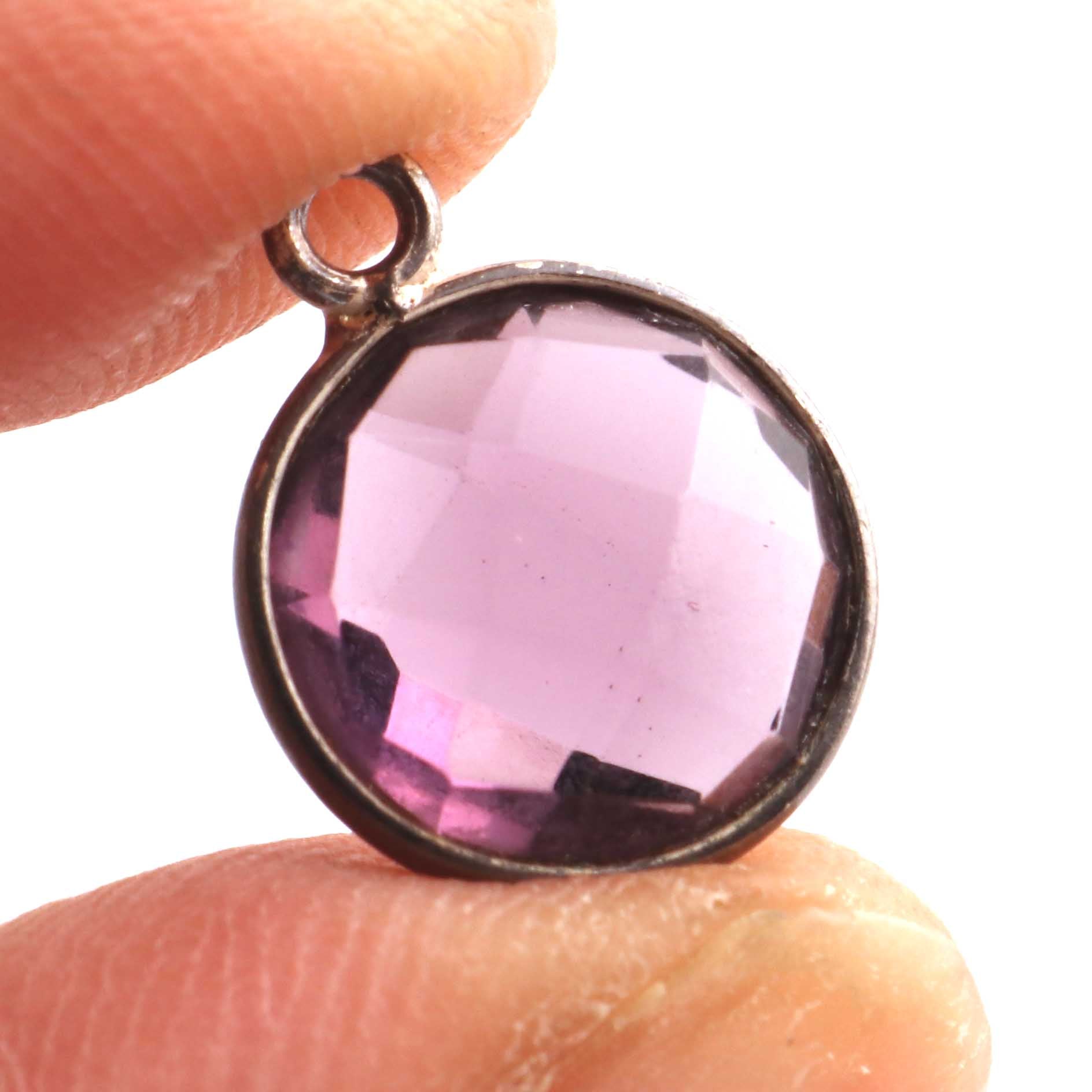 6 Pcs Amethyst Faceted Round Shape Oxidized Silver Plated Pendant 15mmx11mm PC241