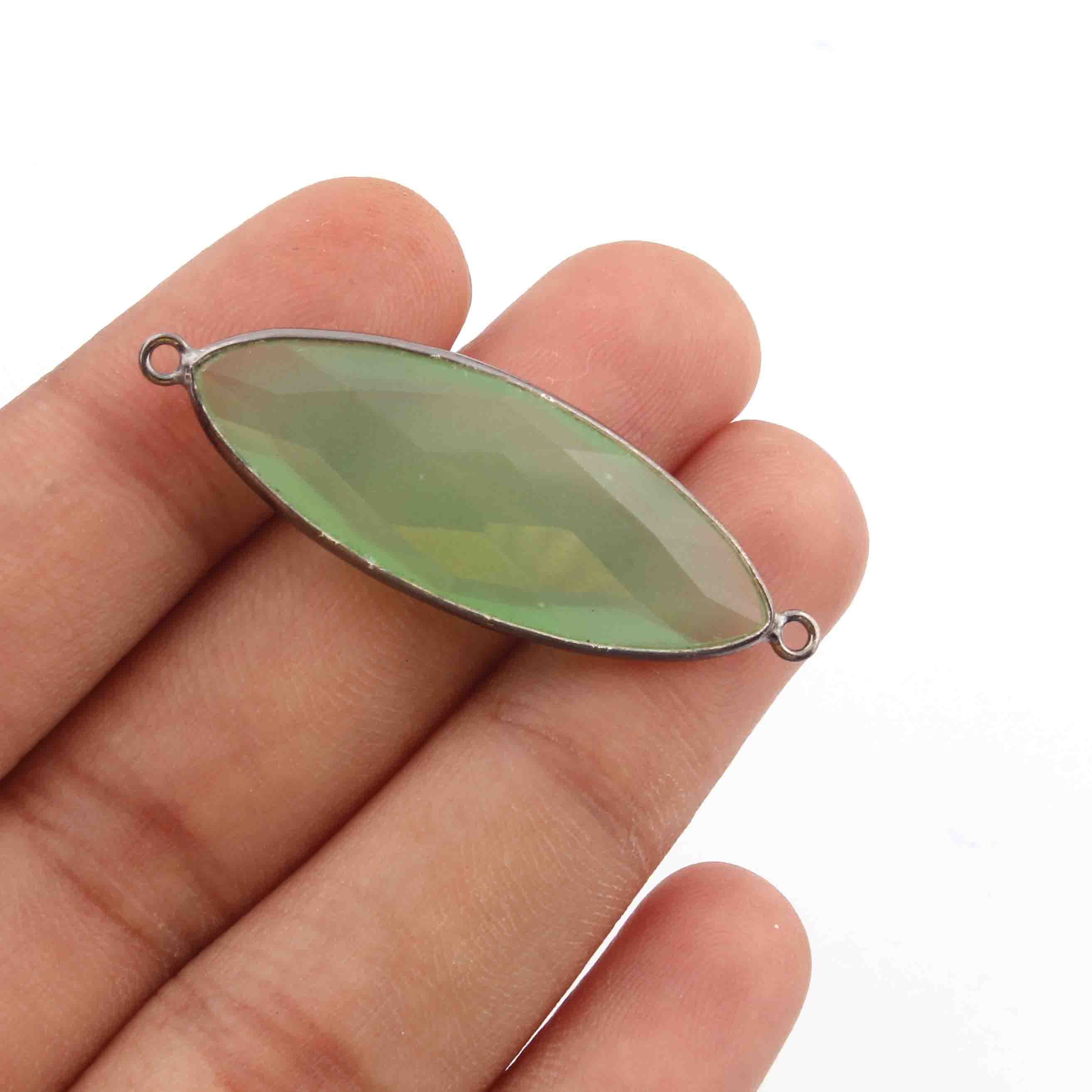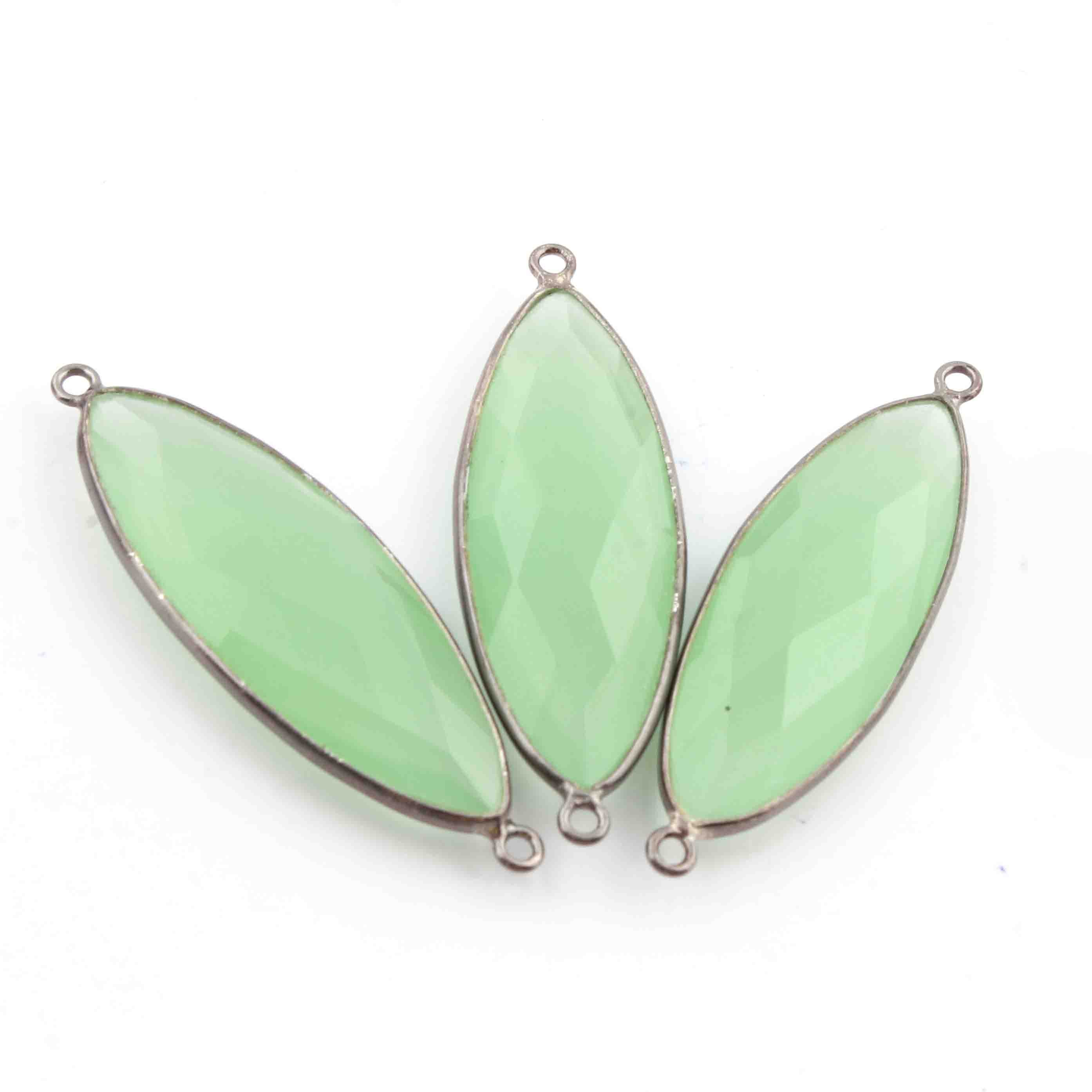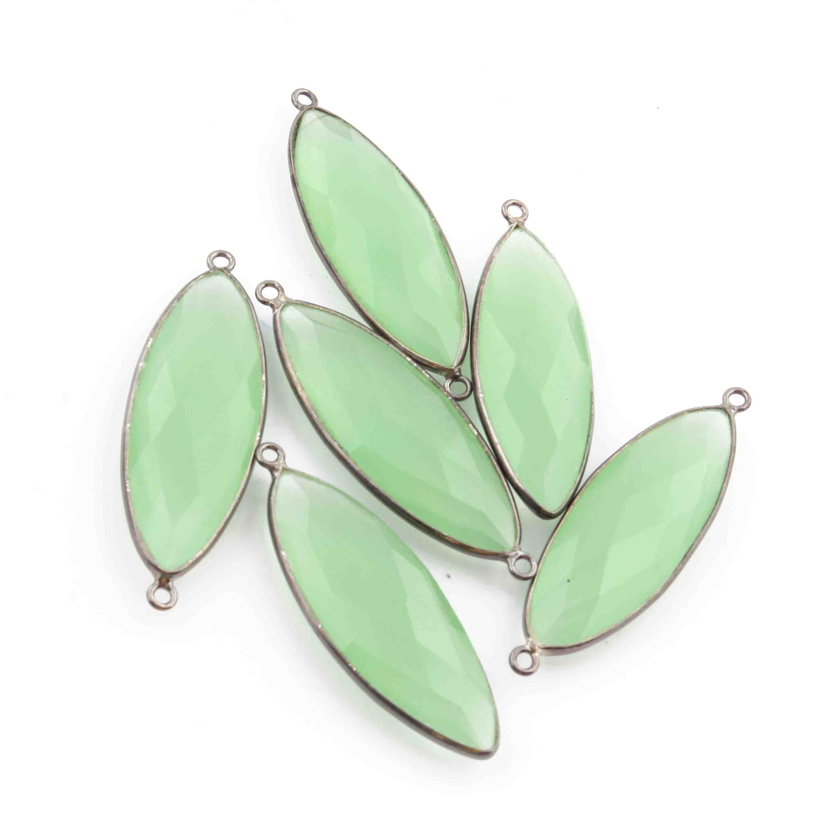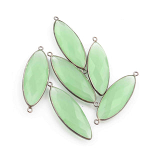 6 Pcs Green Chalcedony Faceted Oxidized Sterling Silver Marquise Connector/Pendant 39mmx13mm-41mmx13mm SS852