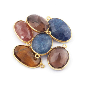 6 Pcs Mix Stone 24k Gold Plated Faceted Oval Shape Pendant Single Bali --