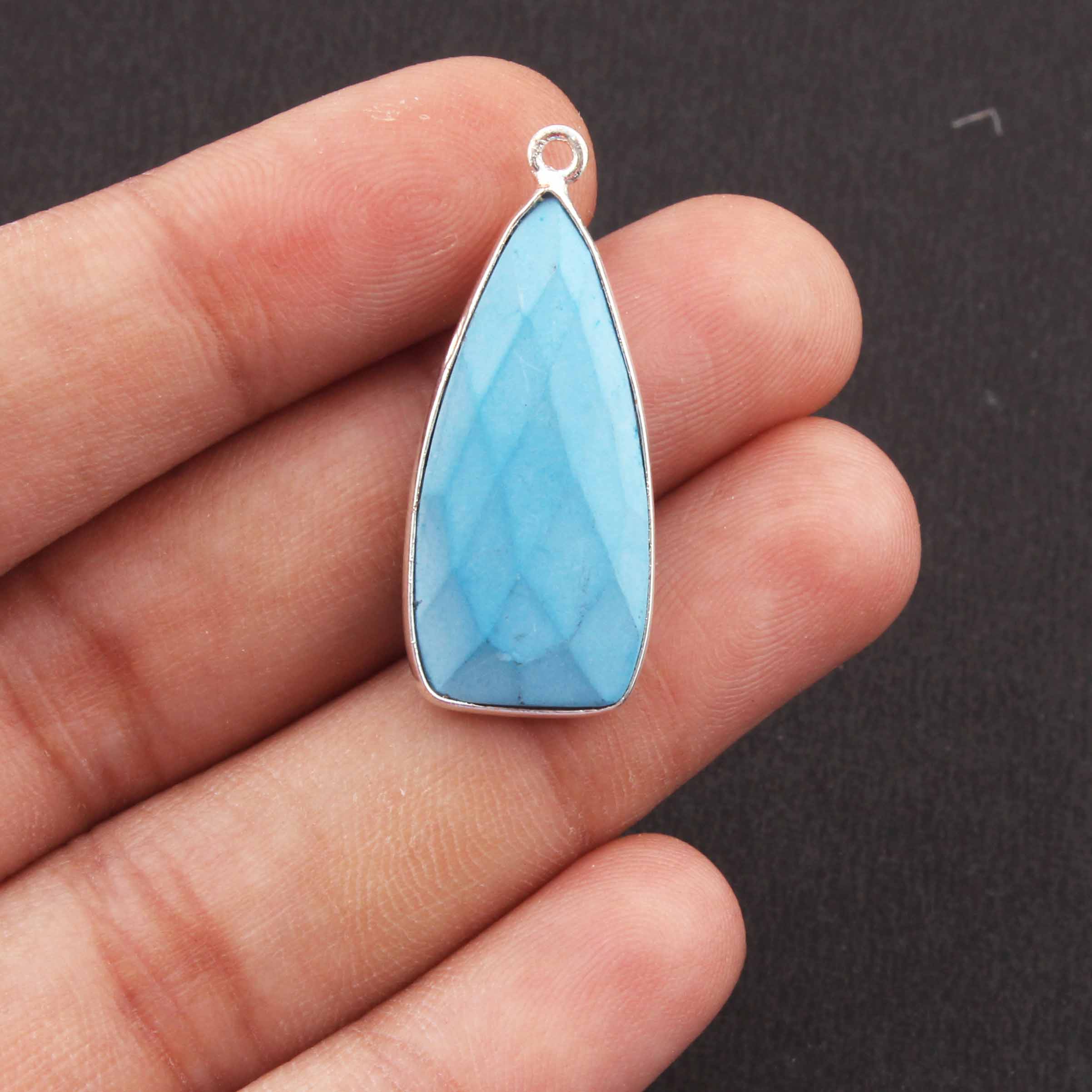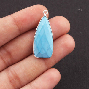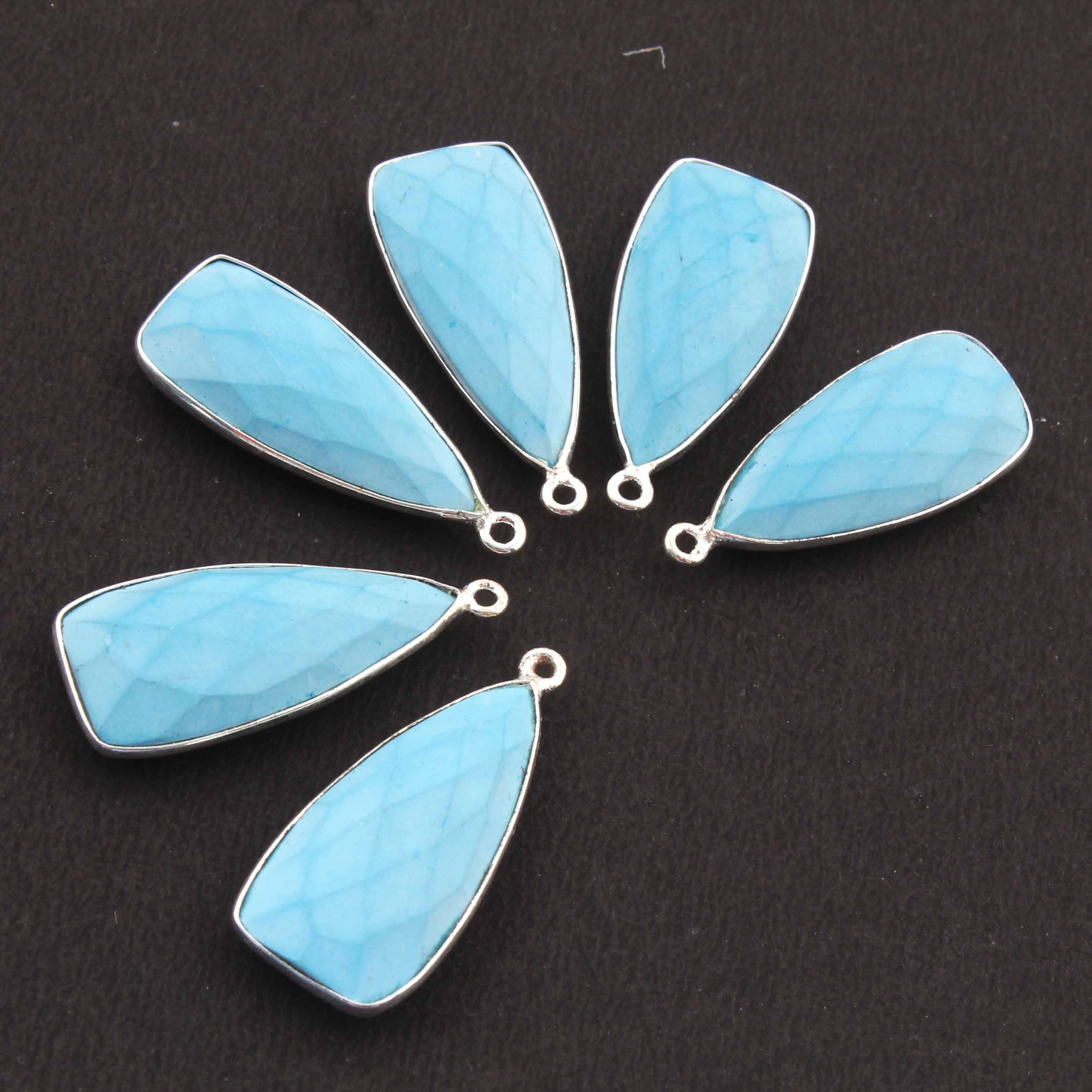 6 Pcs Turquoise Faceted Dagger Shape 925 Silver Plated Pendant 31mmx13mm PC304