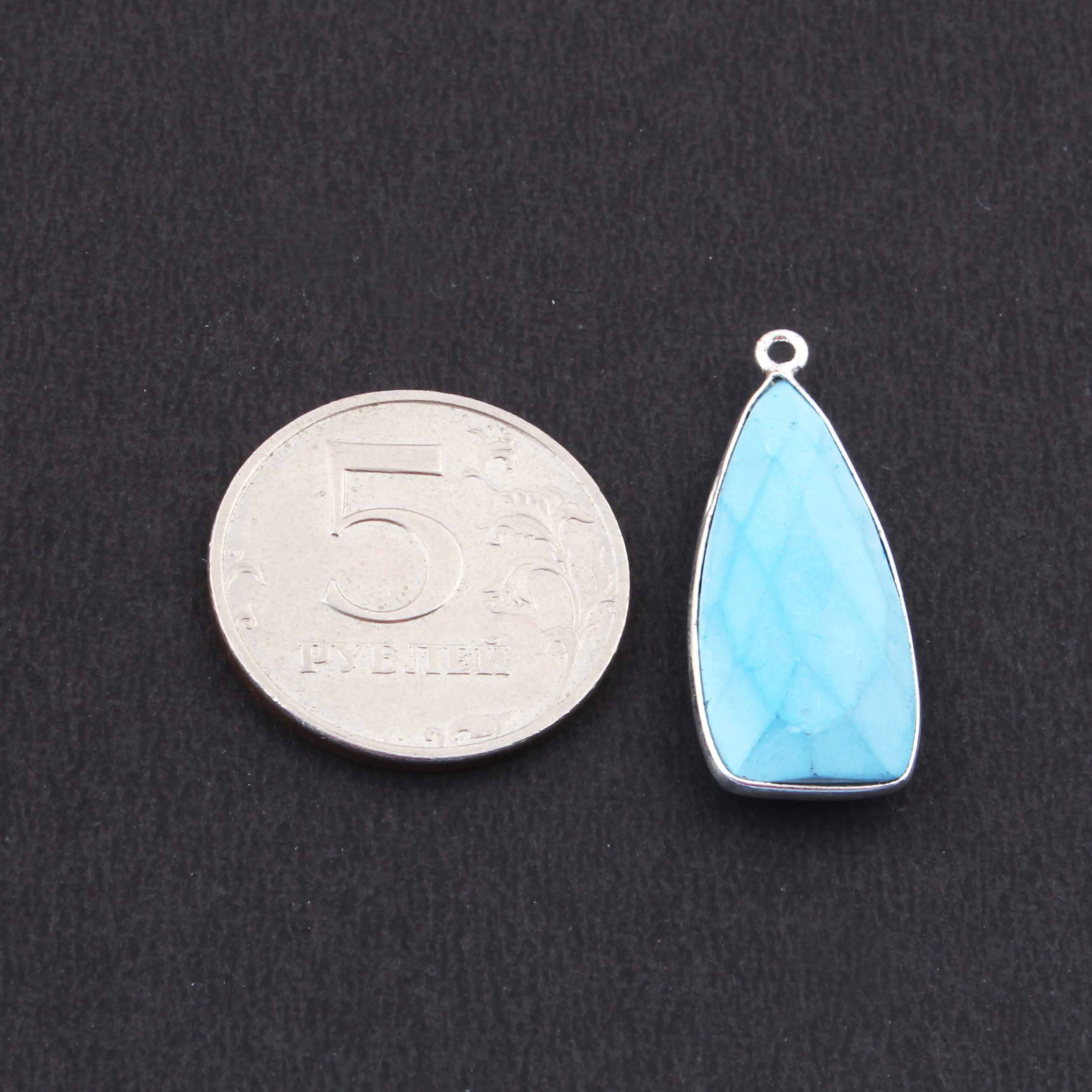 6 Pcs Turquoise Faceted Dagger Shape 925 Silver Plated Pendant   31mmx13mm  PC30