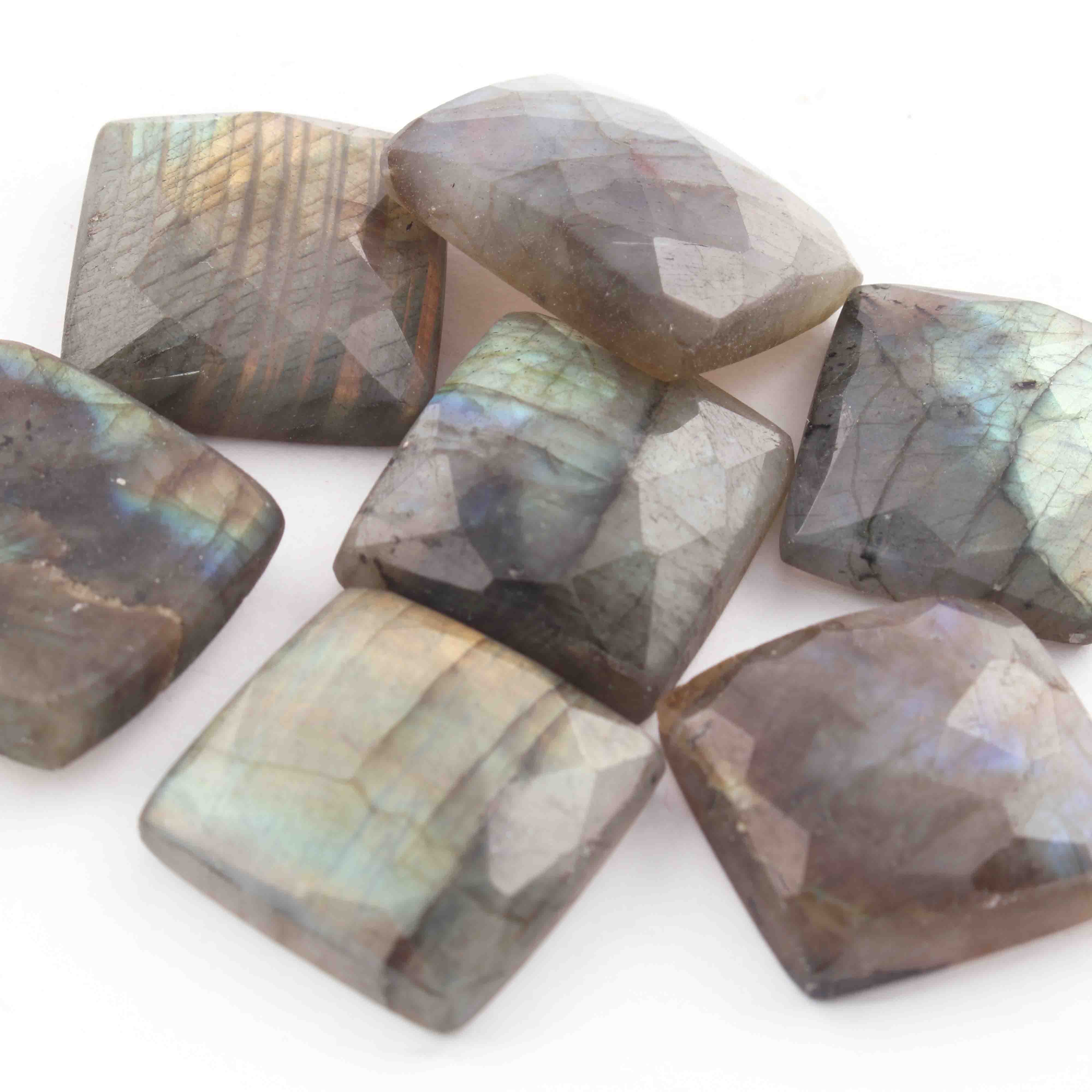 7 Pcs Amazing Labradorite Smooth Cabochon Spectrolite - Square Shape Multi Fire Loose Gemstone-20mmx18mm-22mmx20mm LGS280