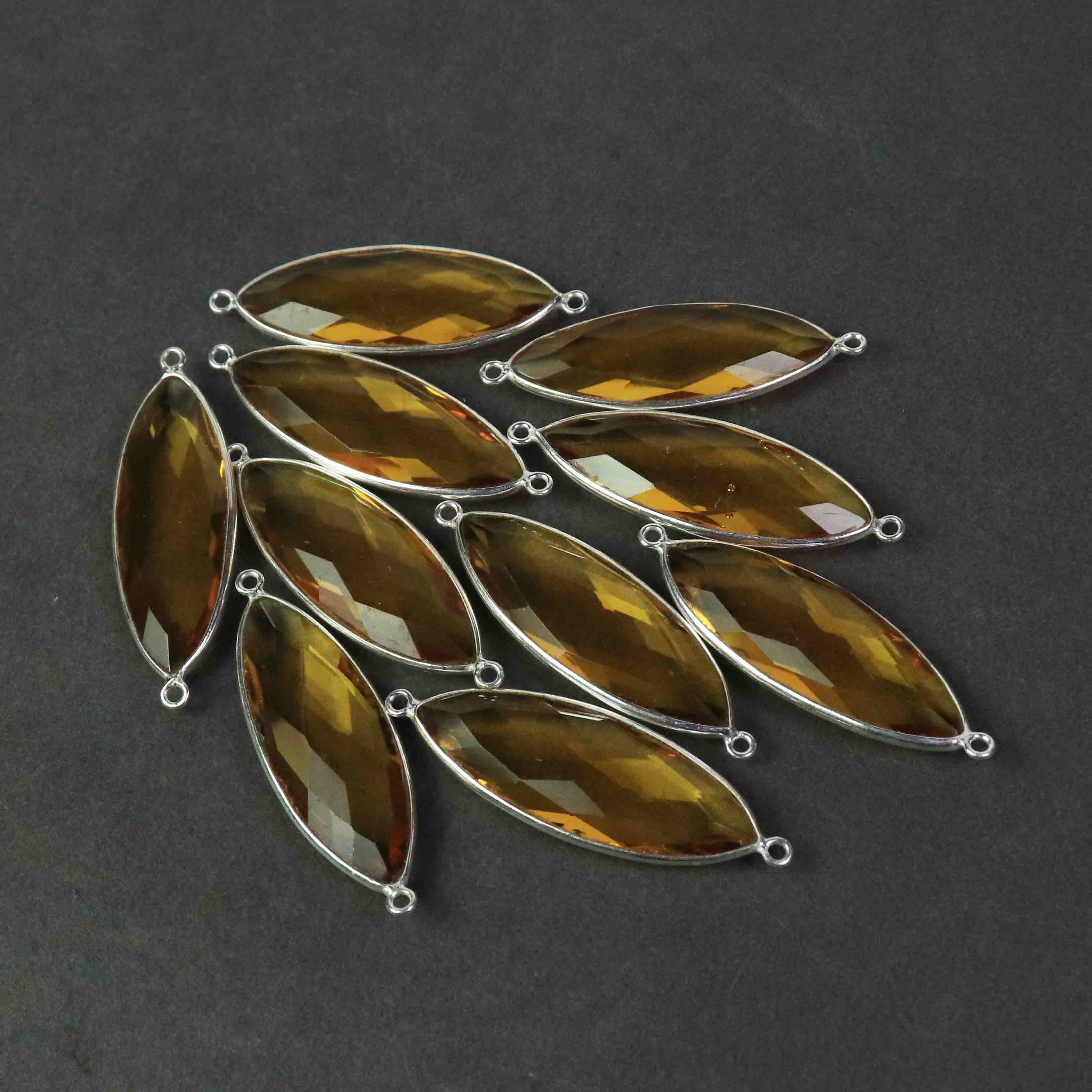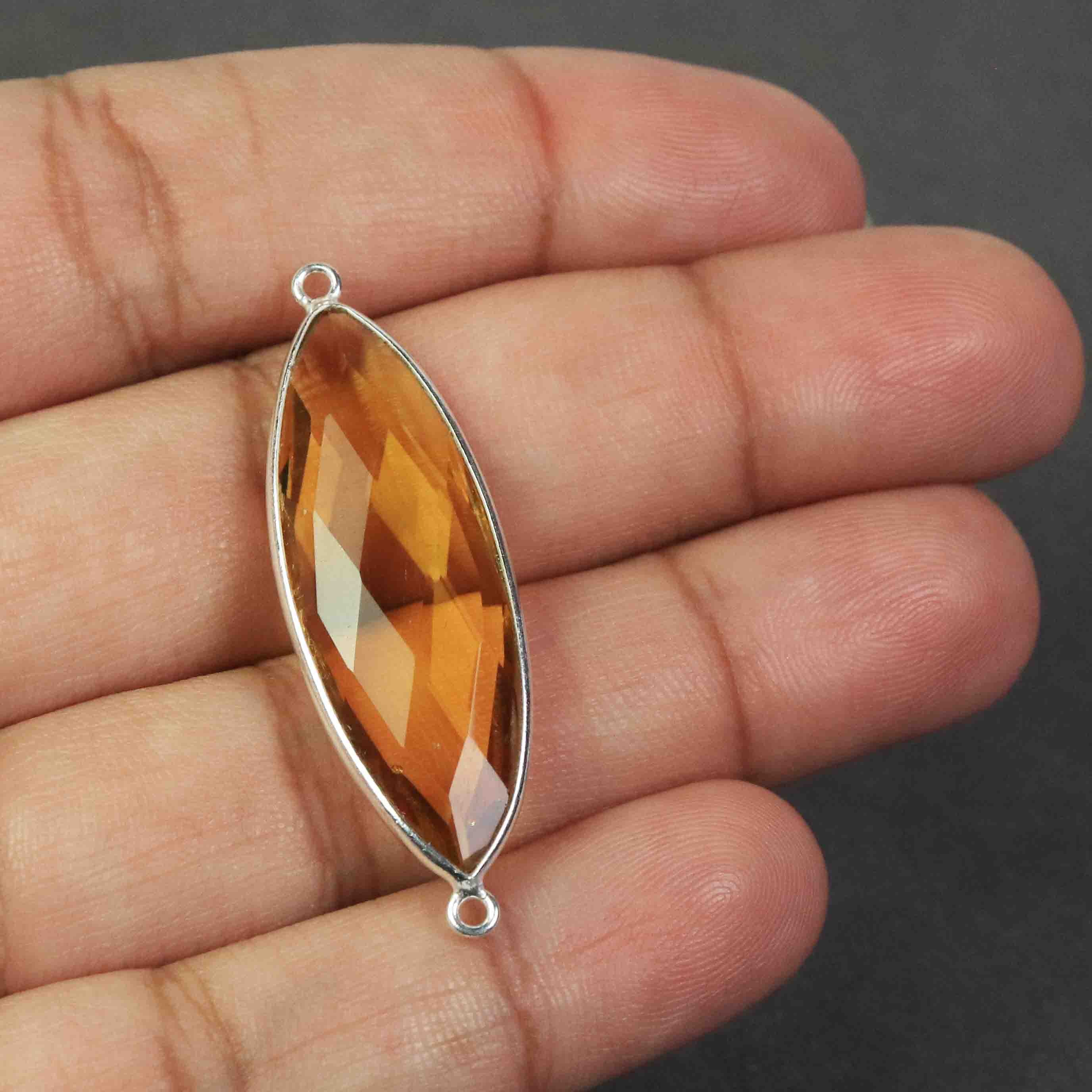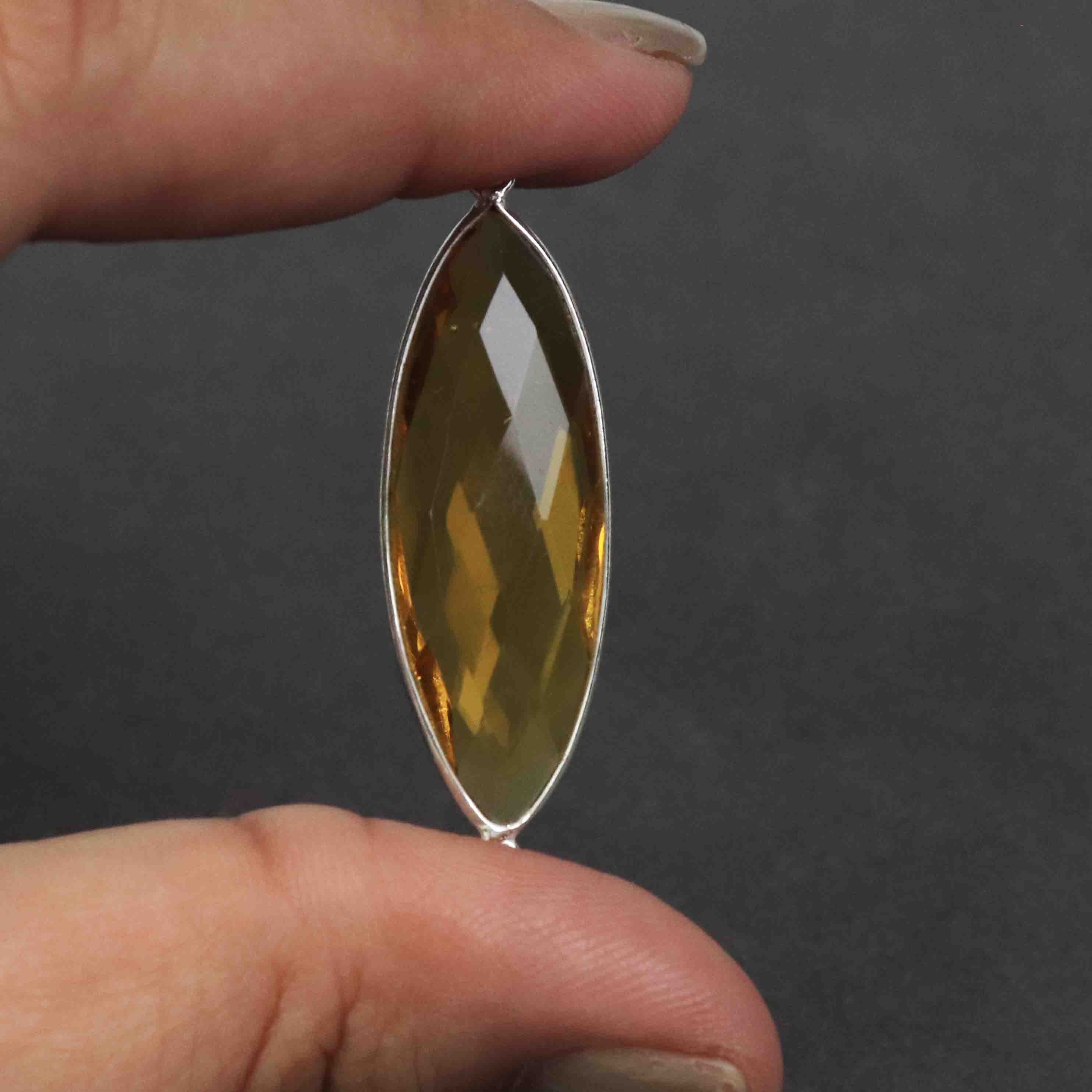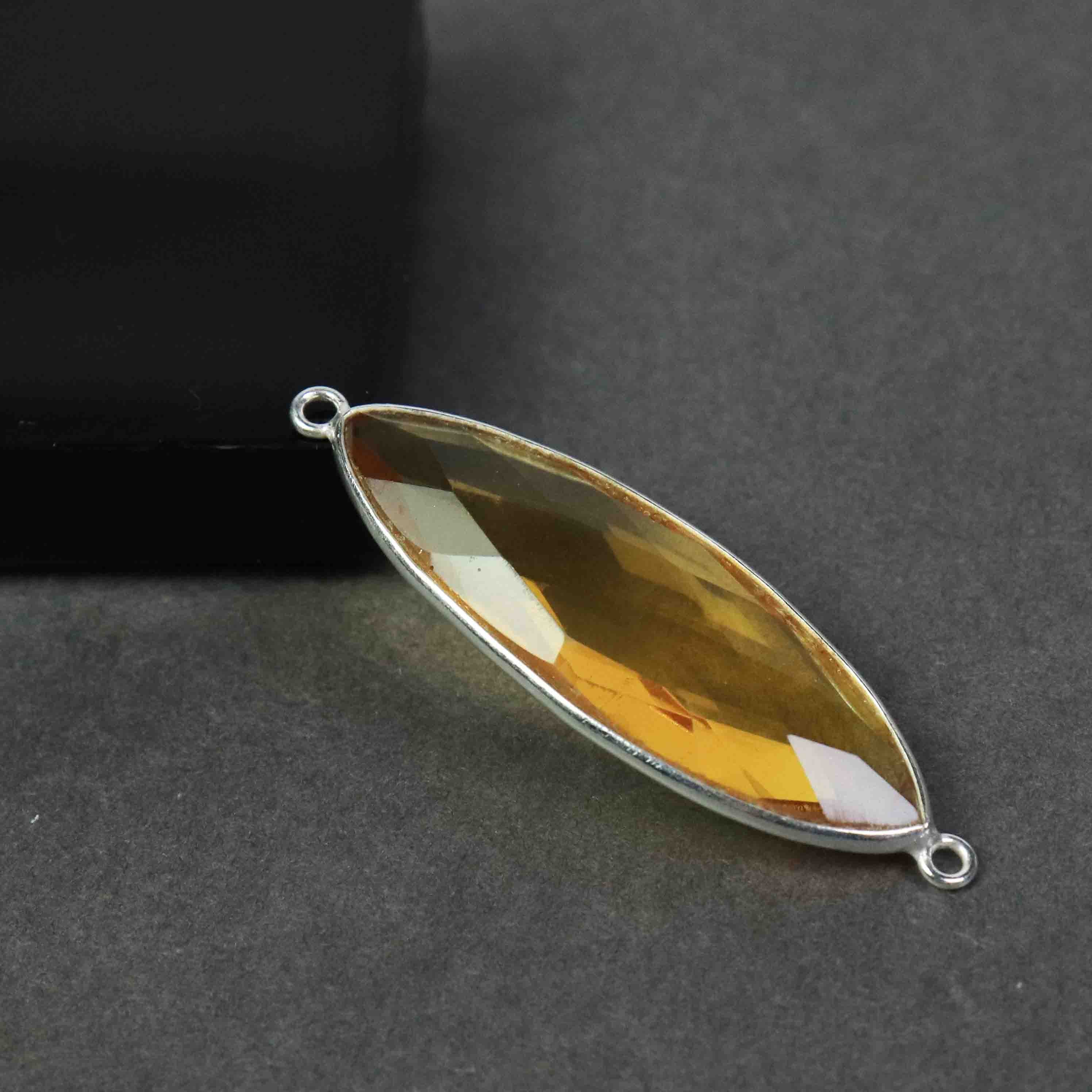 7 Pcs Citrine Faceted 925 Sterling Silver Marquise Shape Double & Single Bail Connector & Pendant 41mmx13mm- SS465