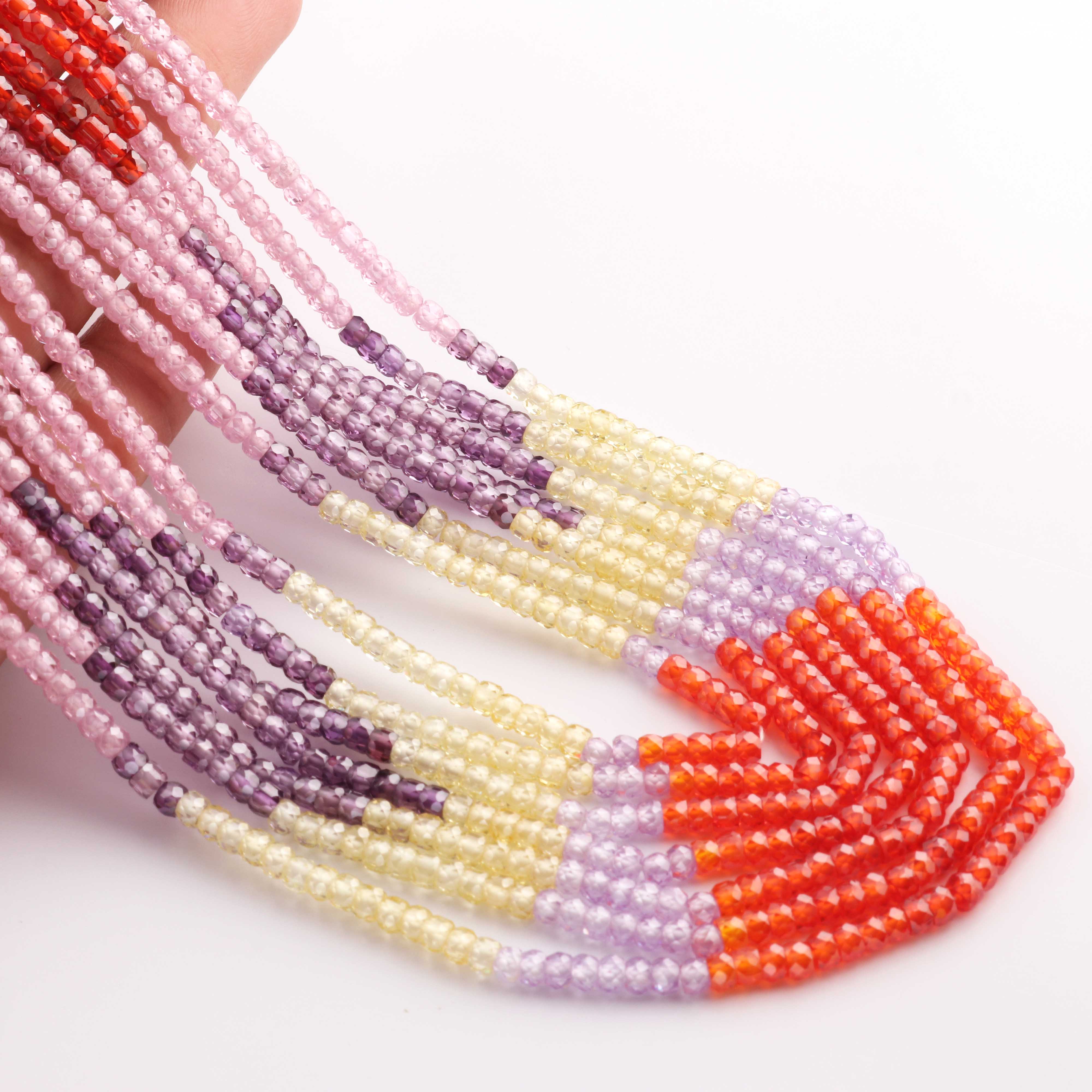 7 Strands AAA Quality Multi Zircon Faceted Rondelles Ready To Wear CZ Necklace - Multi Zircon Rondelles Beads 3mm 16 Inches Br1945