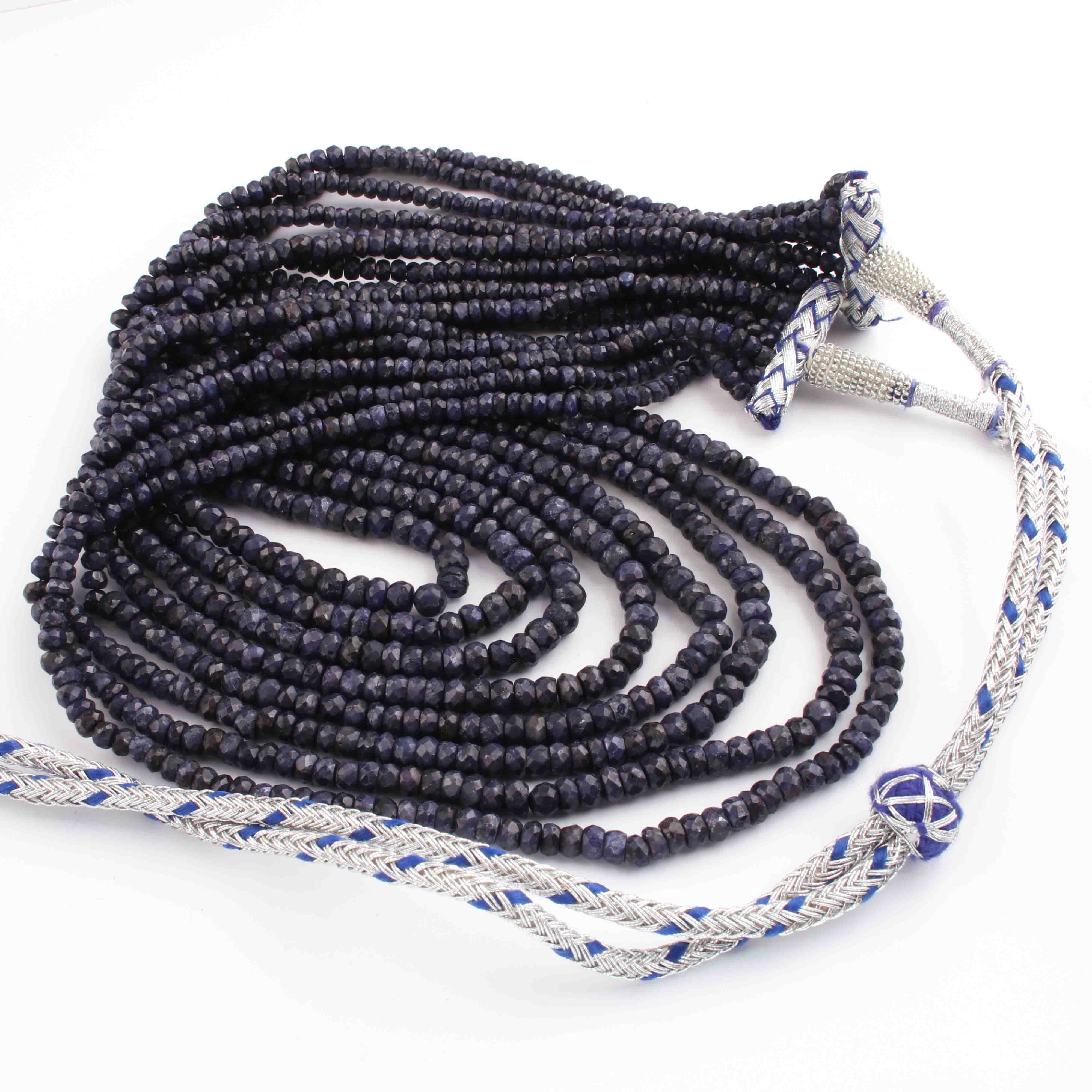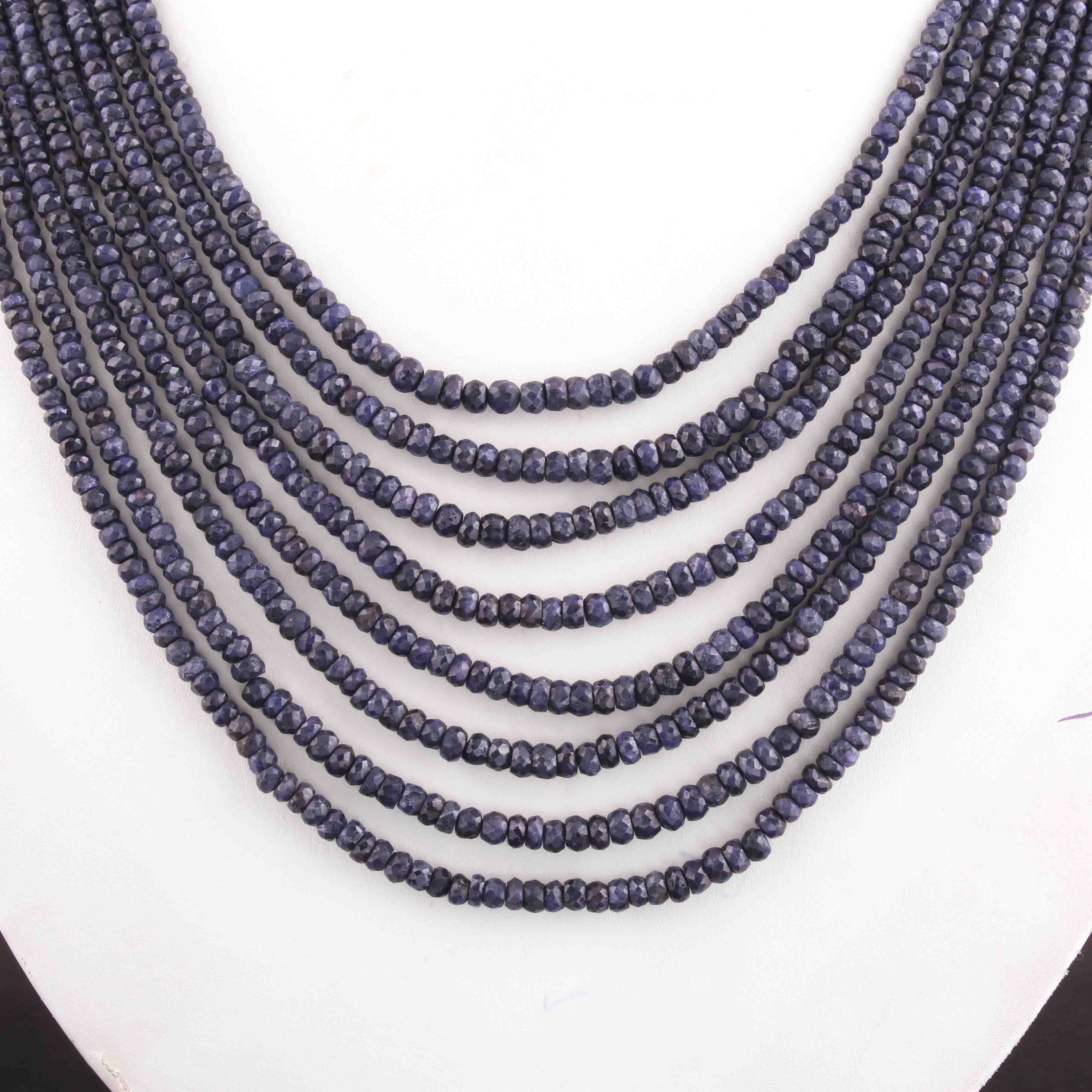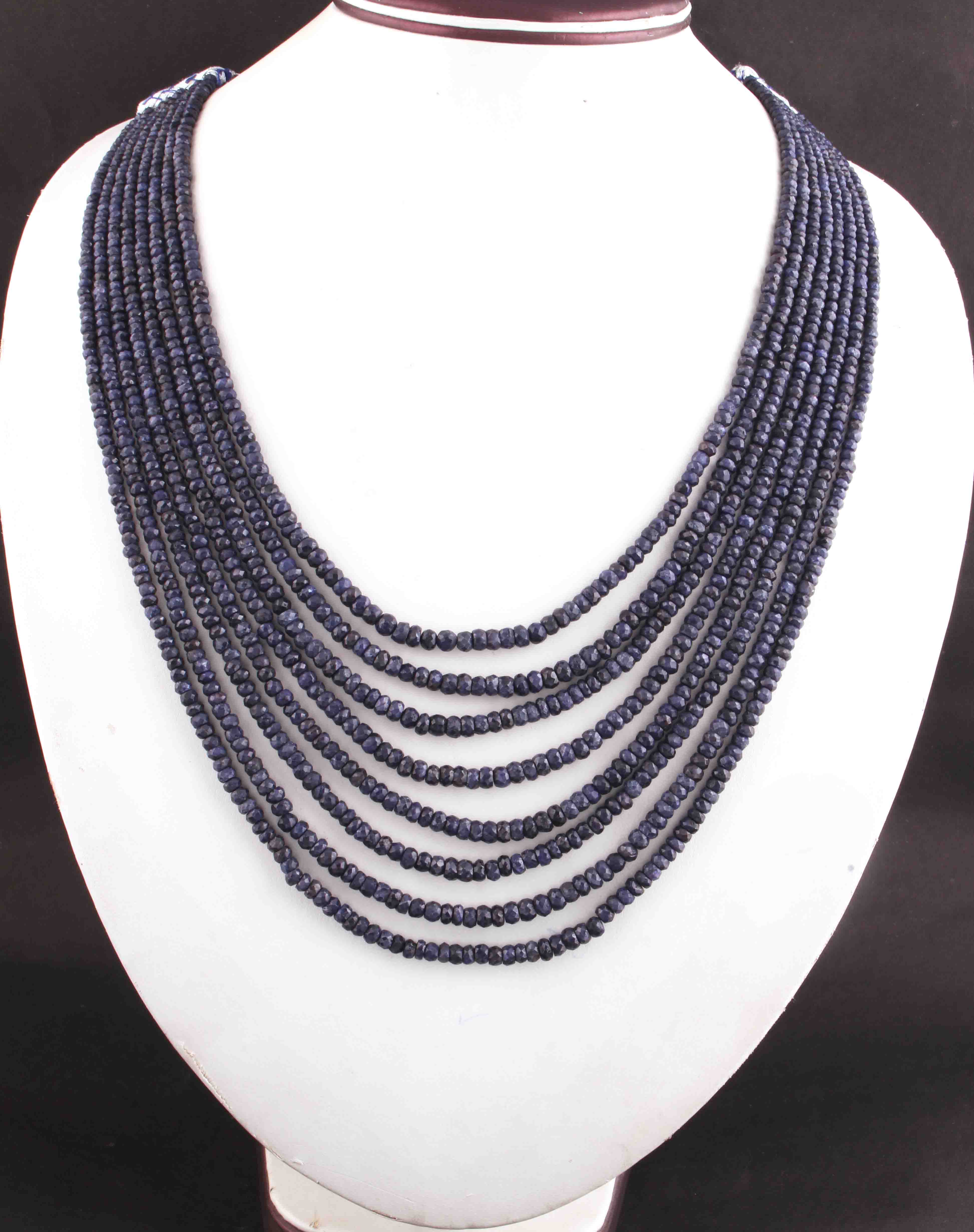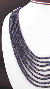 730. Ct 8 Strands Of Genuine Blue Sapphire Necklace - Faceted Rondelle Beads - Rare & Natural Sapphire Necklace - Stunning Elegant Necklace - SPB0089