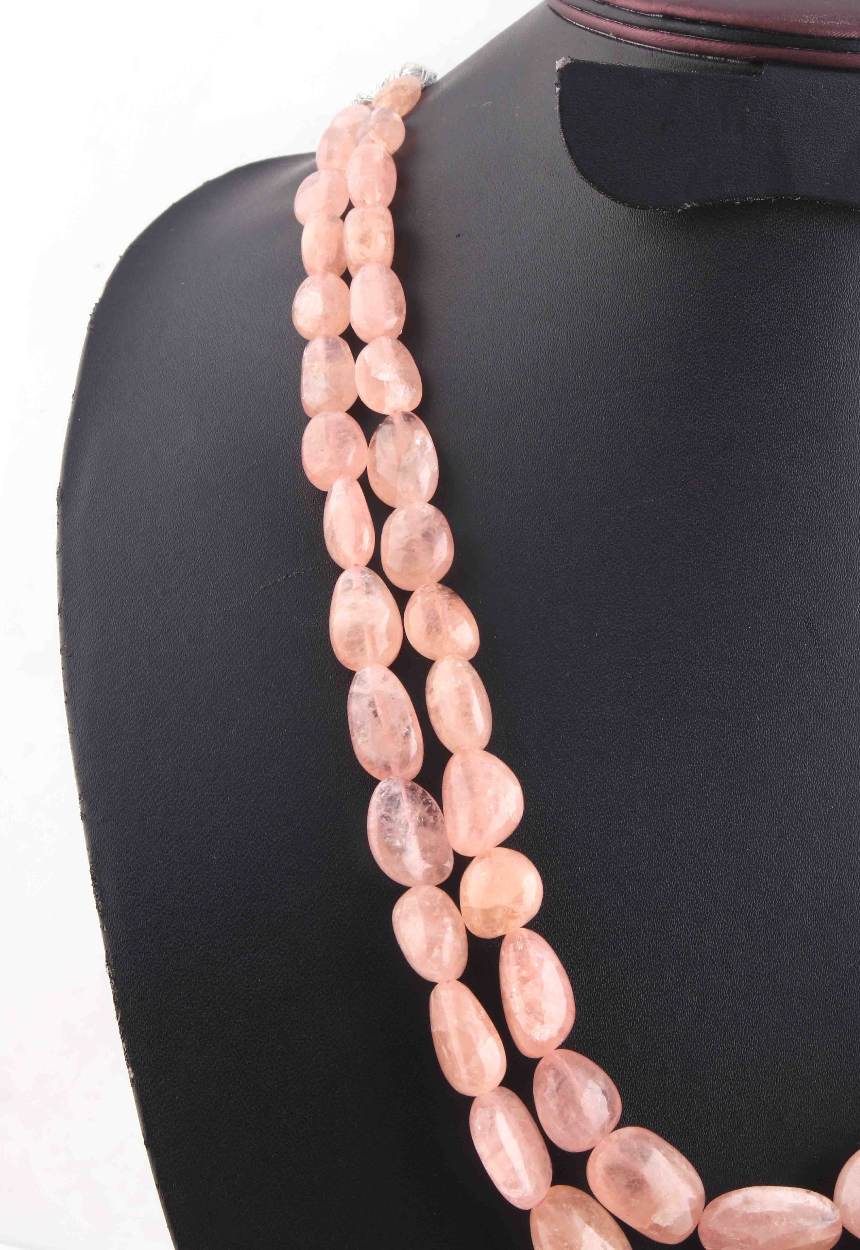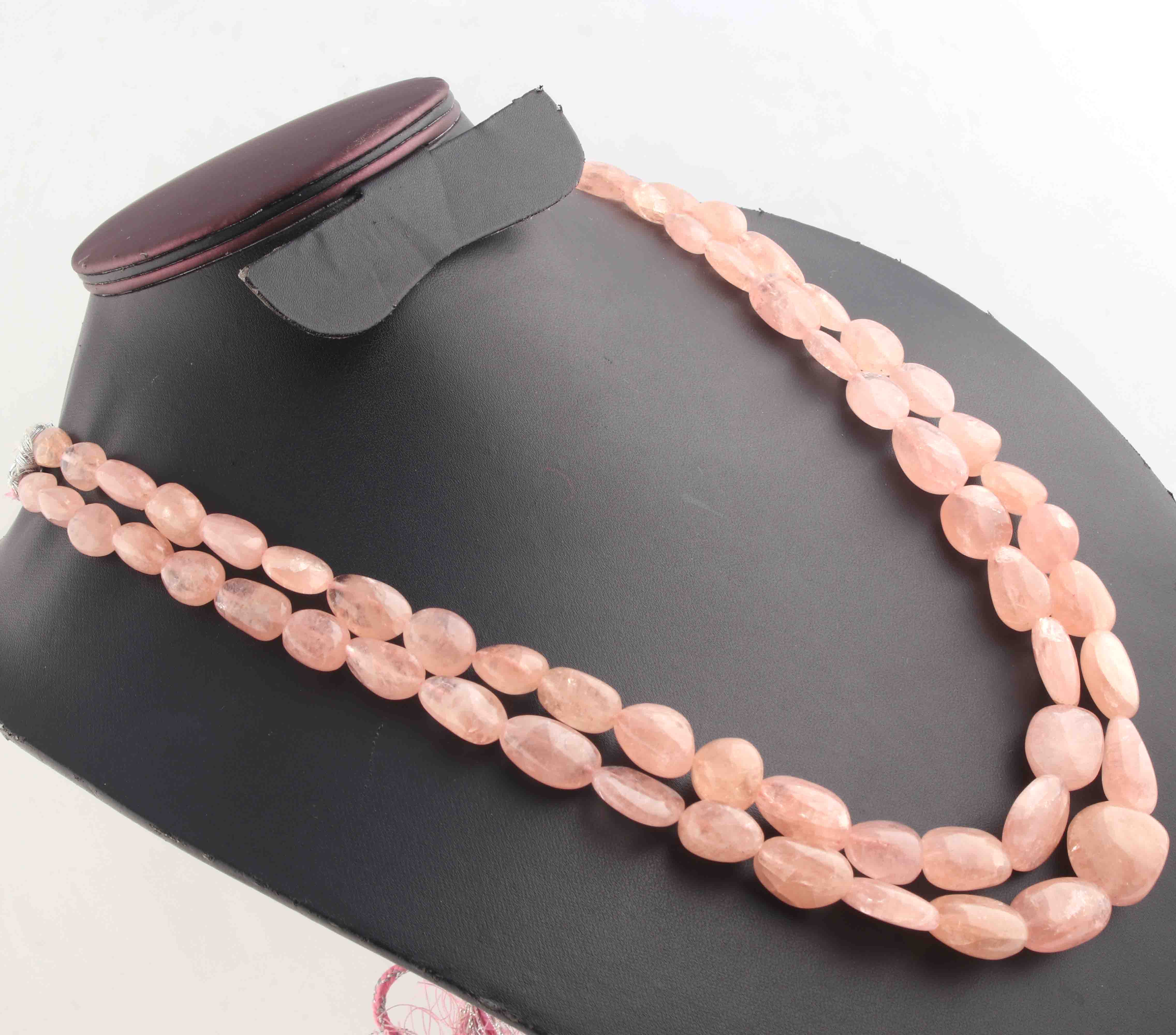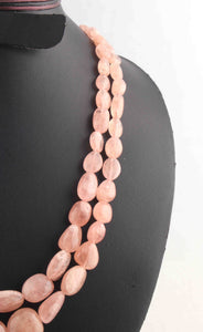 745 Carats 2 Strands Of Precious Genuine Morganite Necklace - Smooth oval Beads - Rare & Natural Necklace - Stunning Elegant Necklace BRU198