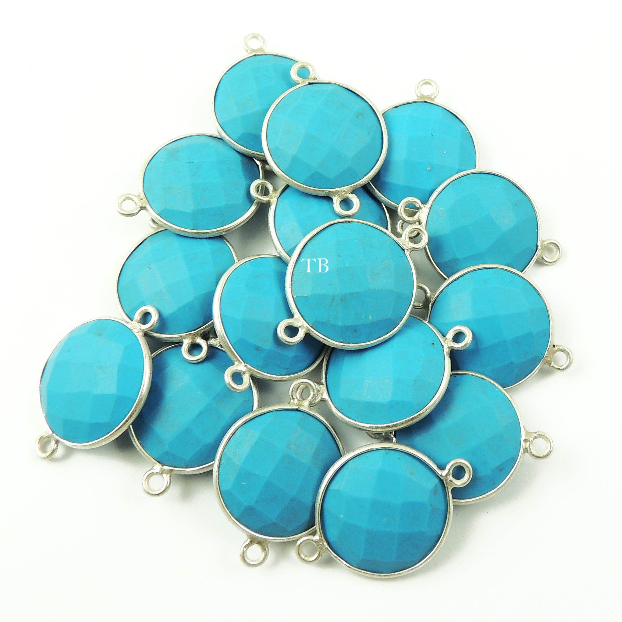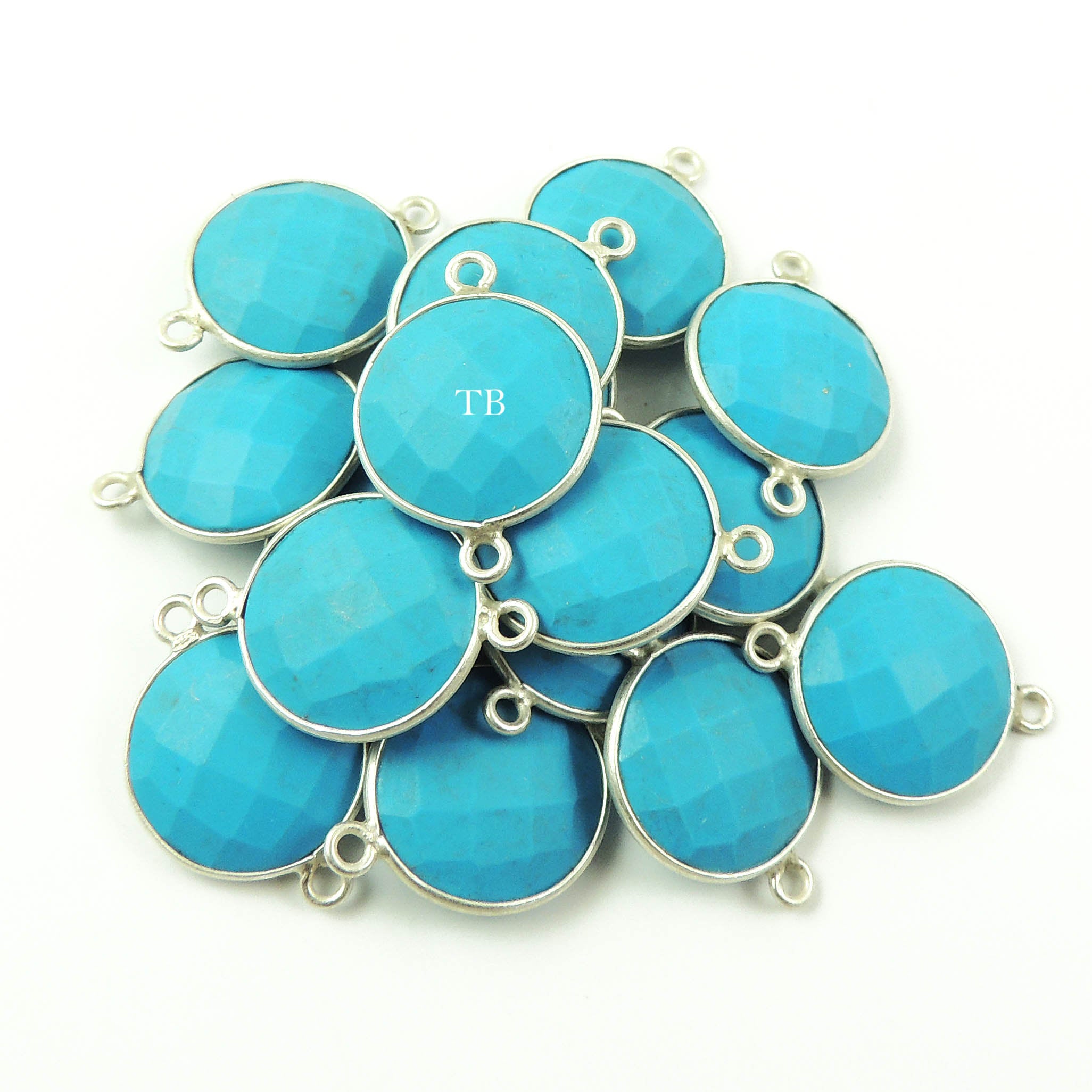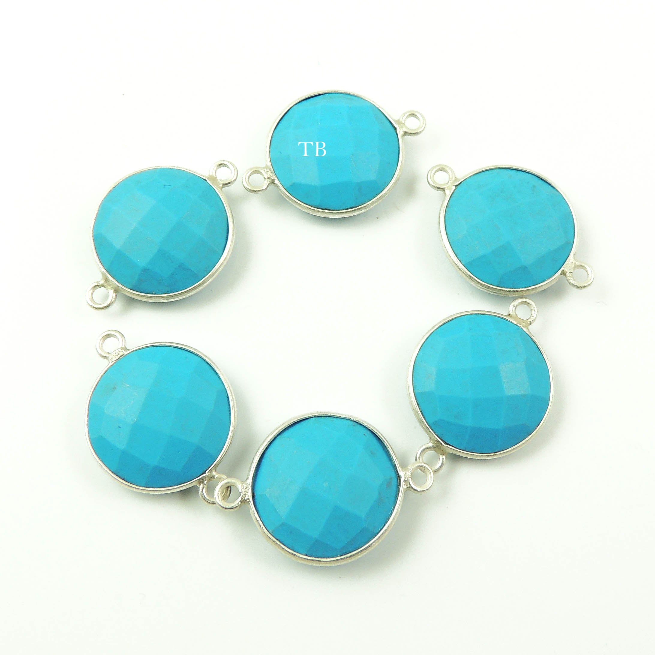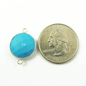 7 Pcs Turquoise 925 Sterling Silver Faceted Round Double Bail Connector/Pendant 21mmx15mm SS323