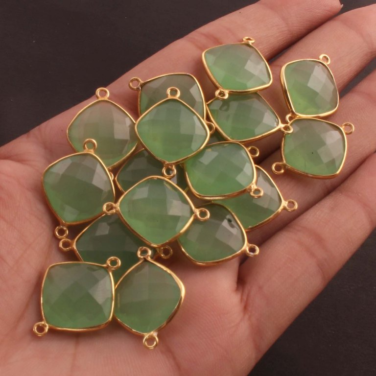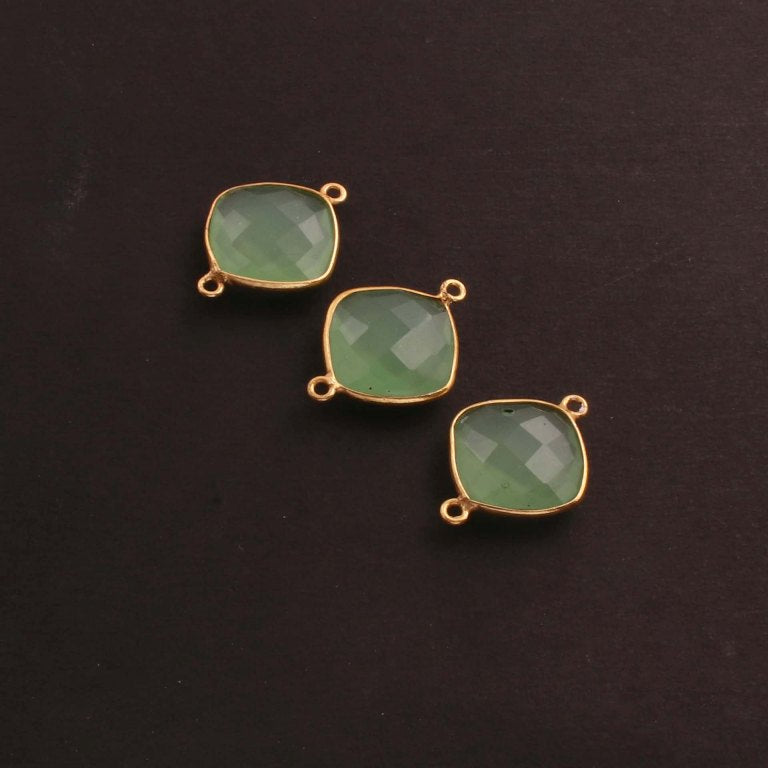 8 Pcs Green Chalcedony 925 Sterling Vermeil Gemstone Faceted Cushion Shape Double Bail Connector -
