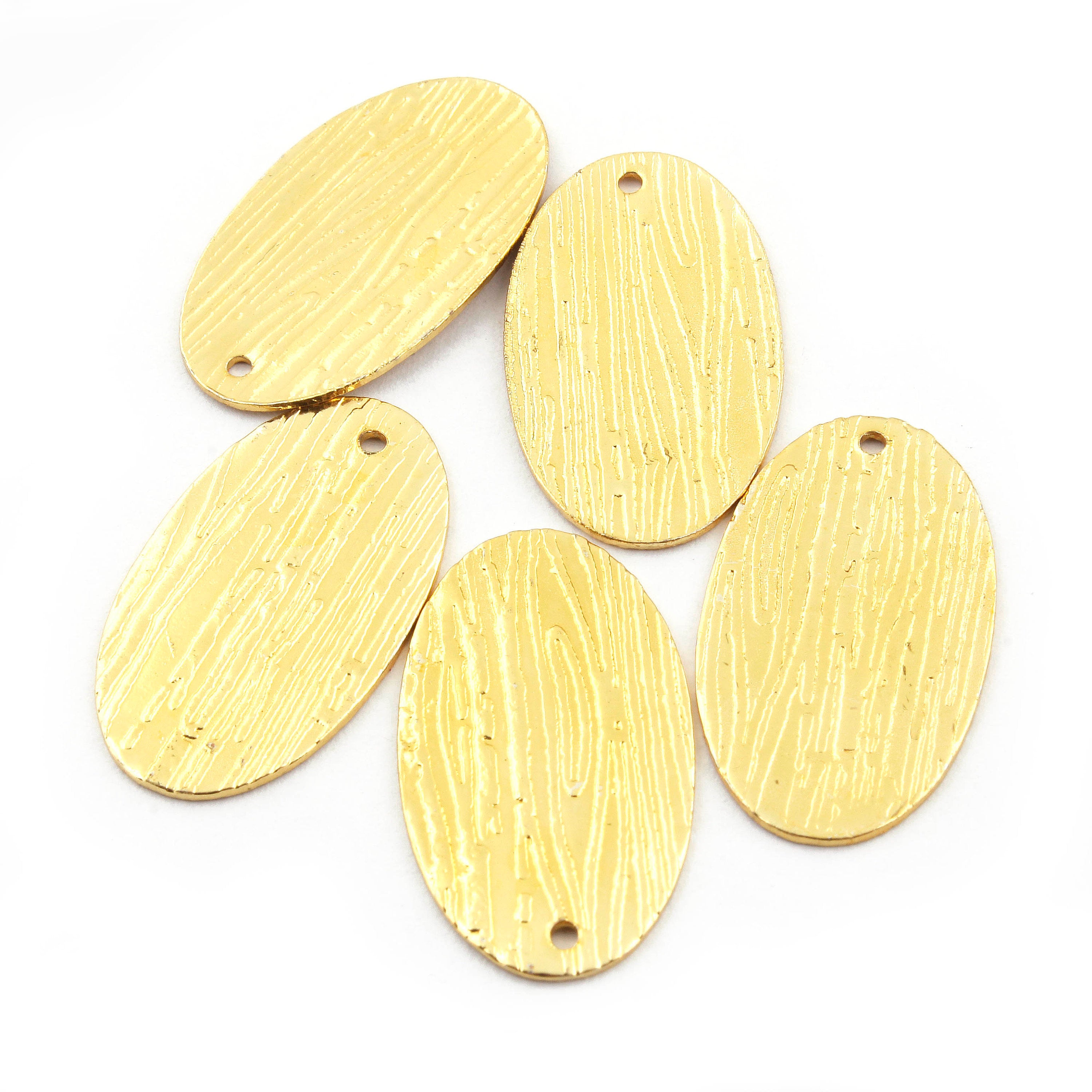 9 Pcs Gold Oval Charm 24k Gold Plated - 28mm X16mm - Gold Plated On Copper GPC567