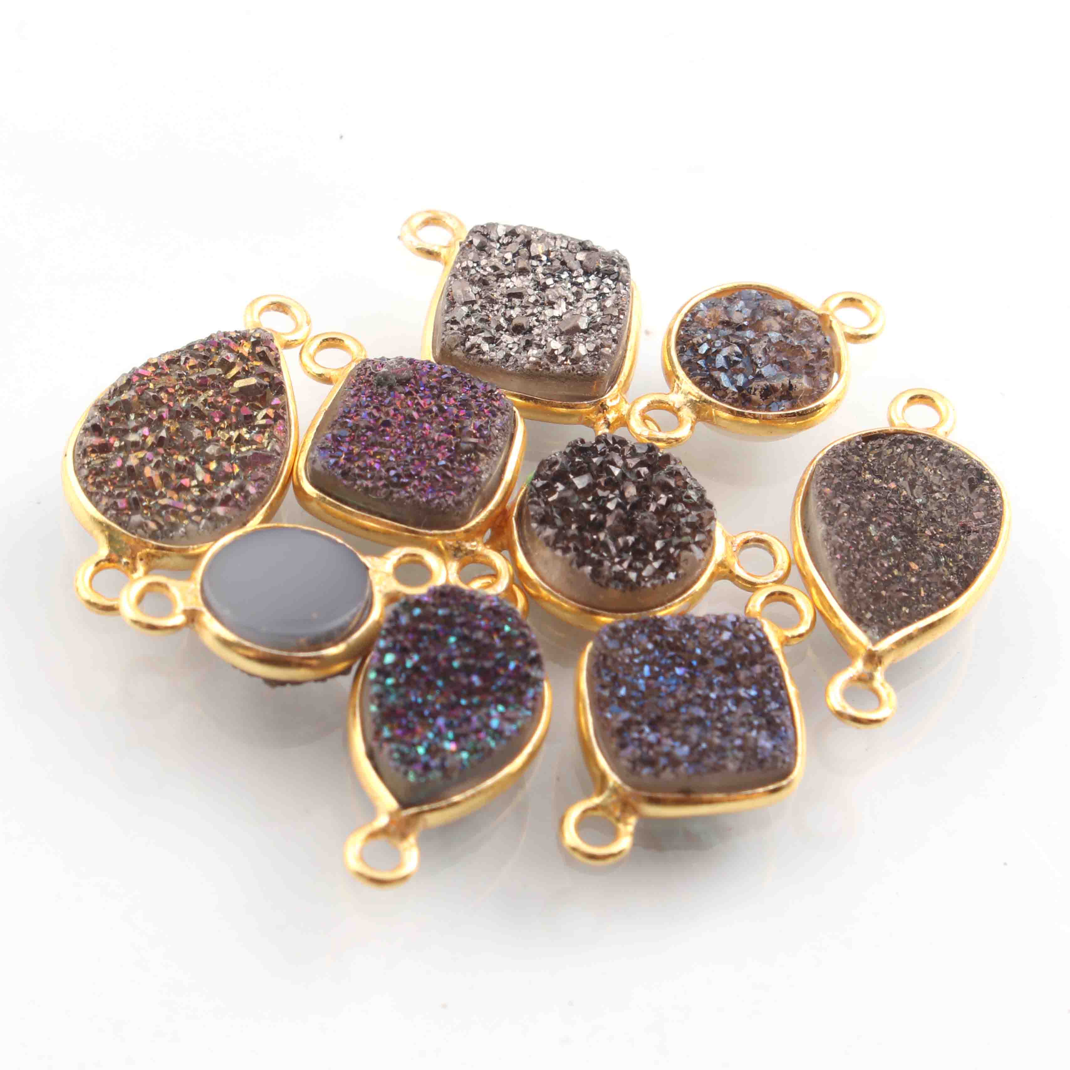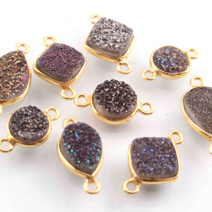 9 Pcs Mystic Mix Druzy Assorted 925 Sterling Vermeil Double Bail Connector - 13mmx8mm-18mmx9mm-SS1161