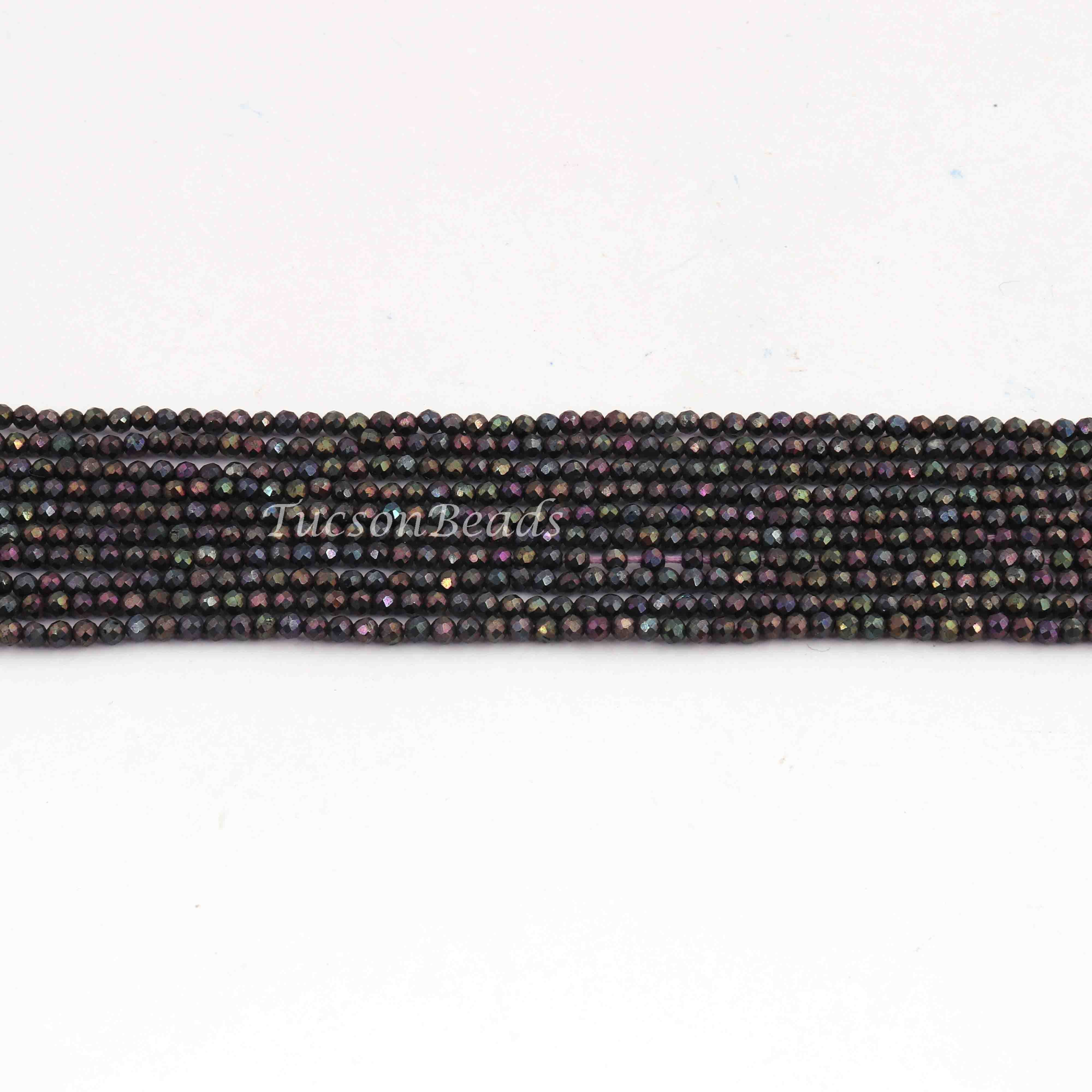 AAA Black Spinel Pink Coated Micro Faceted 2mm Beads RB200