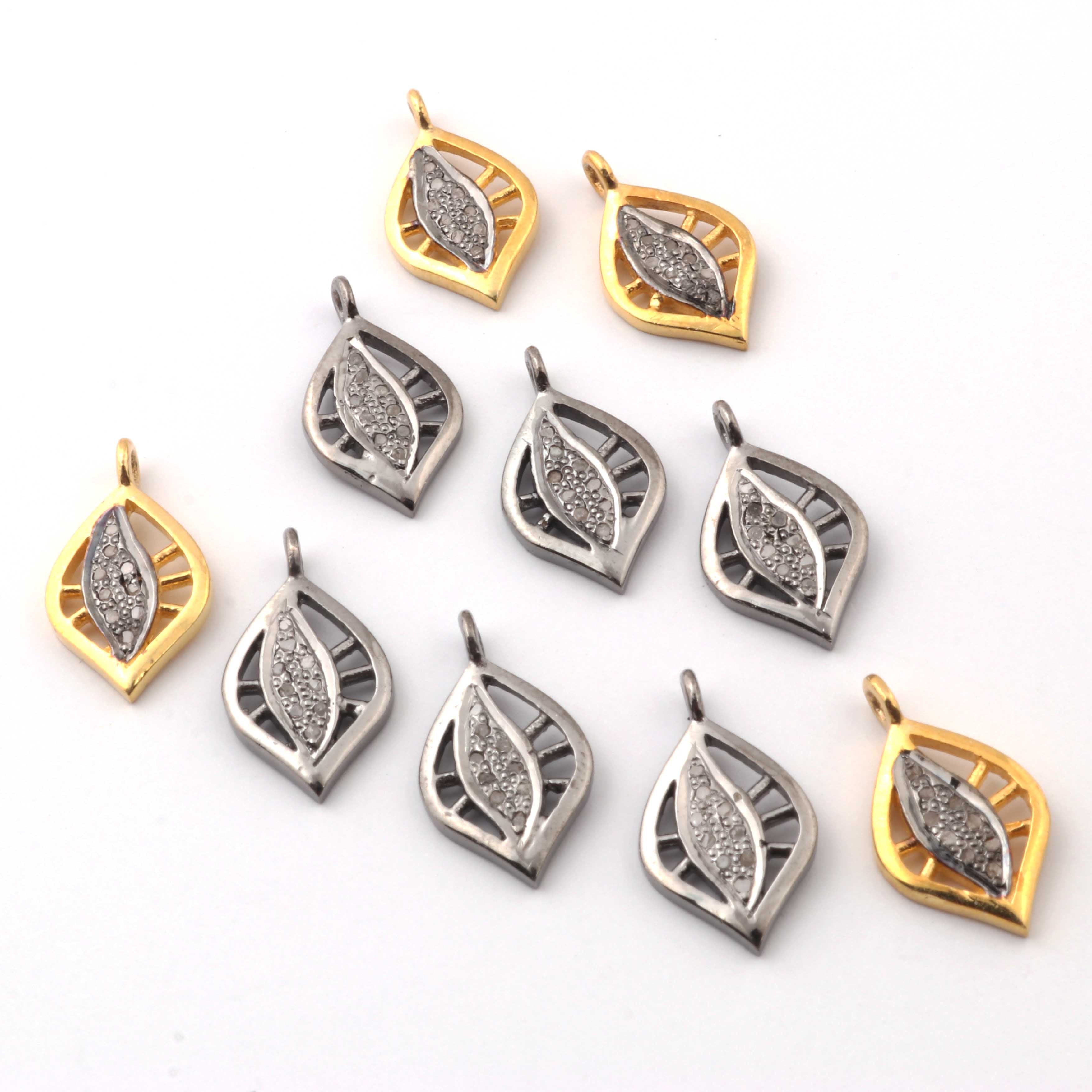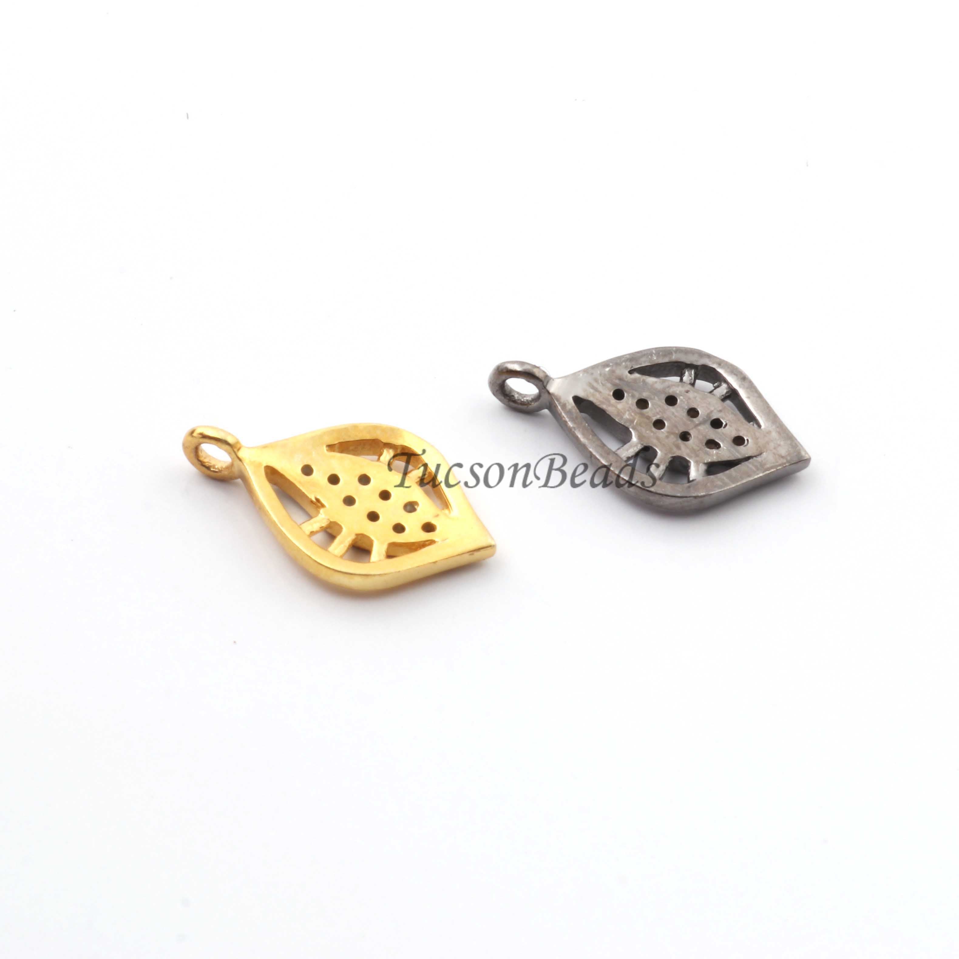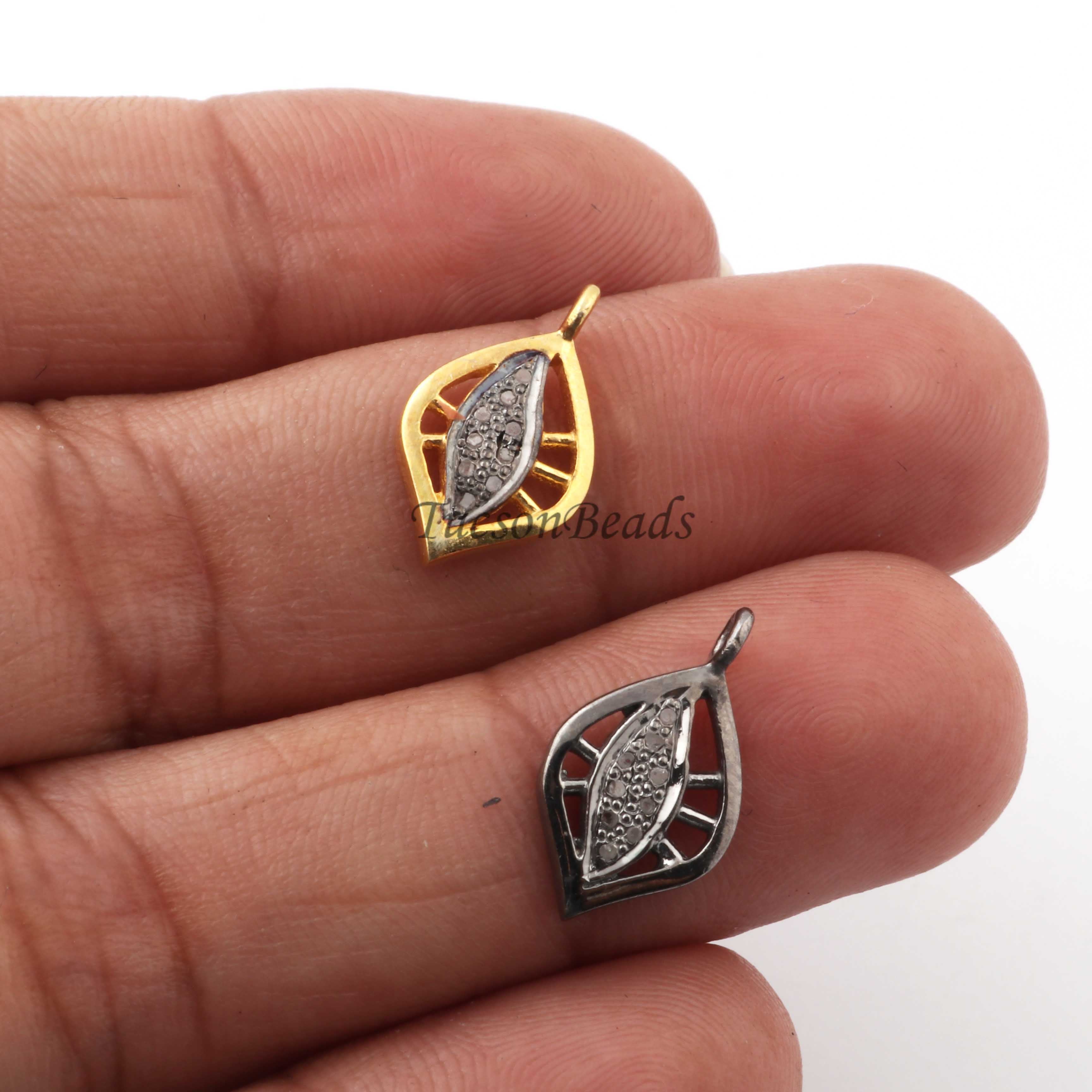 Listing is For One (1) Pc Pave Diamond Antique Leaf Charm 925 sterling Silver / Sterling Vermeil Pendant- 15mmx9mm PDC1339