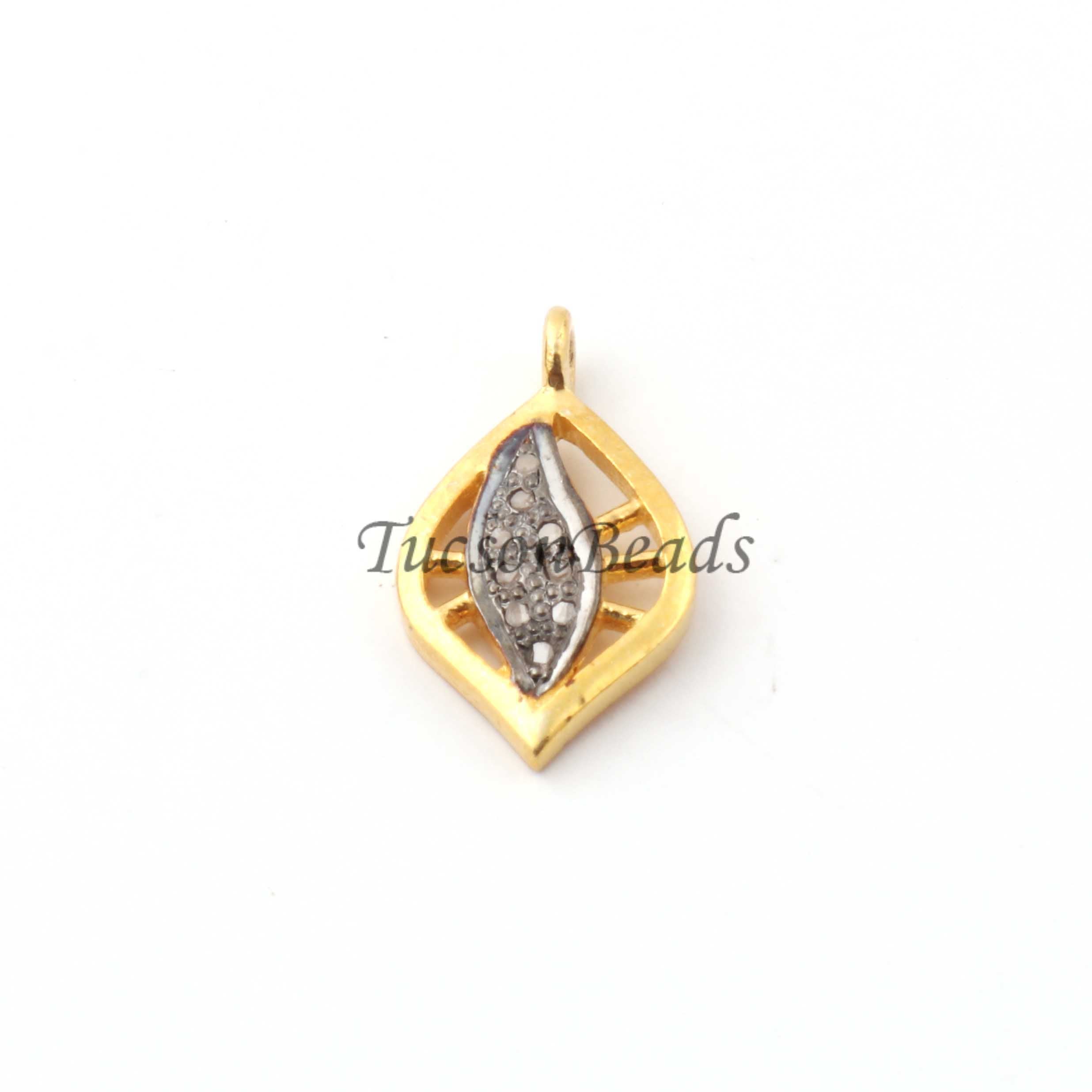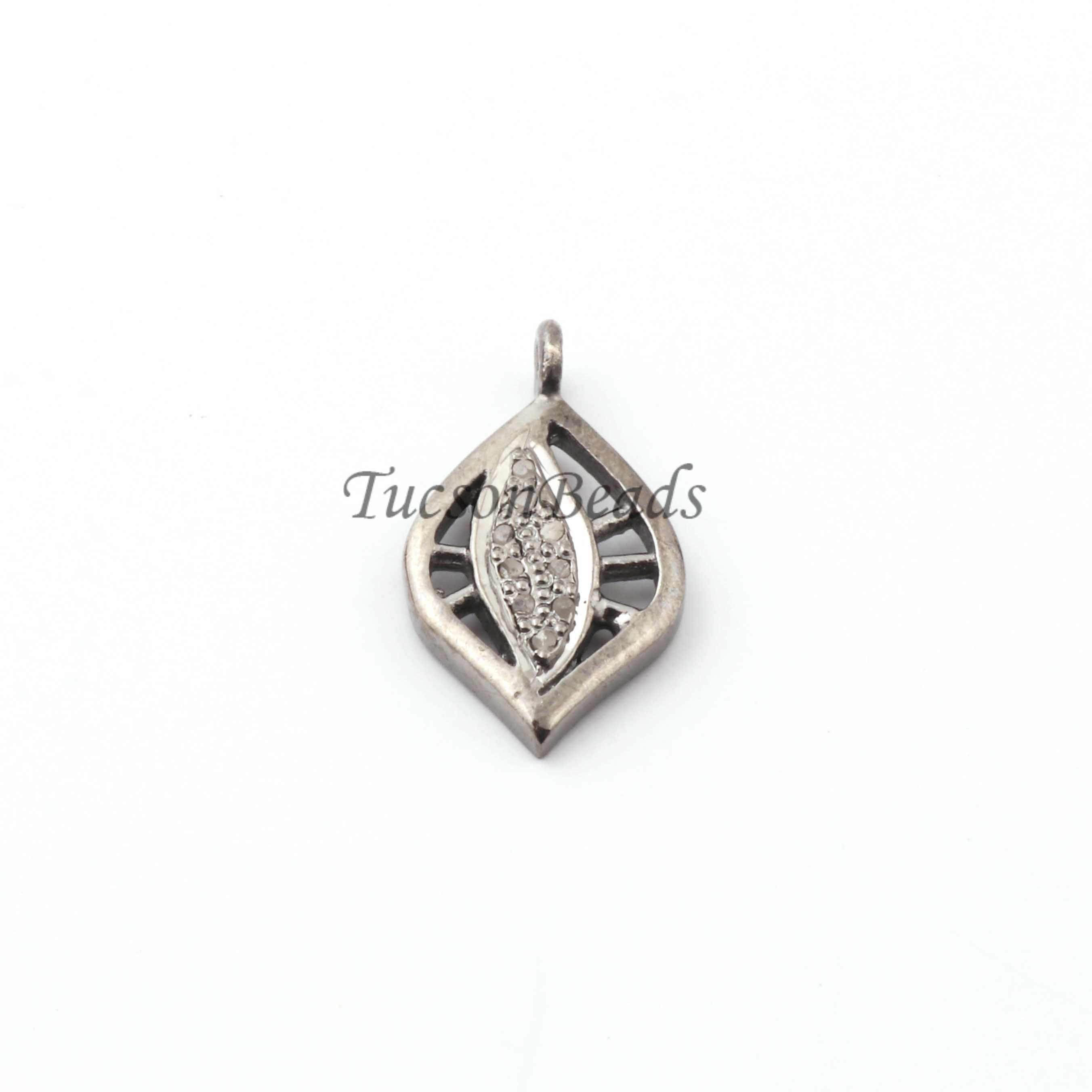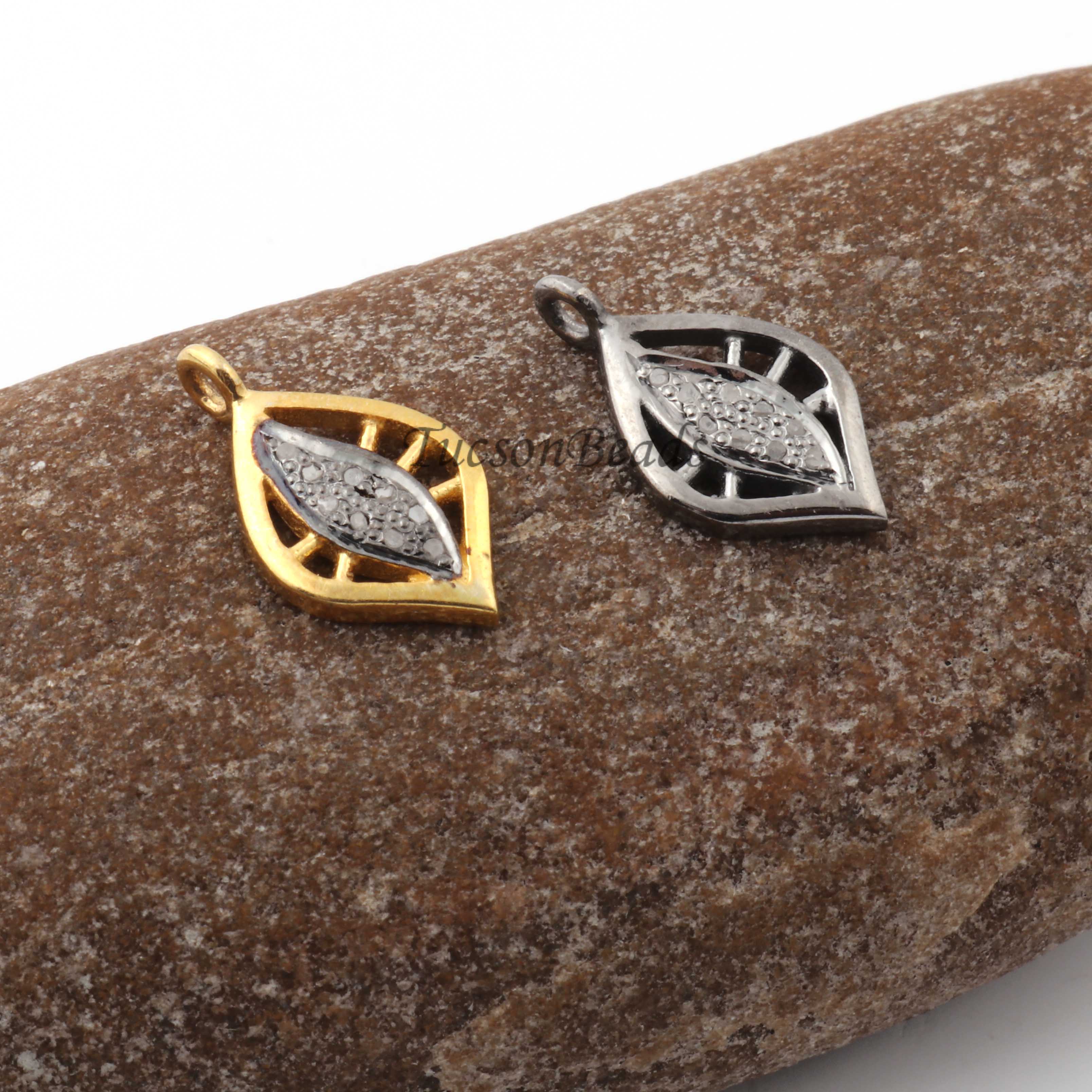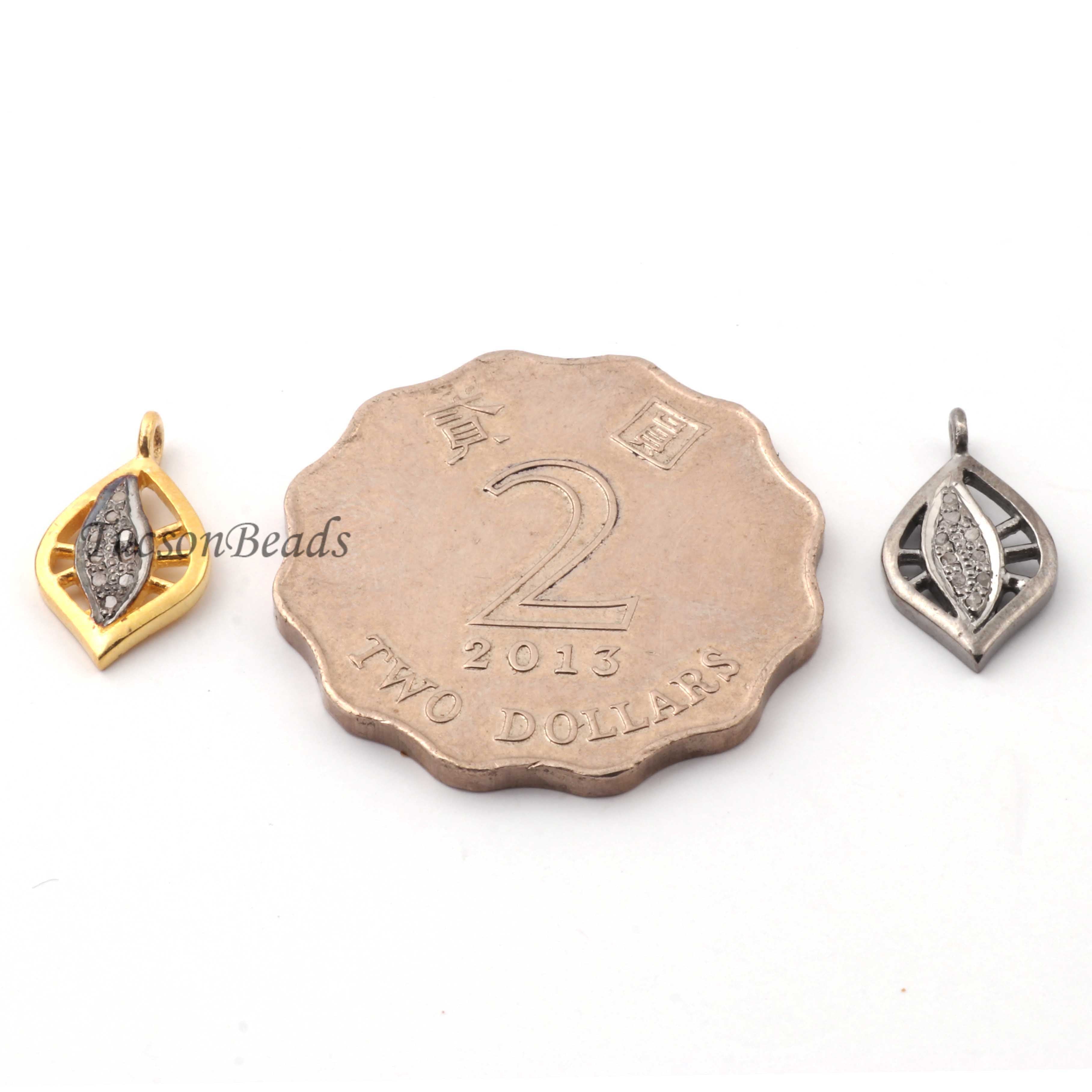 Listing is For One (1) Pc Pave Diamond Antique Leaf Charm 925 sterling Silver / Sterling Vermeil Pendant- 15mmx9mm PDC1339