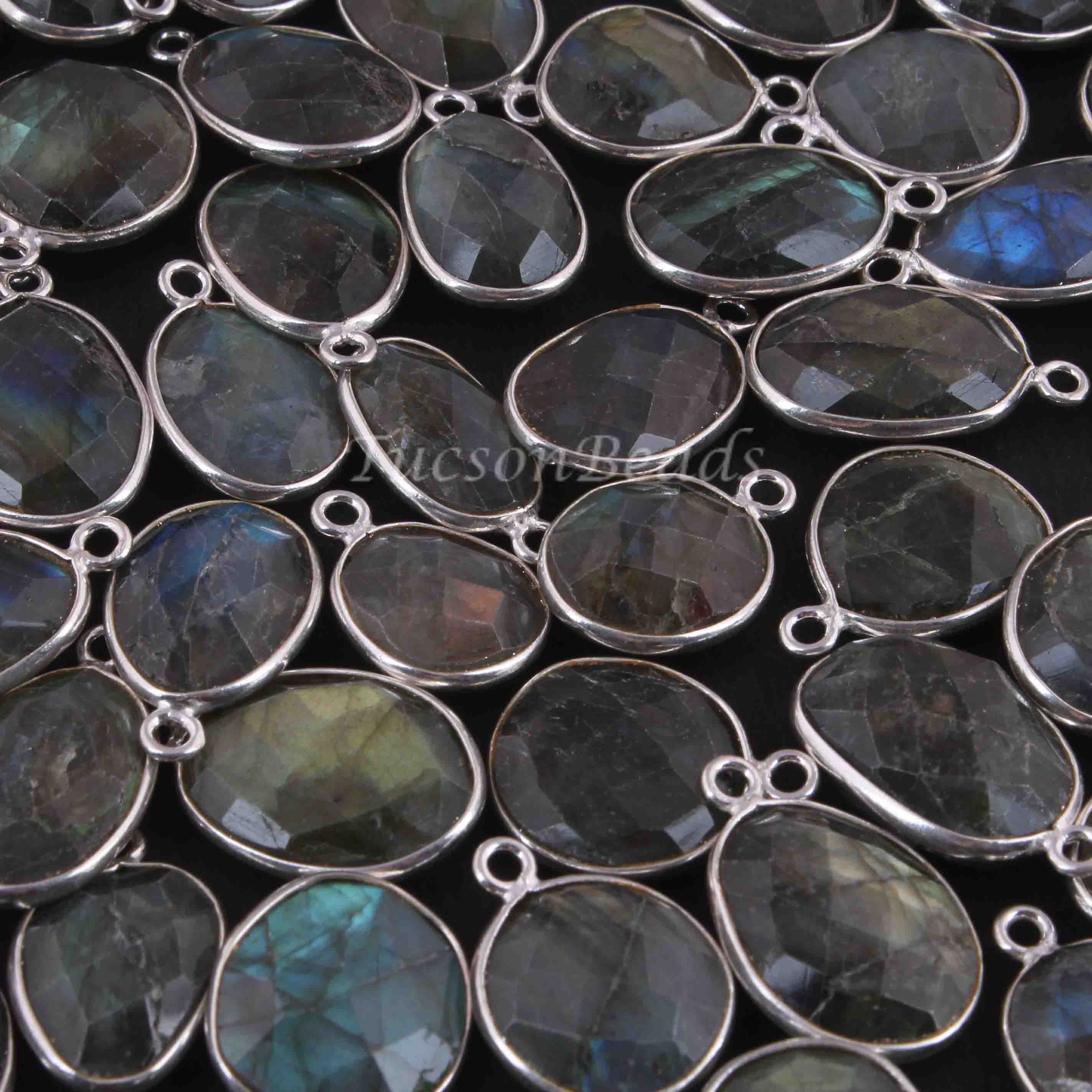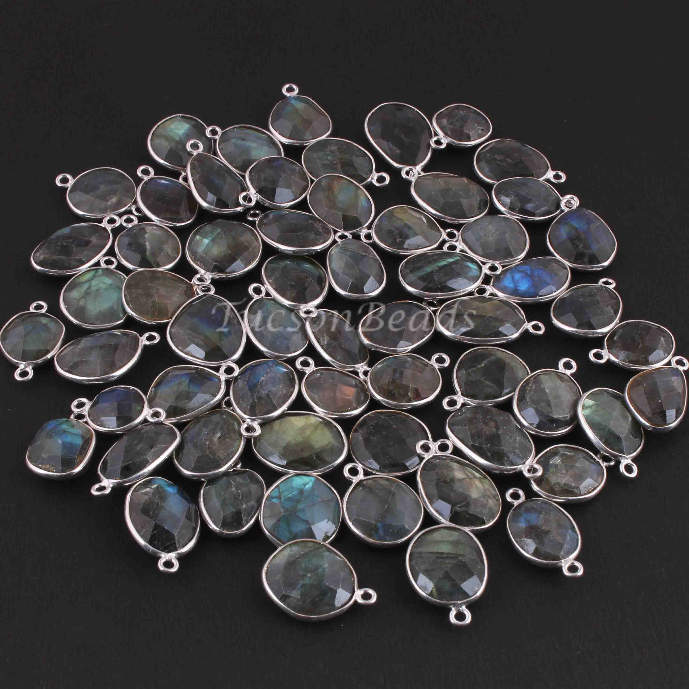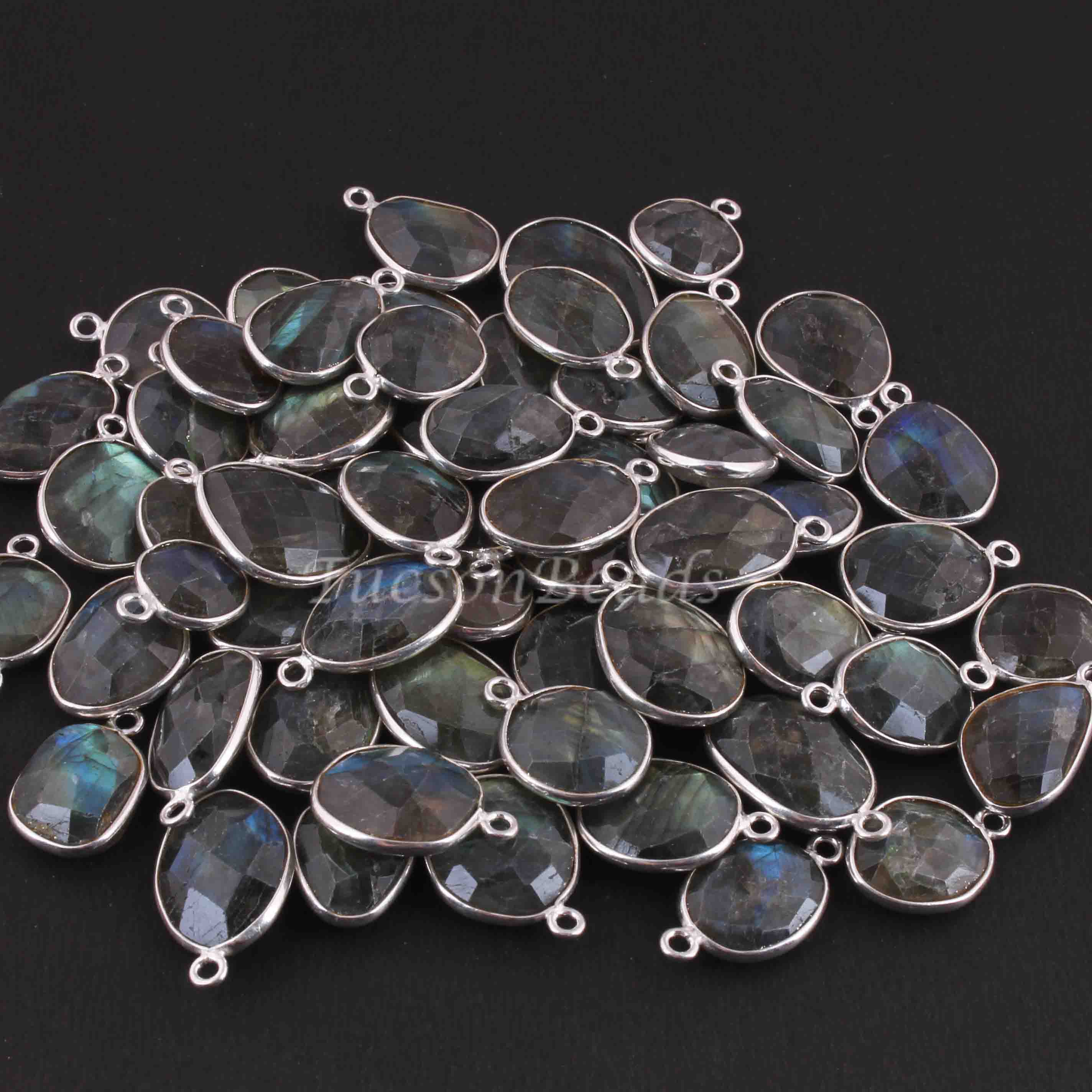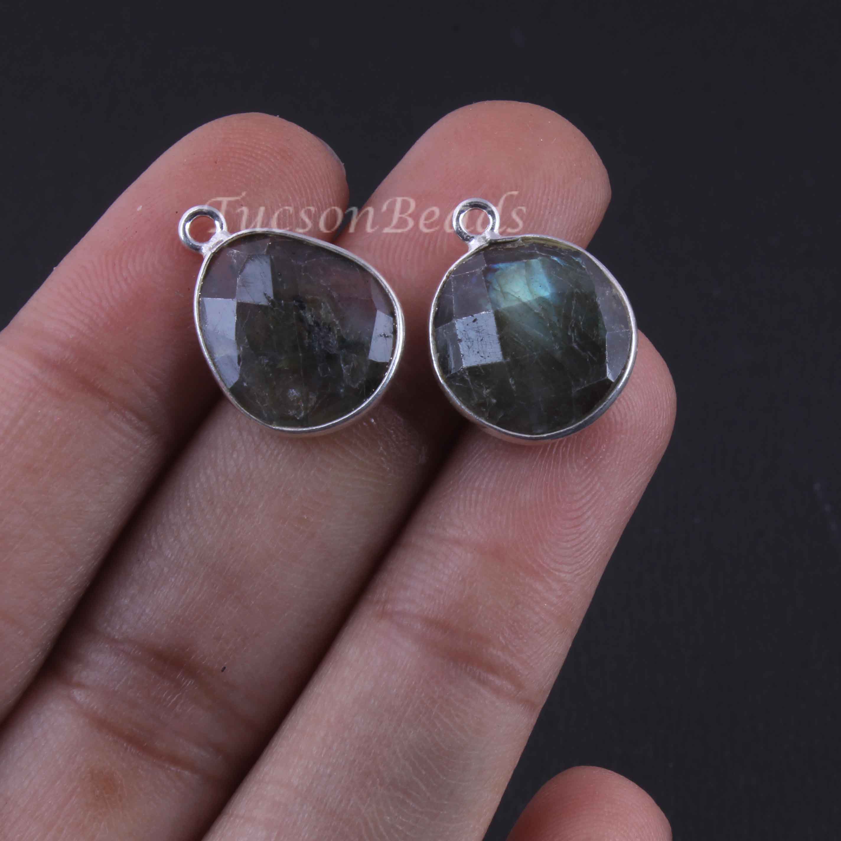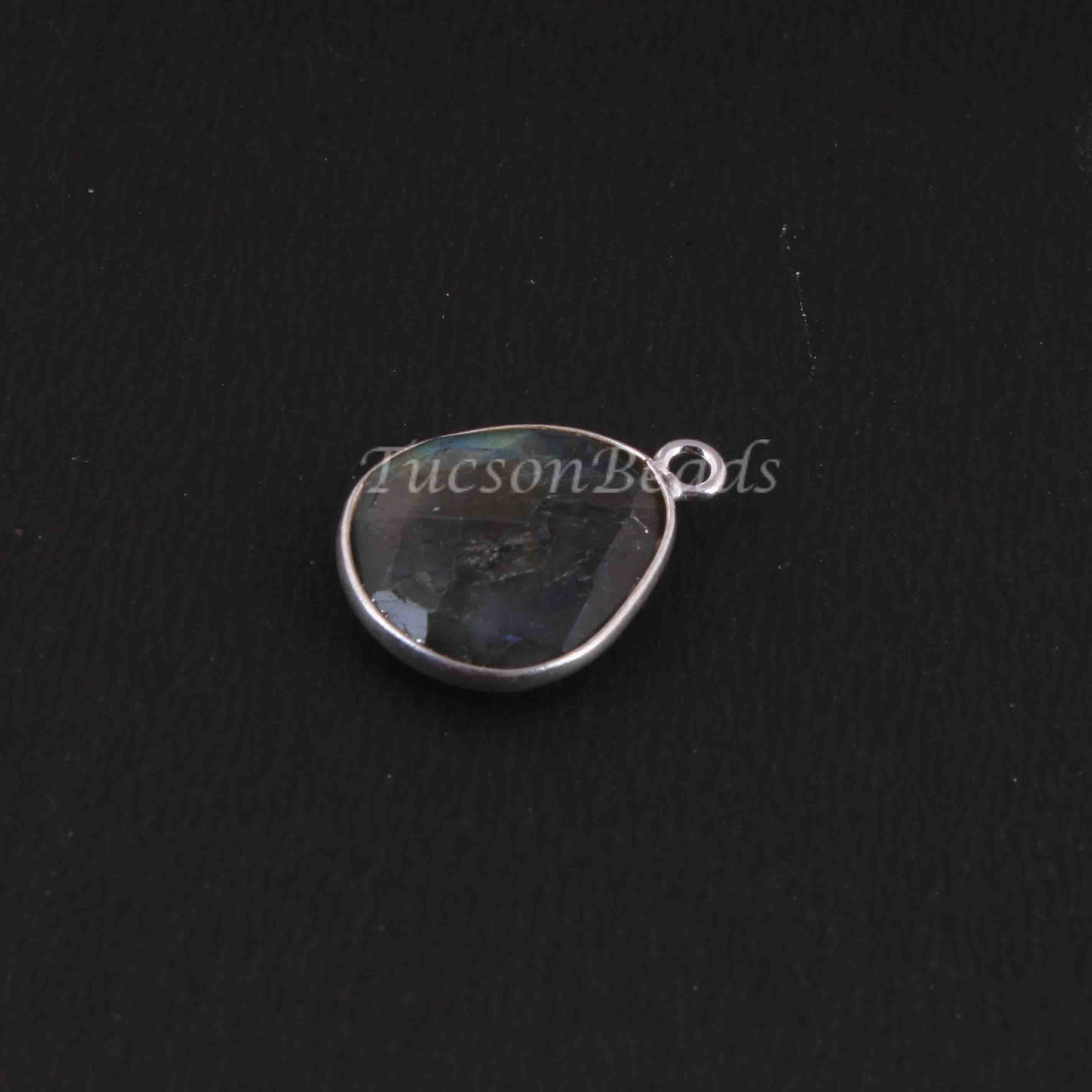 10 Pcs Beautiful Labradorite Assorted Shape 925 Sterling Silver Gemstone Faceted Pendant - 23mmx13mm-16mmx11mm SS1129