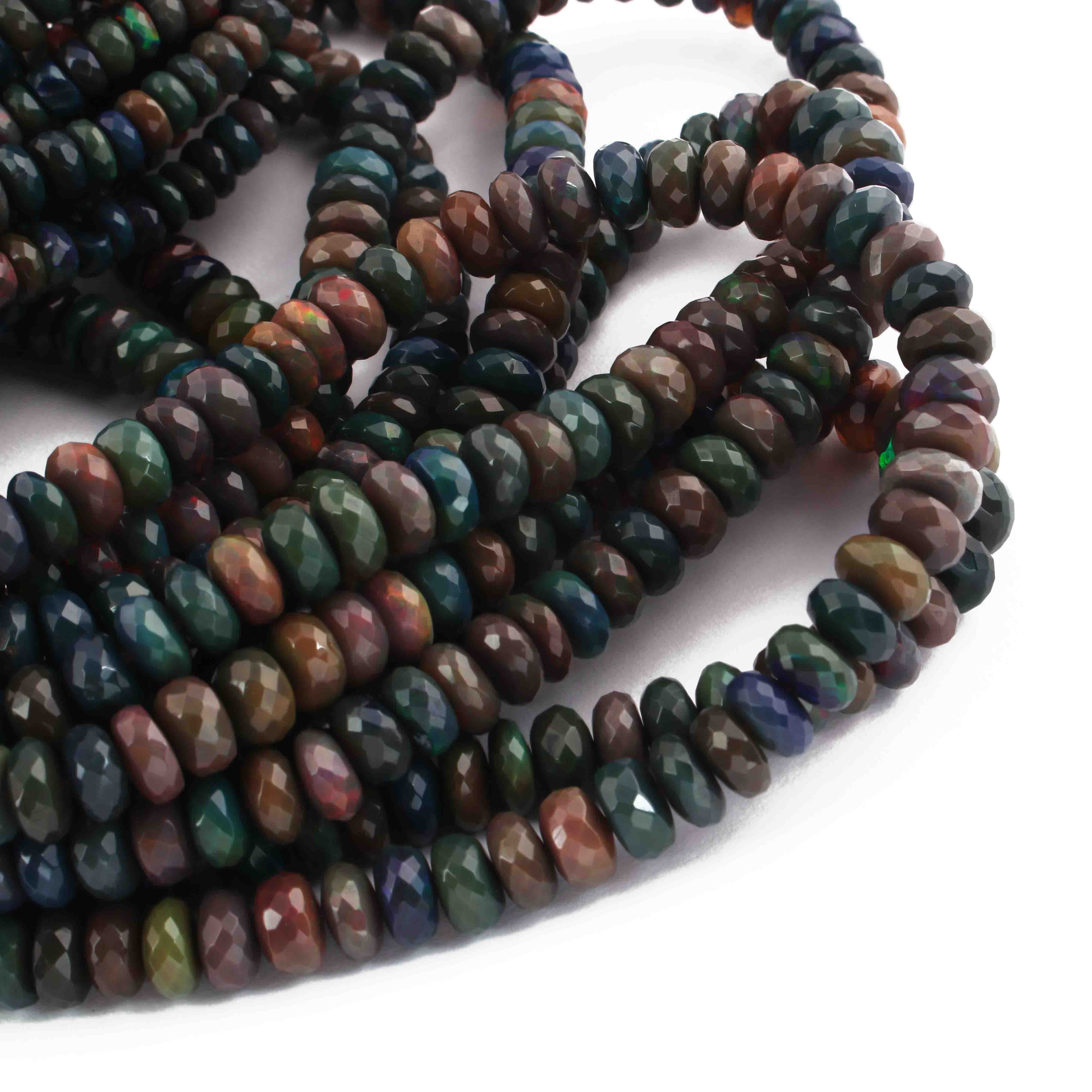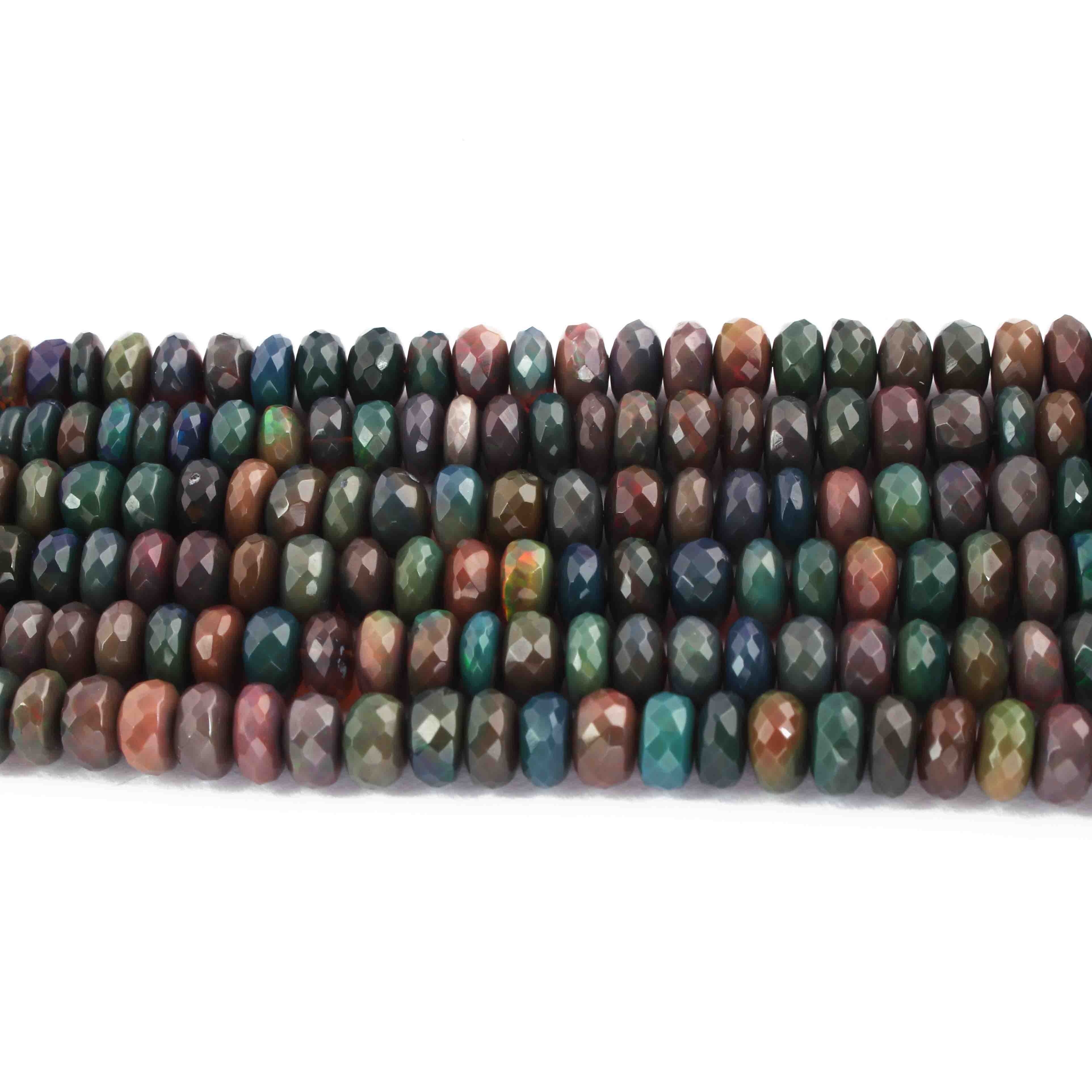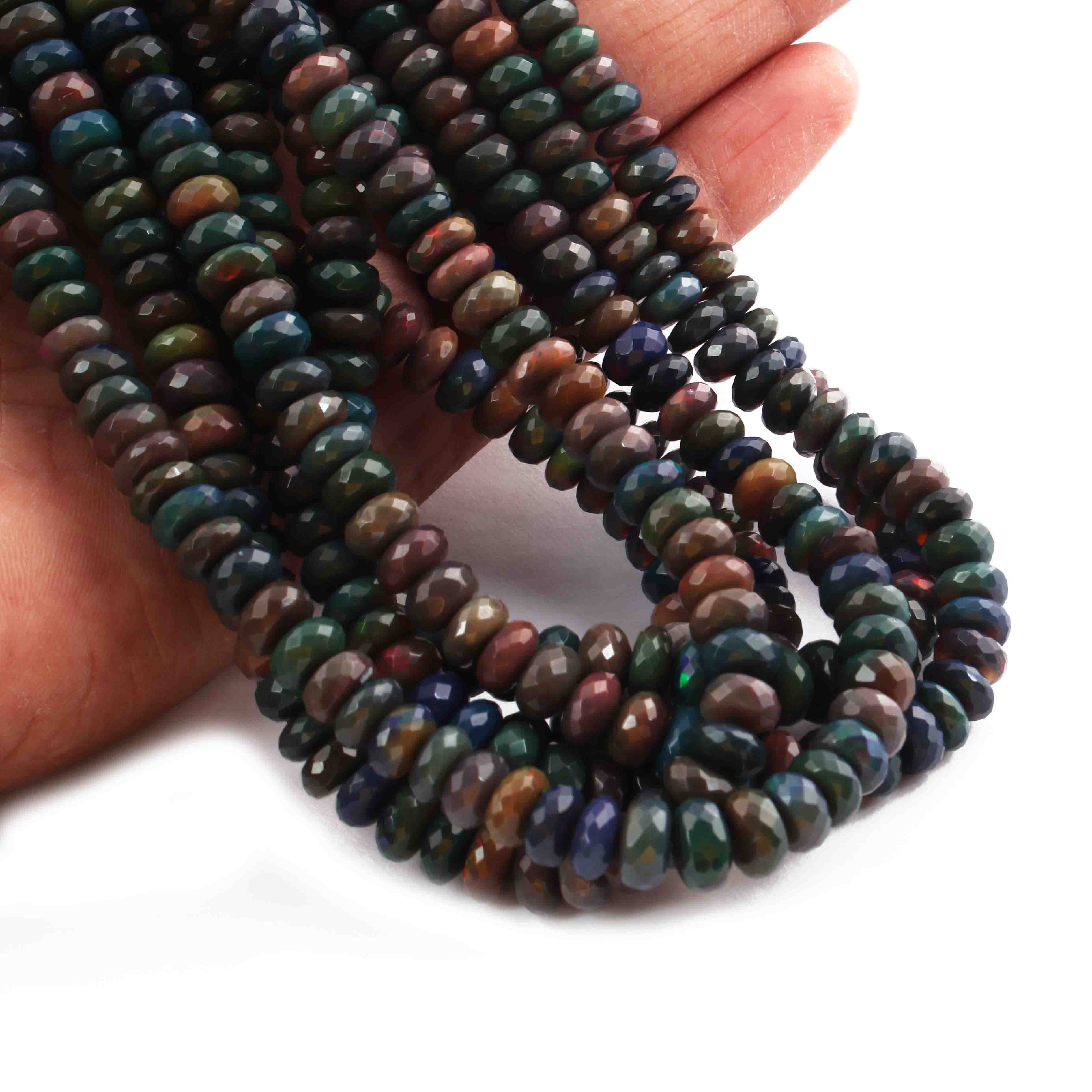 1 Long Strand Black Ethiopian Welo Opal Faceted Rondelles - Ethiopian Roundelles Beads 6mm-9mm 17 Inches long BR0887