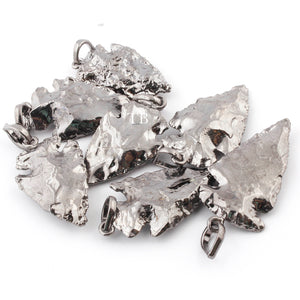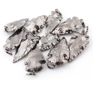 3 Pcs Black Jasper Arrowhead 24k Gold Plated Pendant - Electroplated With Gold Edge AR126