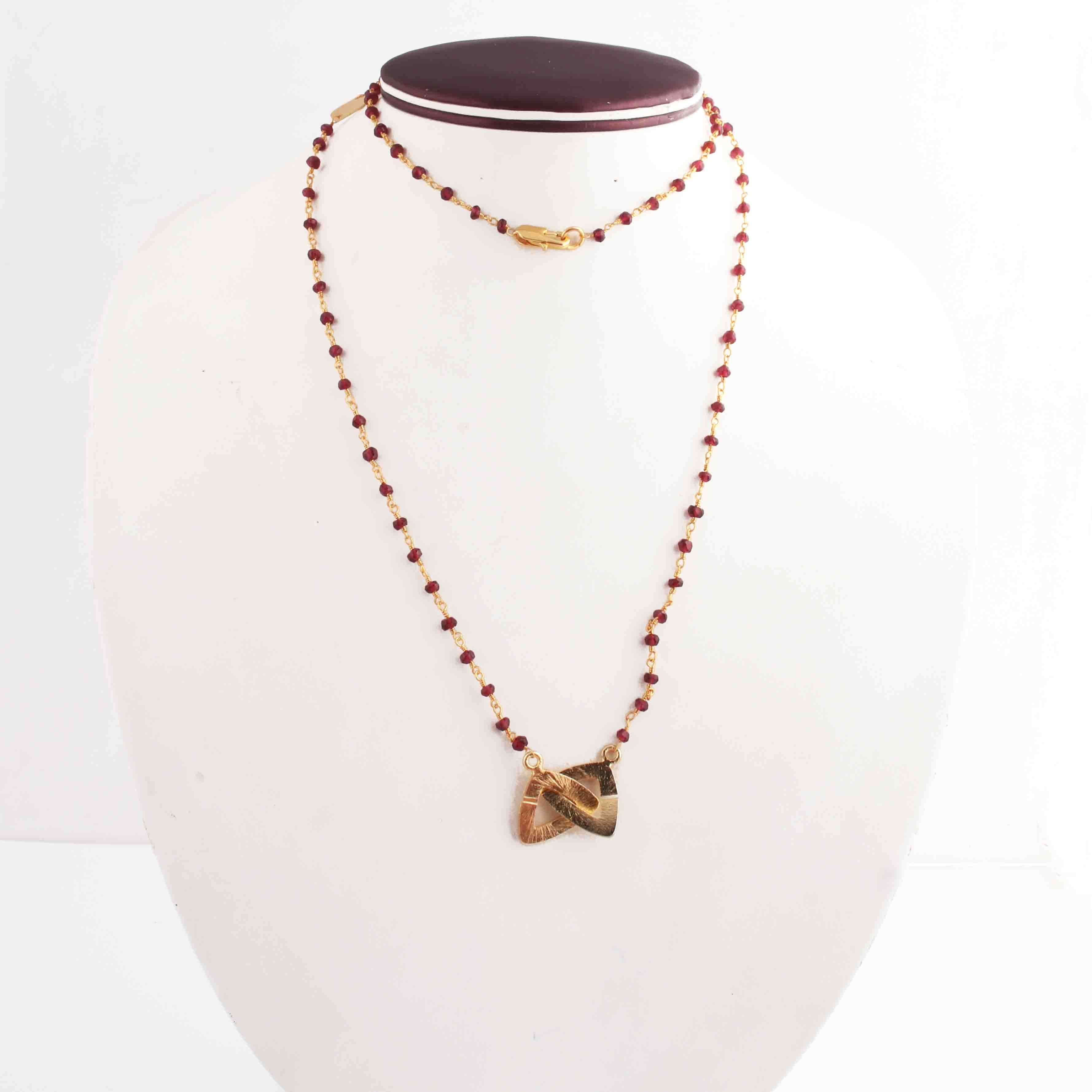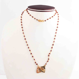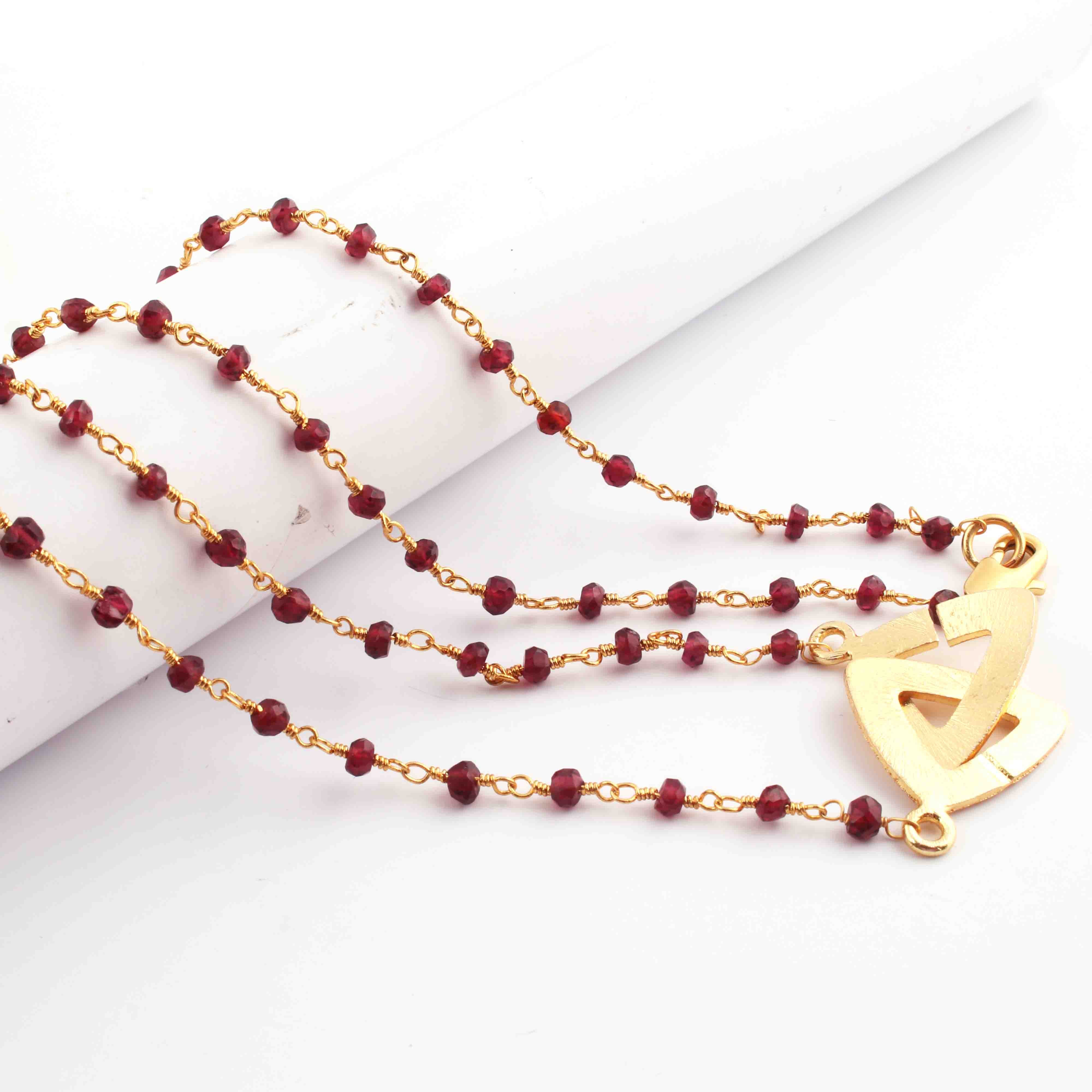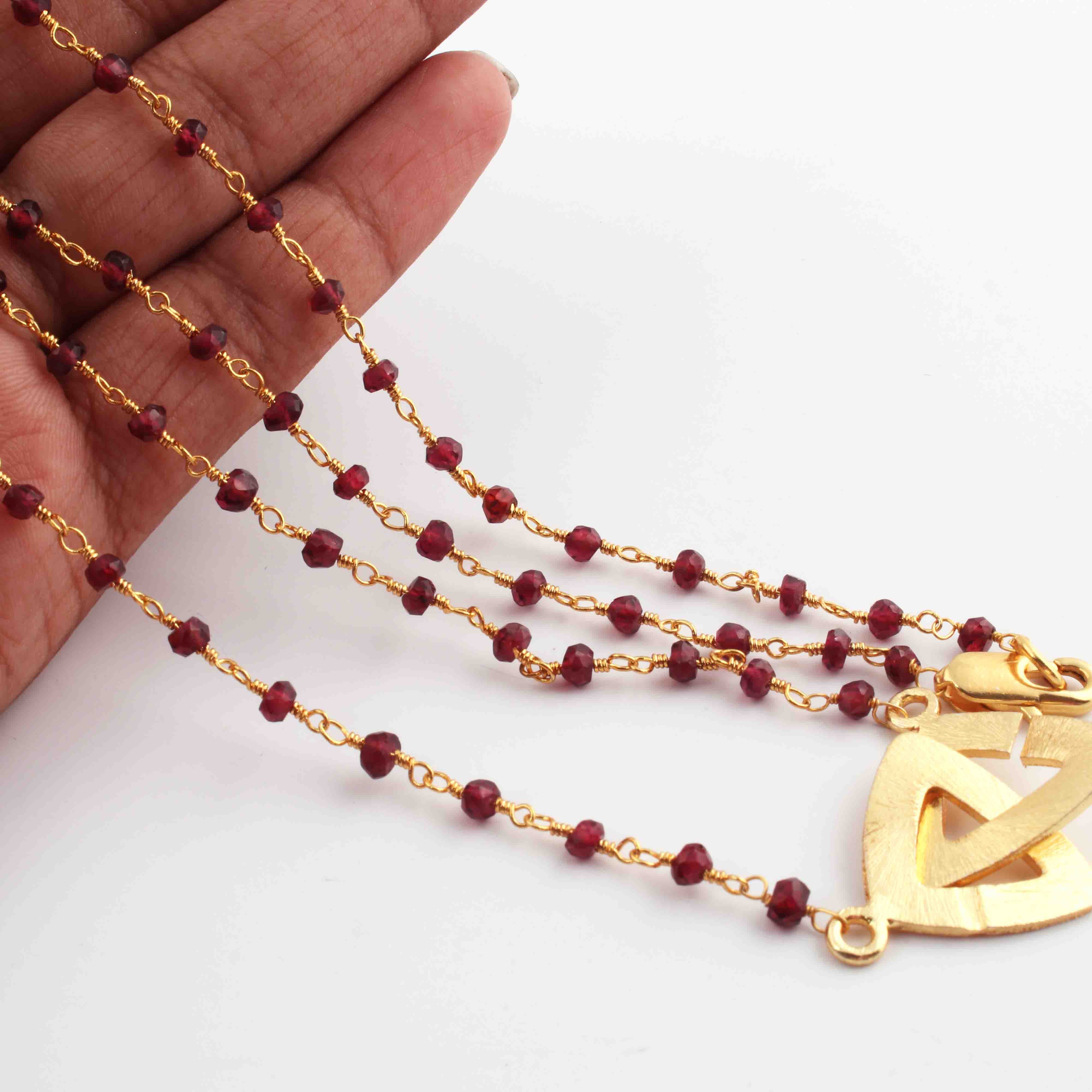 Garnet Chain Necklace - Faceted Sparkly 24K Gold Plated Necklace ,Tiny Beaded 3mm, Necklace - 32"Long GPC1426