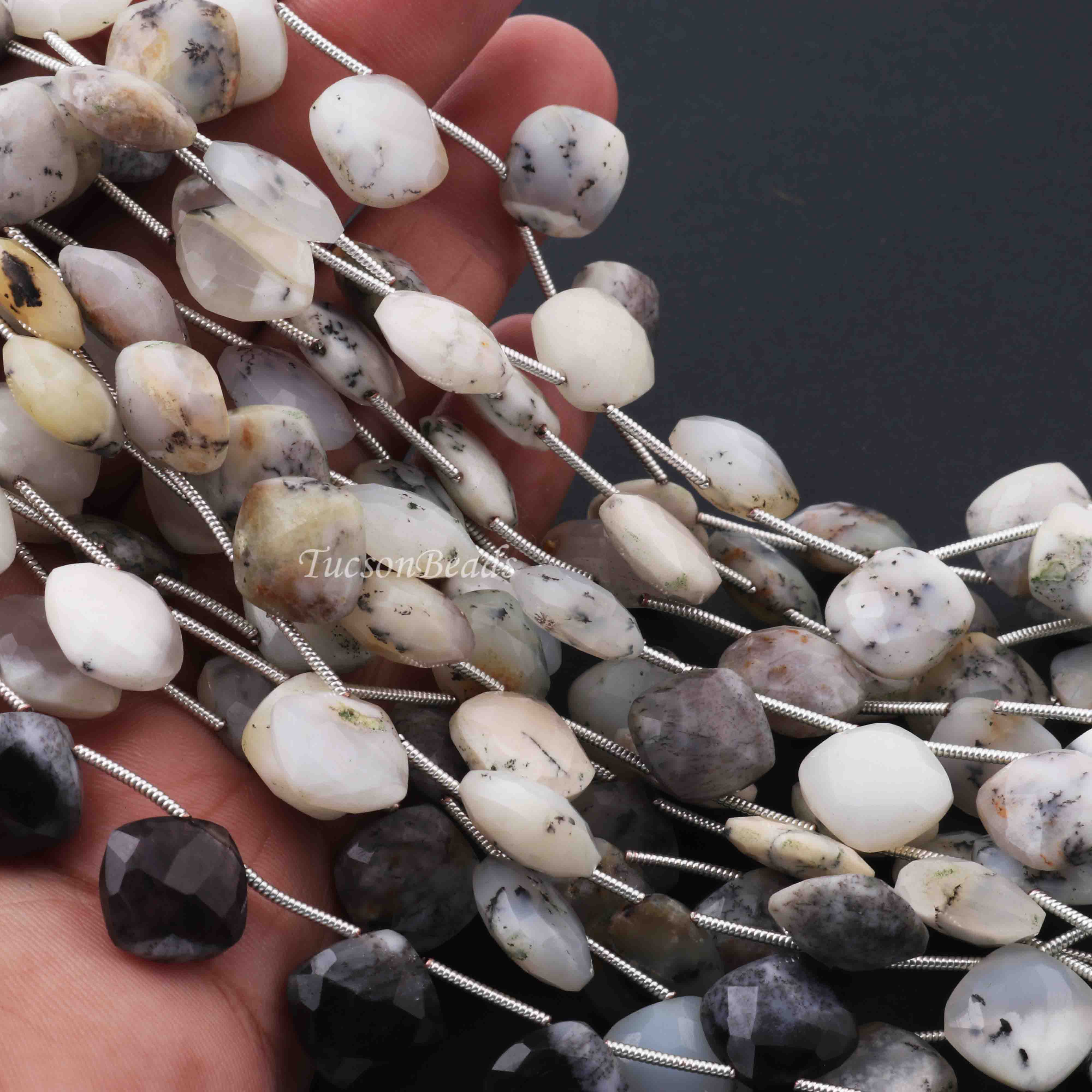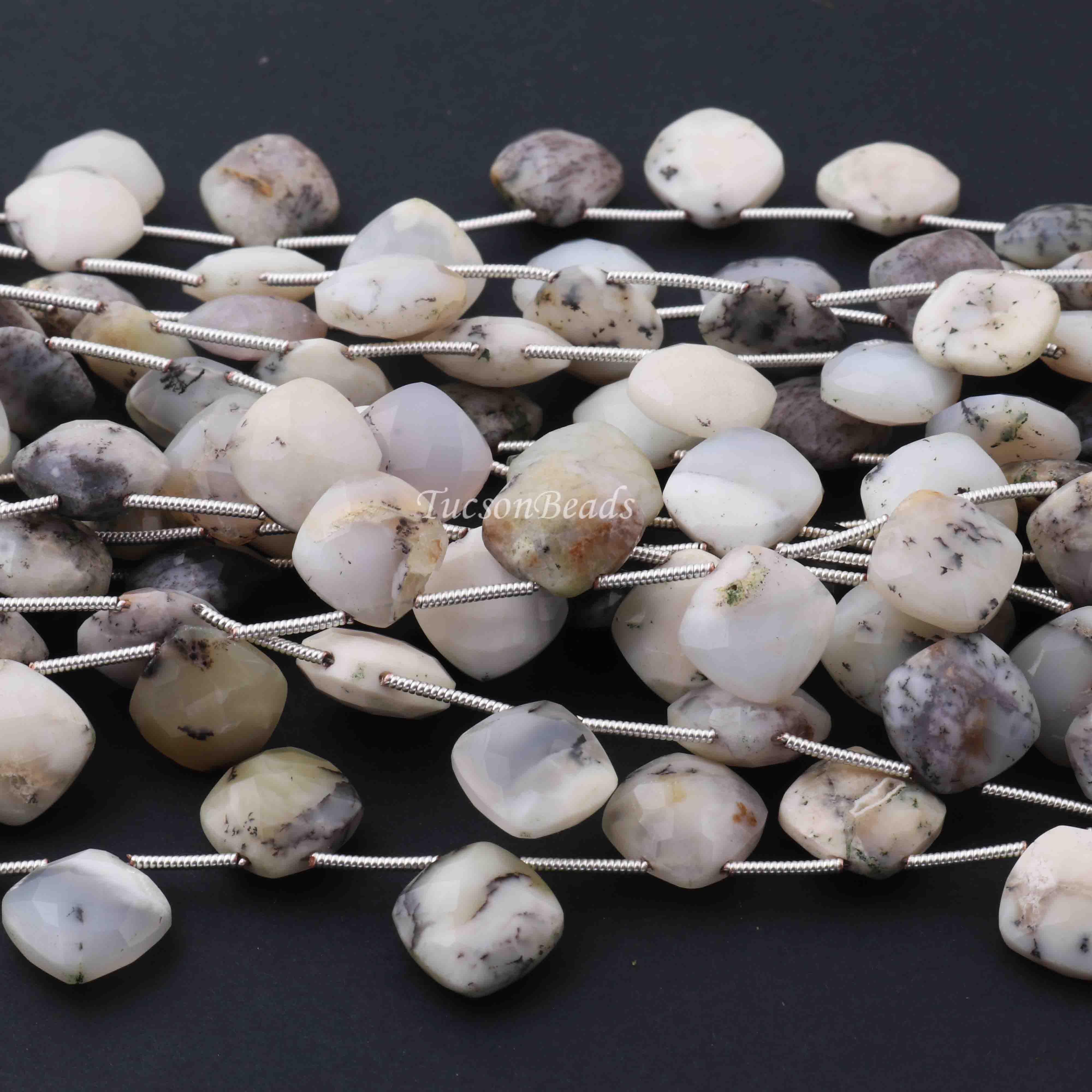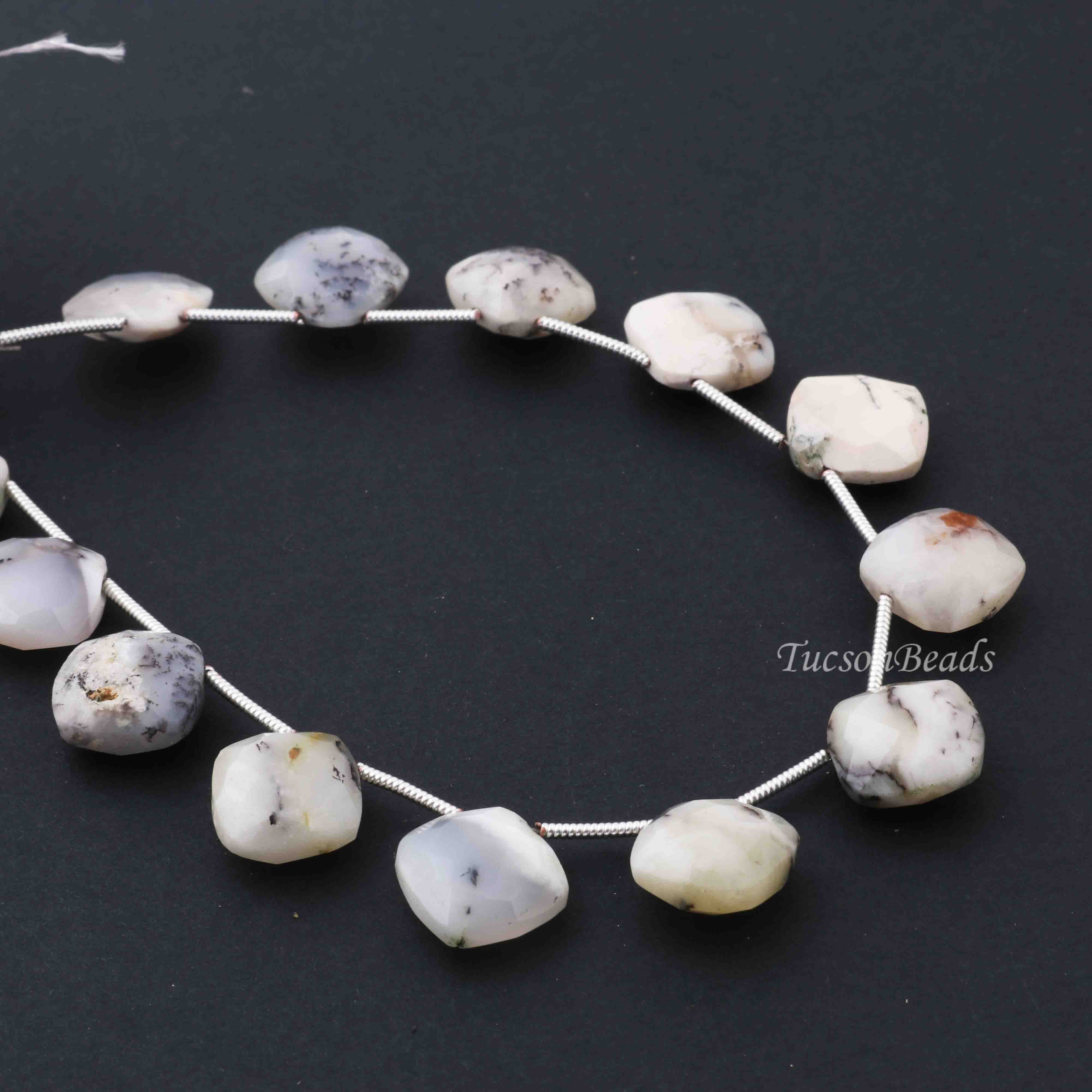 1 Strand Dendrite Opal Faceted Cushion Shape Briolettes - Dendrite Opal Cushion Shape Beads 8mm 7.5 Inches BR0153