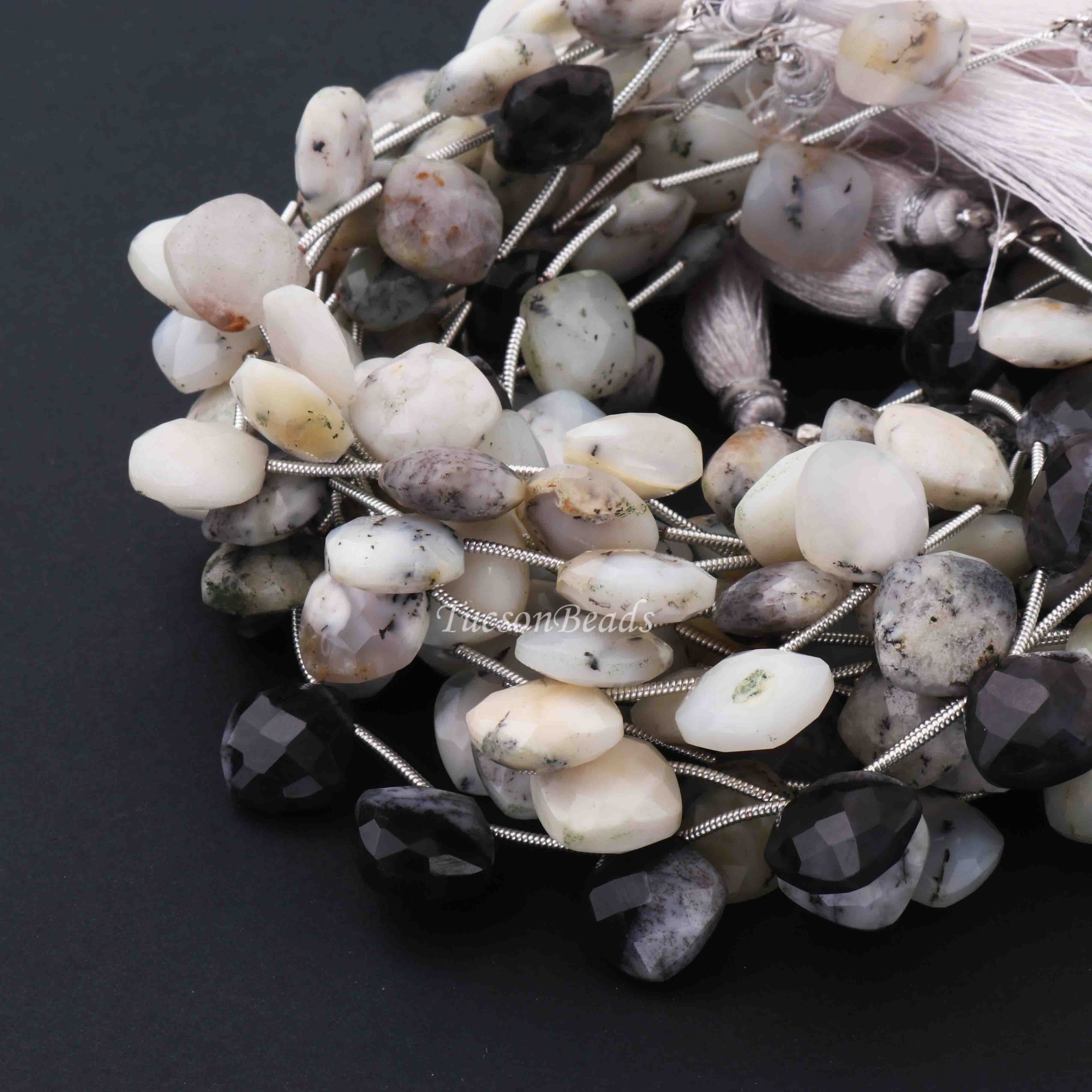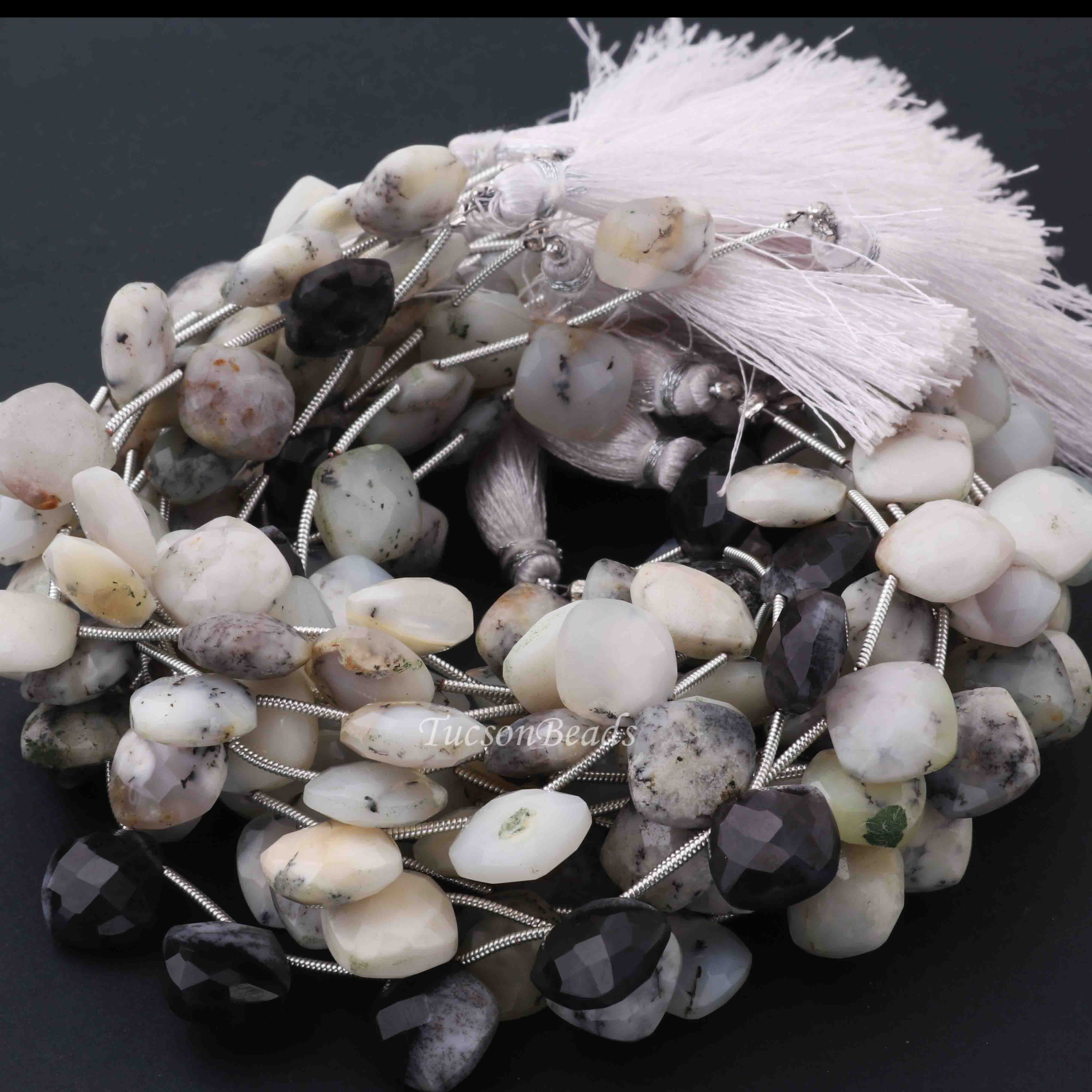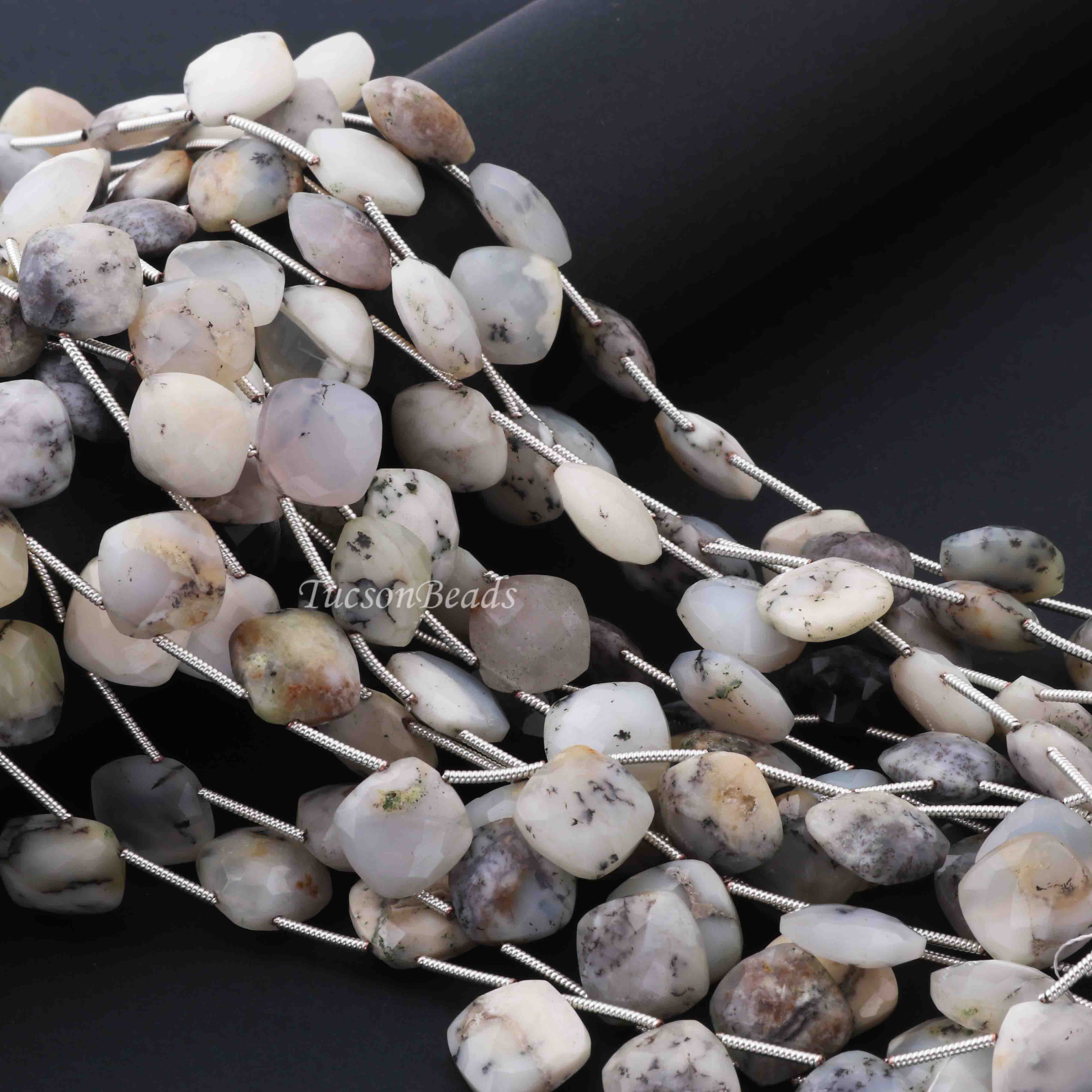 1 Strand Dendrite Opal Faceted Cushion Shape Briolettes - Dendrite Opal Cushion Shape Beads 8mm 7.5 Inches BR0153