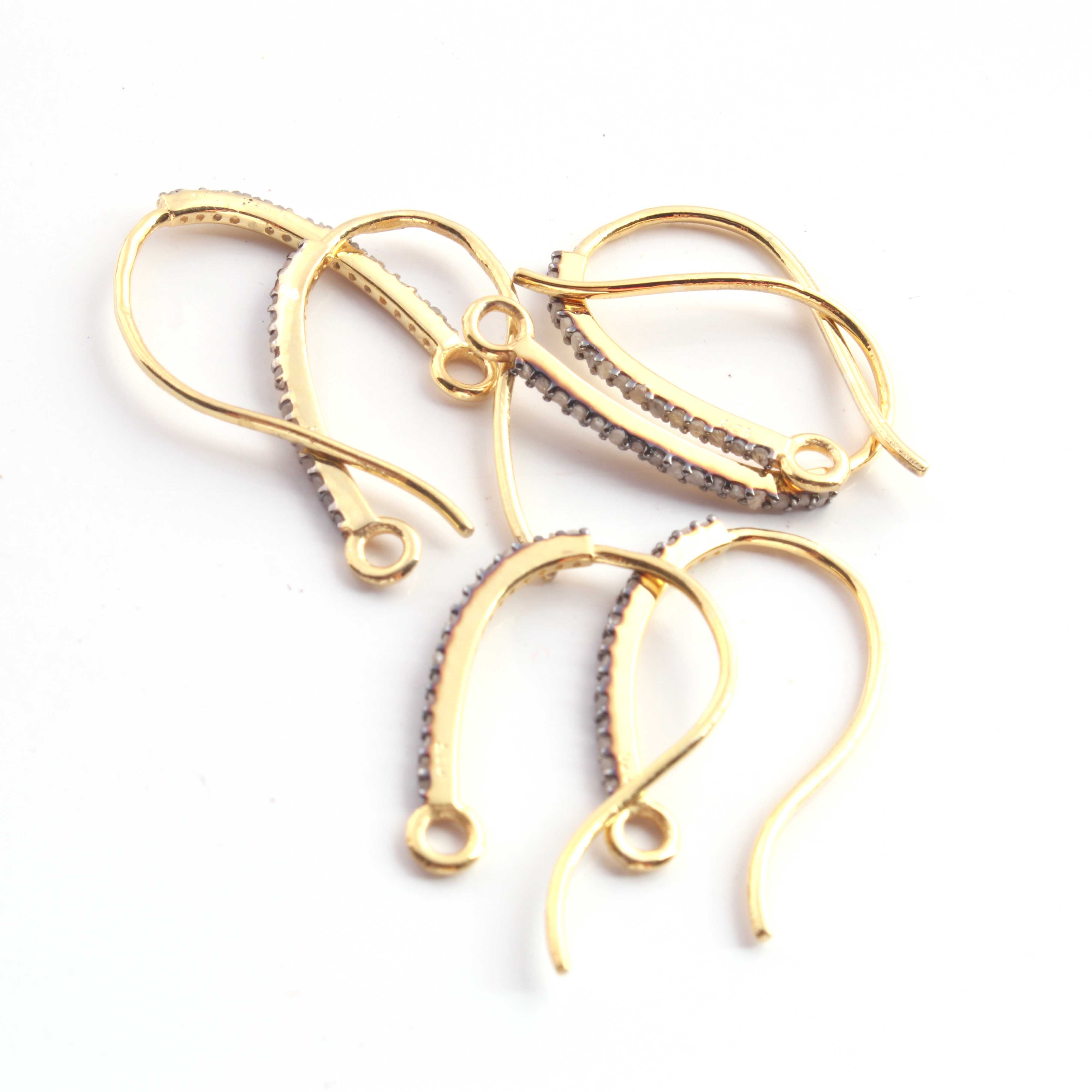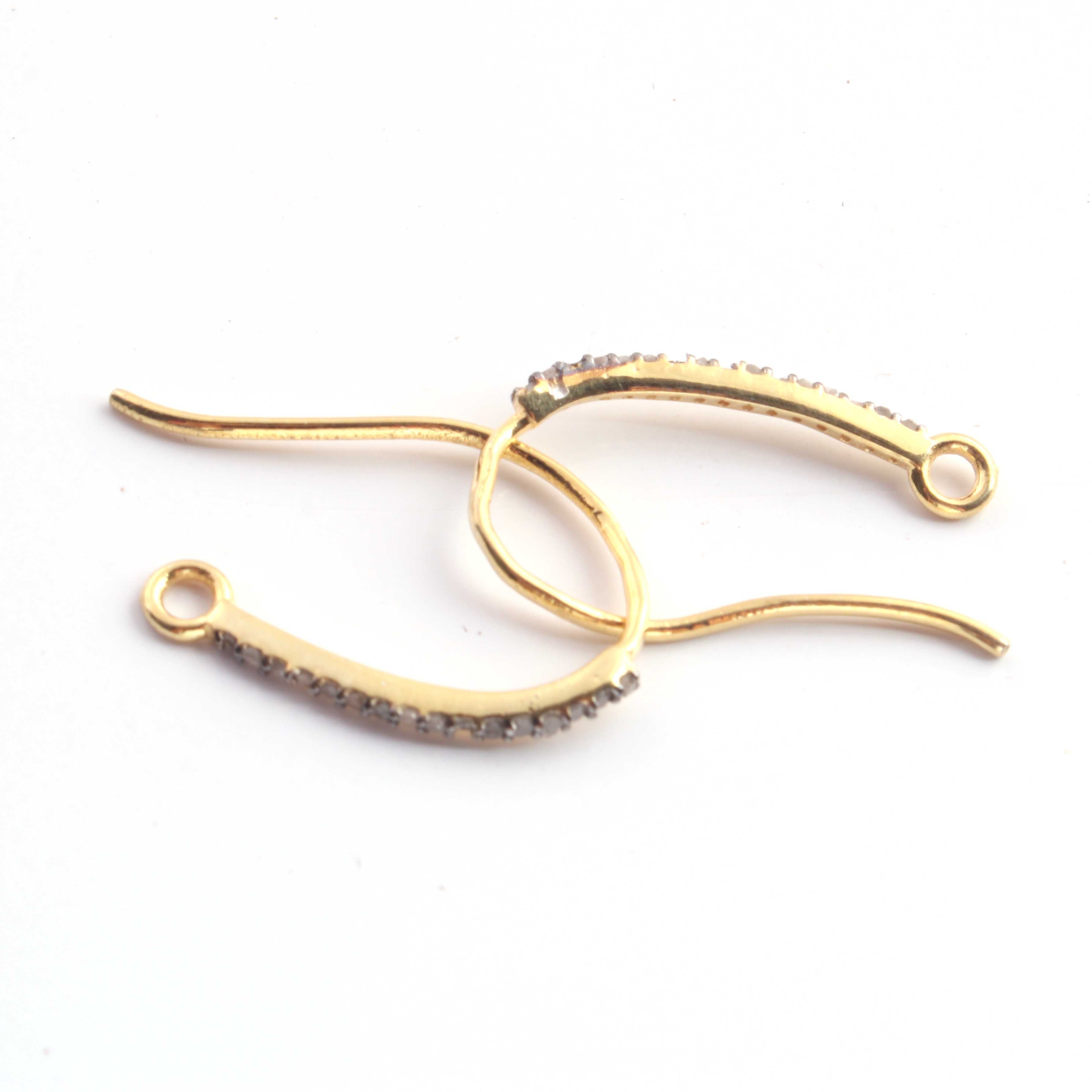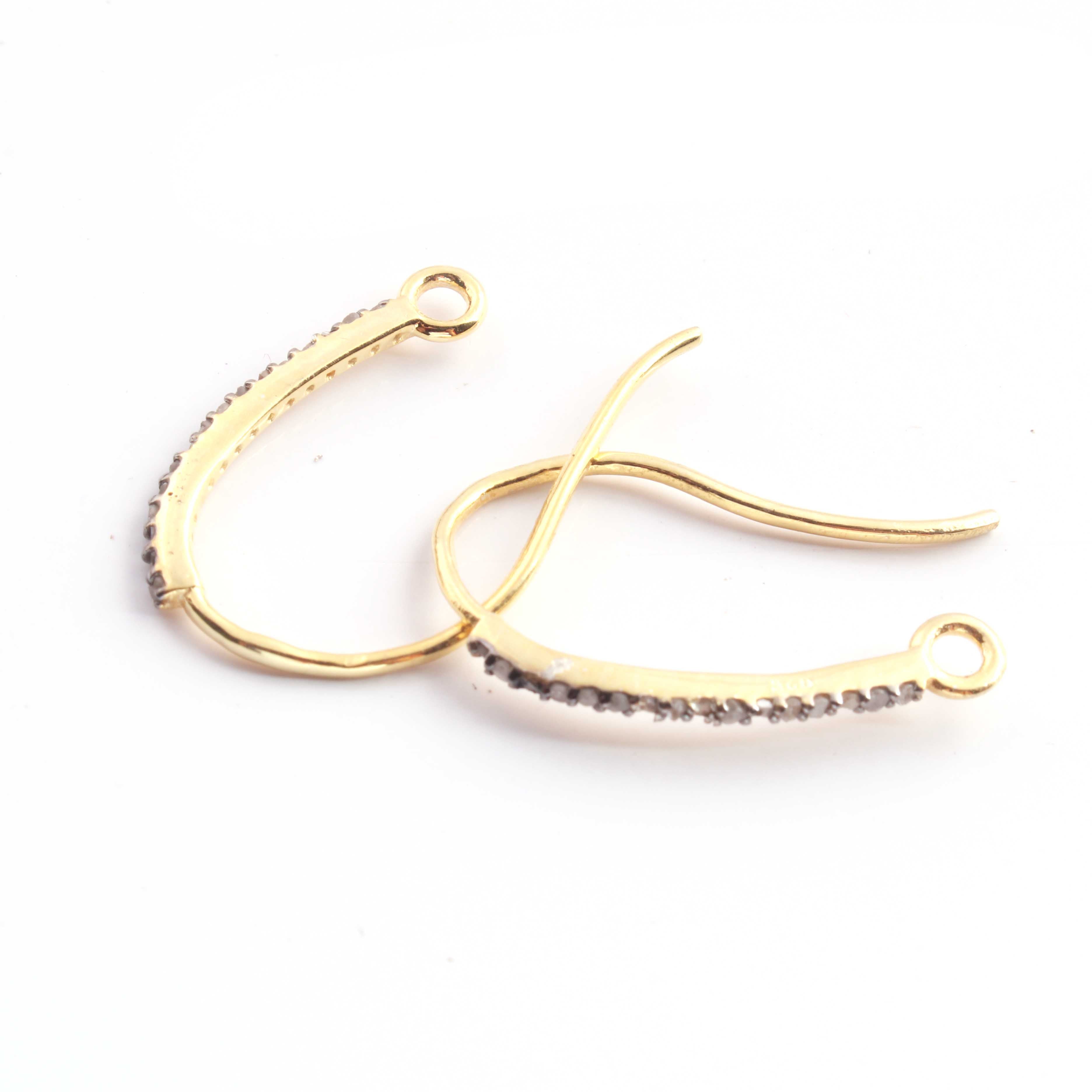Listing Is For One (1) Pair Pave Diamond Hoop Earring - 925 Sterling Vermeil Fish Hoop Earring PDC875