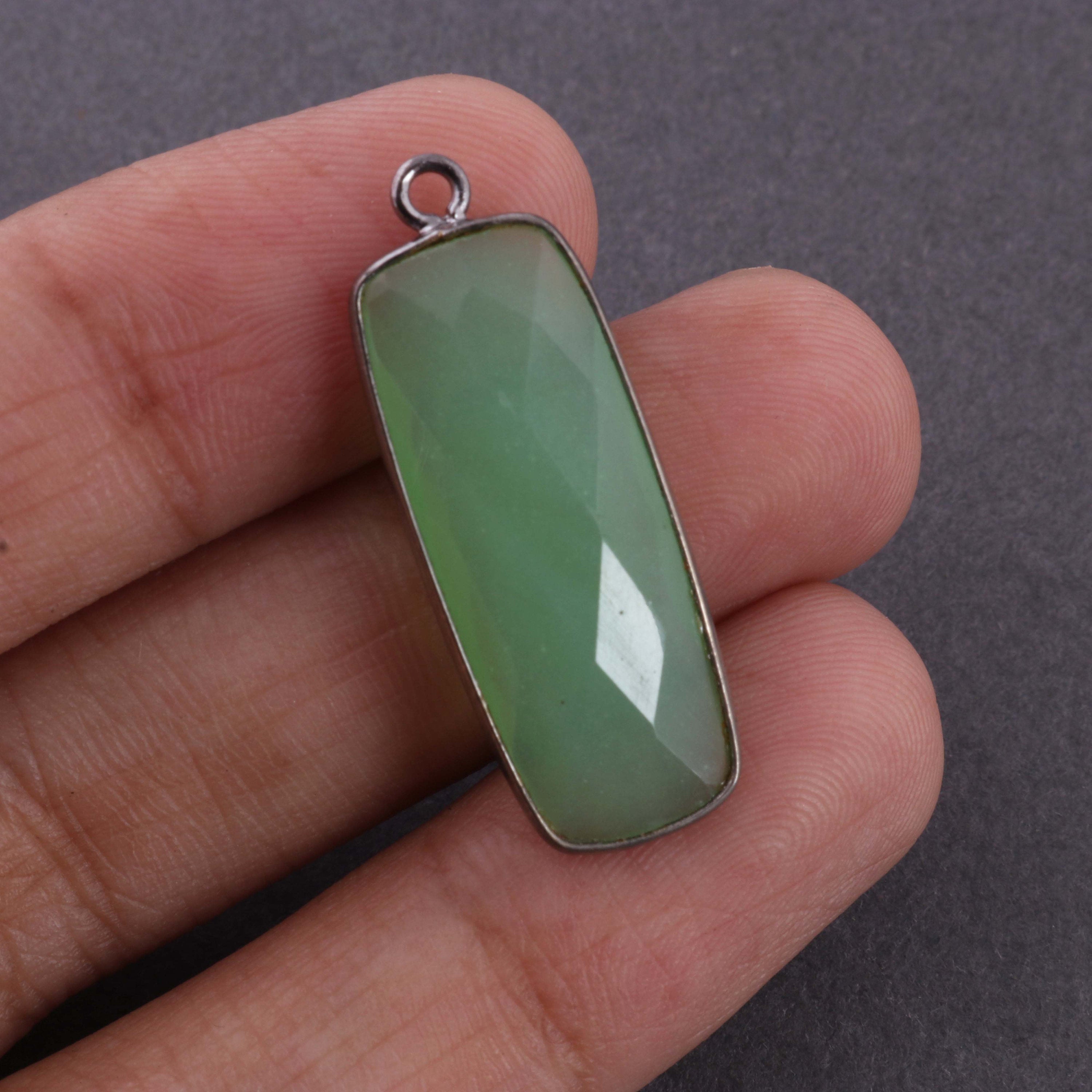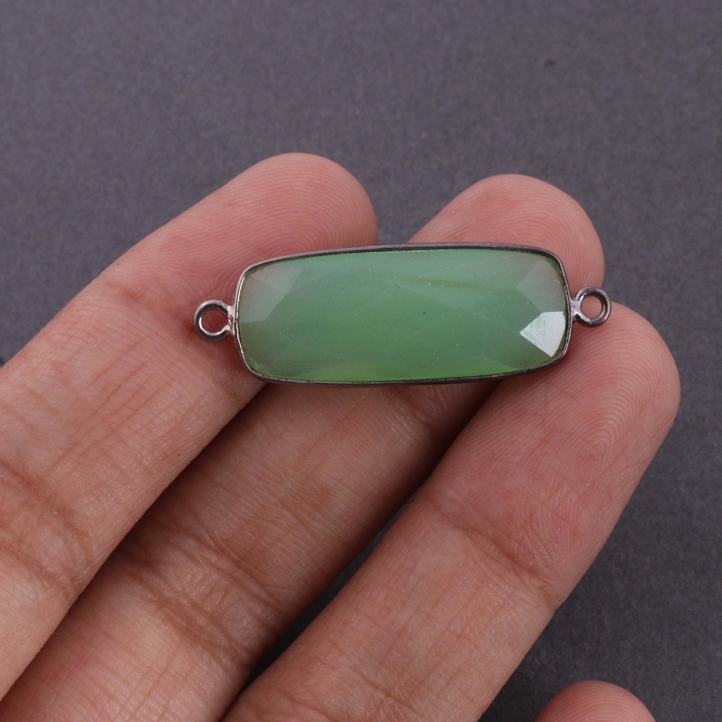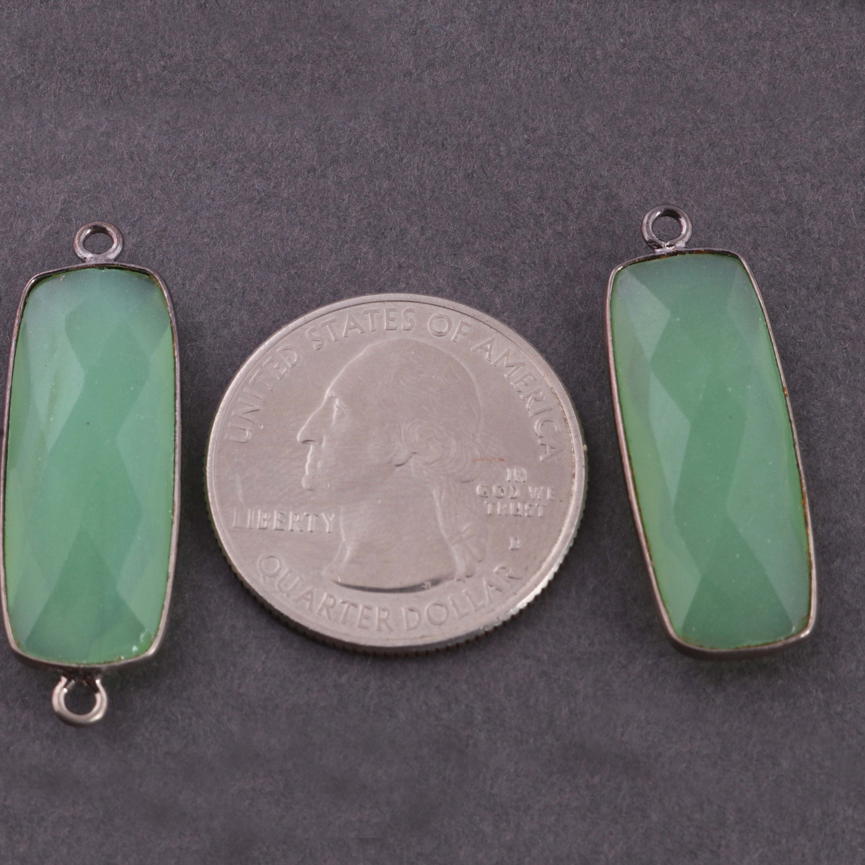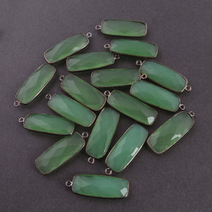 8 pcs Green Chalcedony Faceted Rectangle Shape Oxidized Plated Connector/Pendant PC370