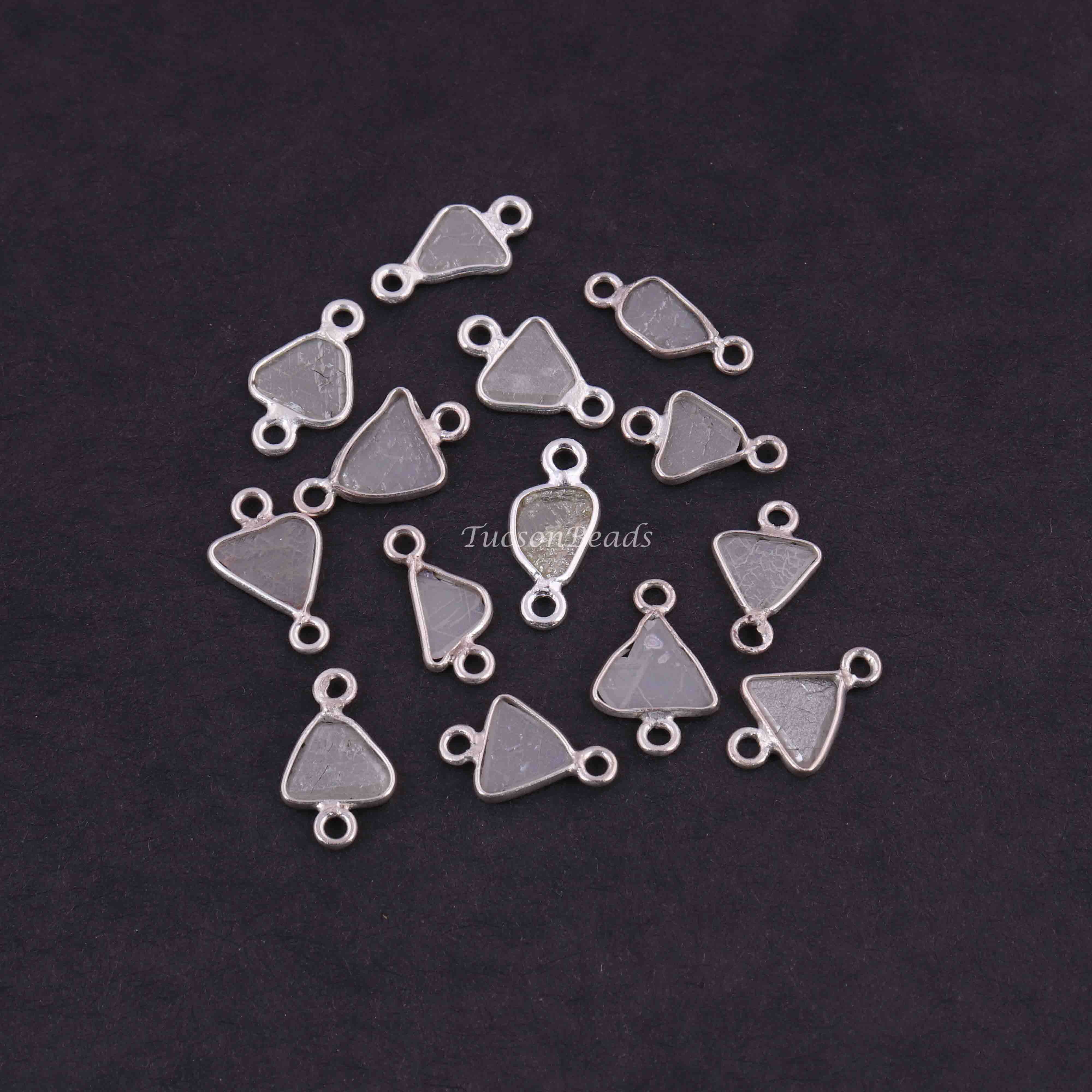 1 Pc Natural Grey White Slice Raw Diamond 925 Sterling Silver Pendant- Diamond Slice Pendant, Uncut Diamond, -13mmx8mm BDU068