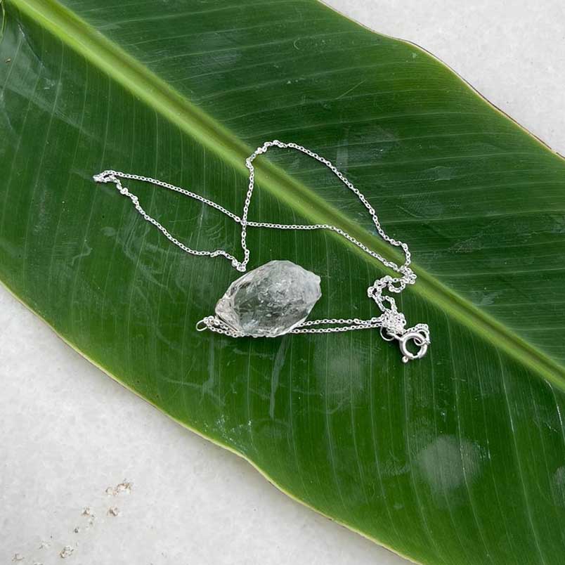 Herkimer Diamond Necklace With 925 Sterling Silver Chain, Gemstone Necklace 25mmx15mm- 18 Inches Long HR006