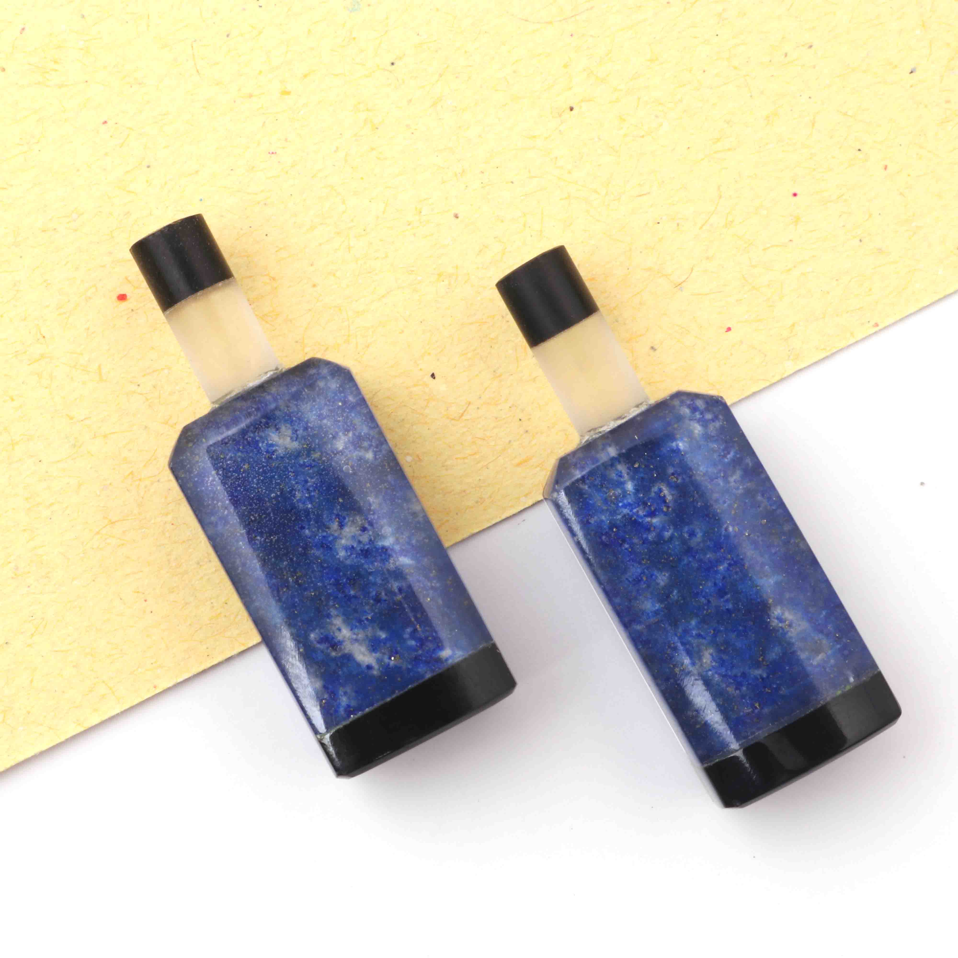 Matched Pairs Natural Lapis ,Black Onyx Joined Smooth Bottle Shape Loose Gemstone 26mmx9mm BG015