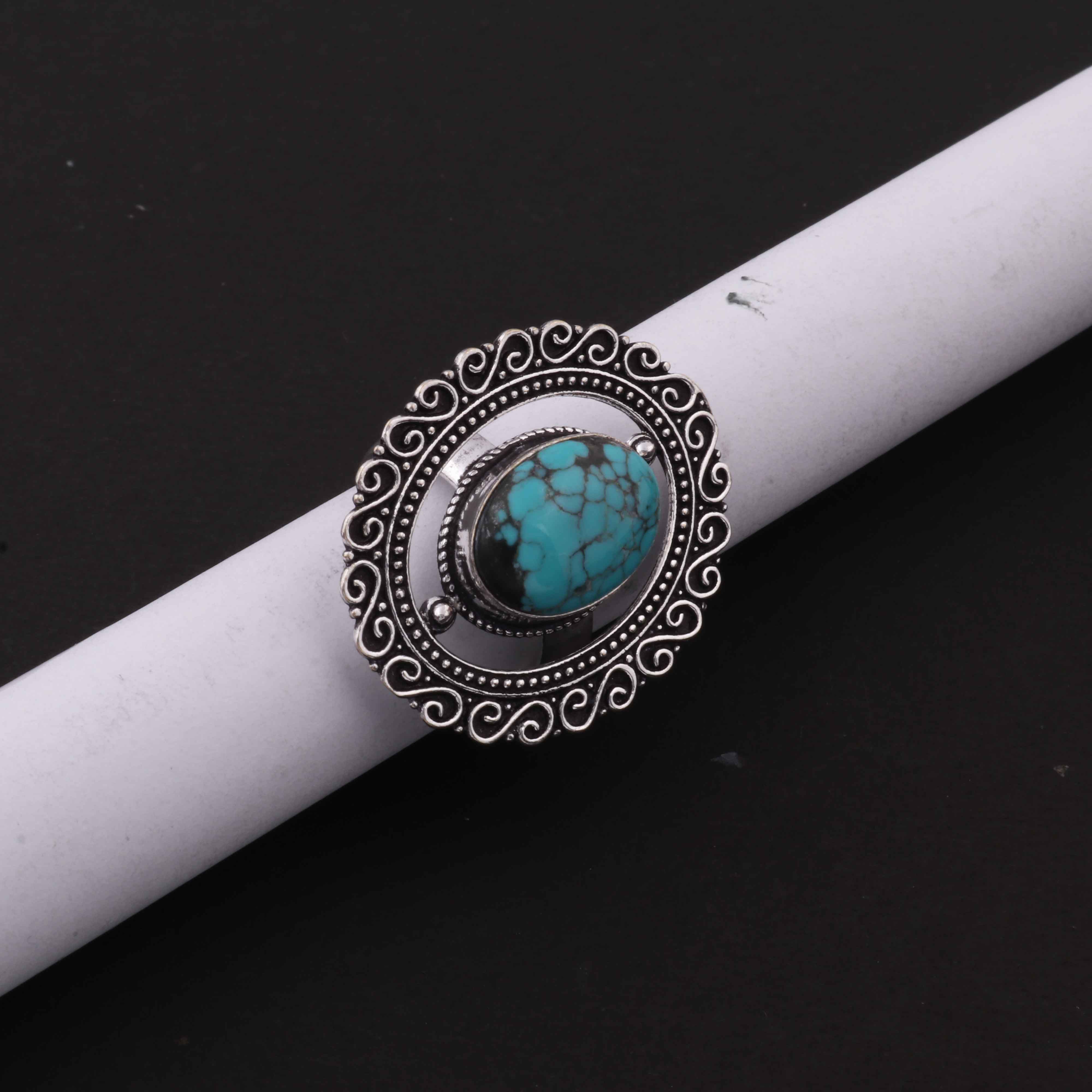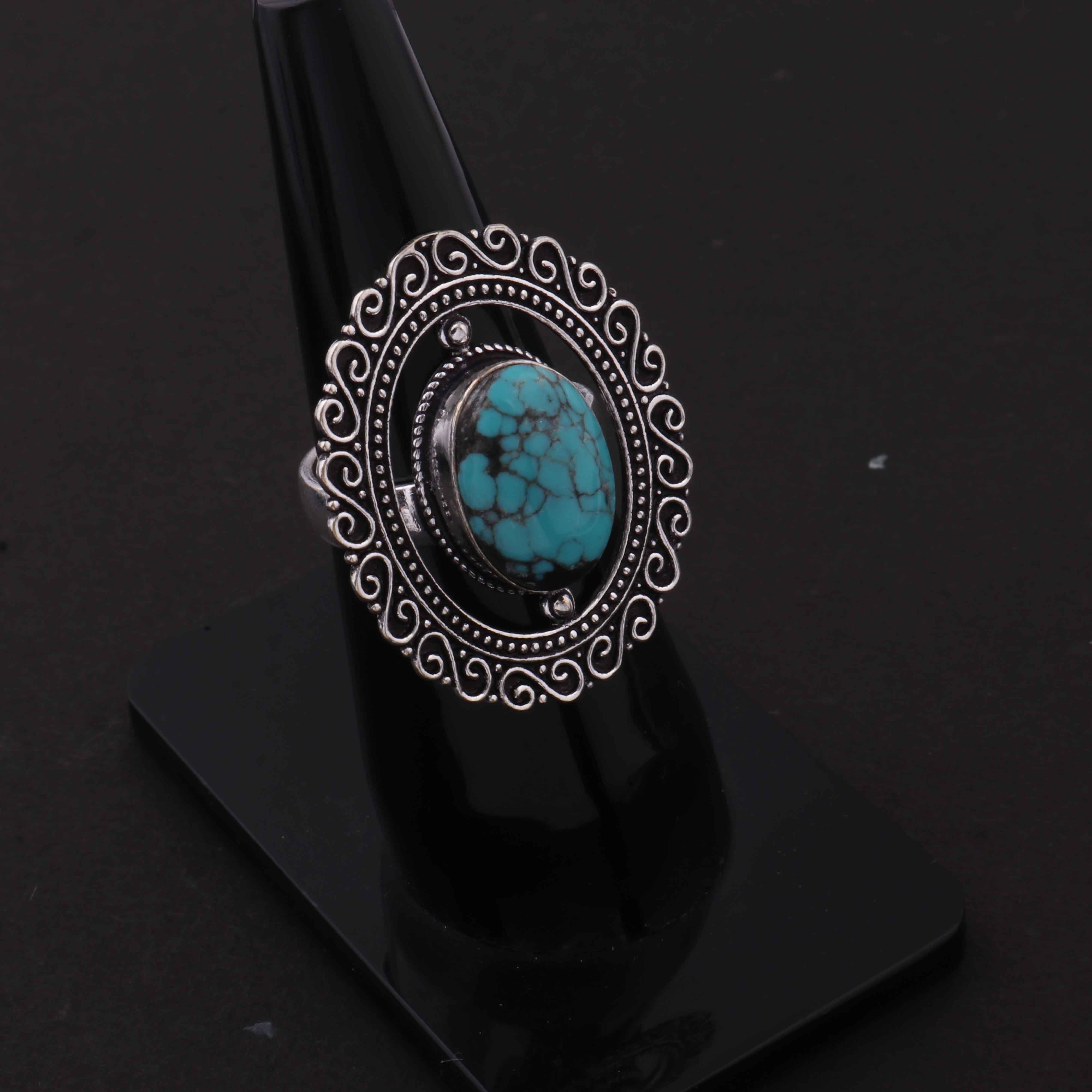 1 Pc Designer Oval 925 Sterling Silver Plated With High Quality Arizona Turquoise Ring -Gemstone Ring- OS053