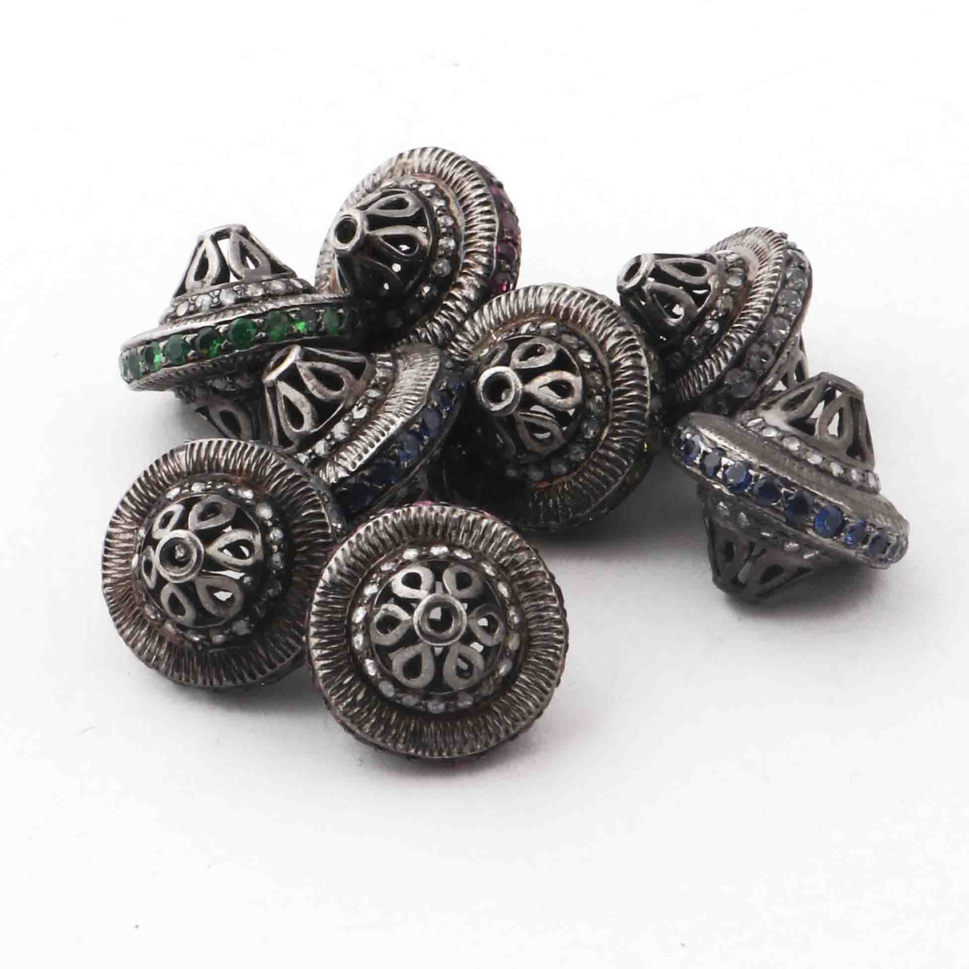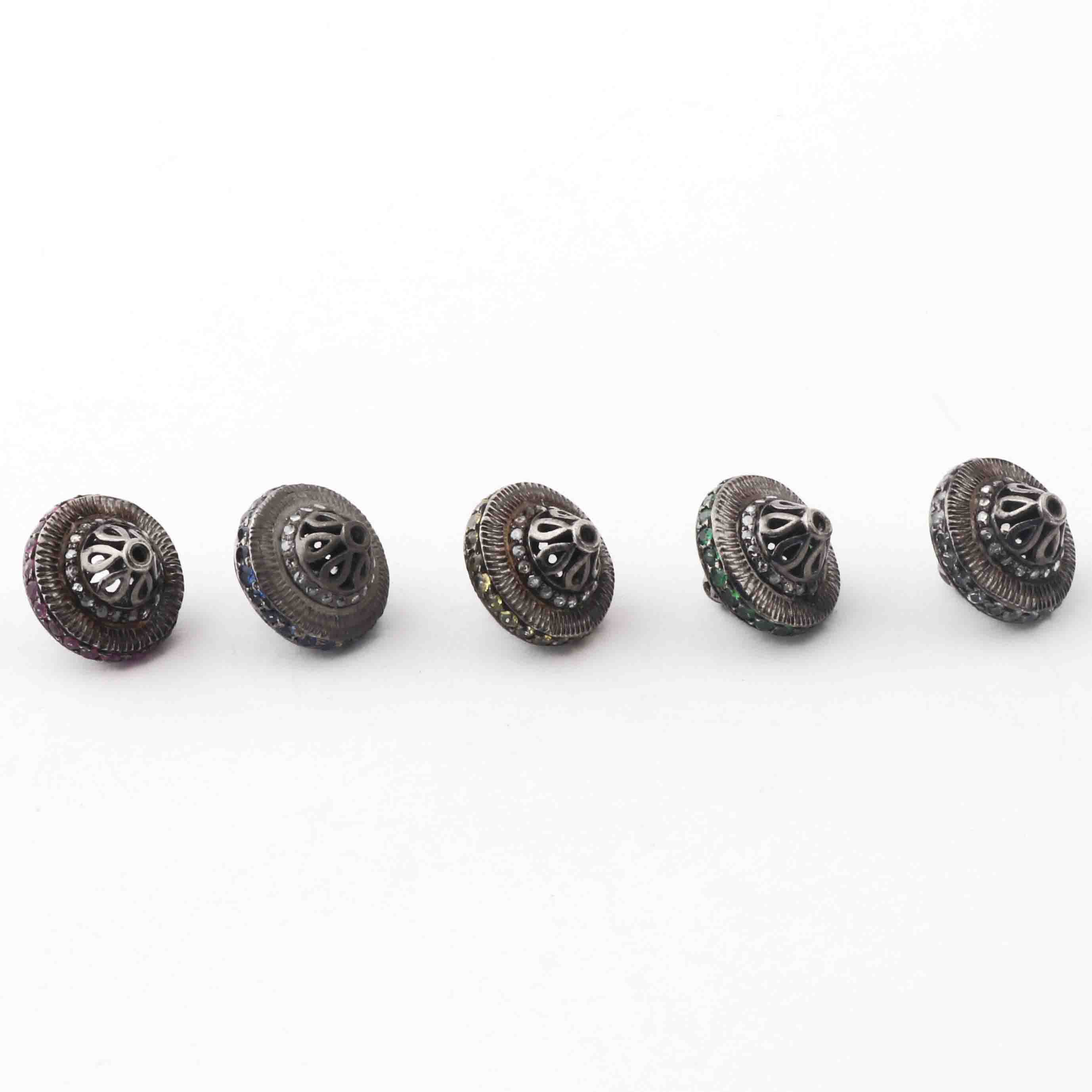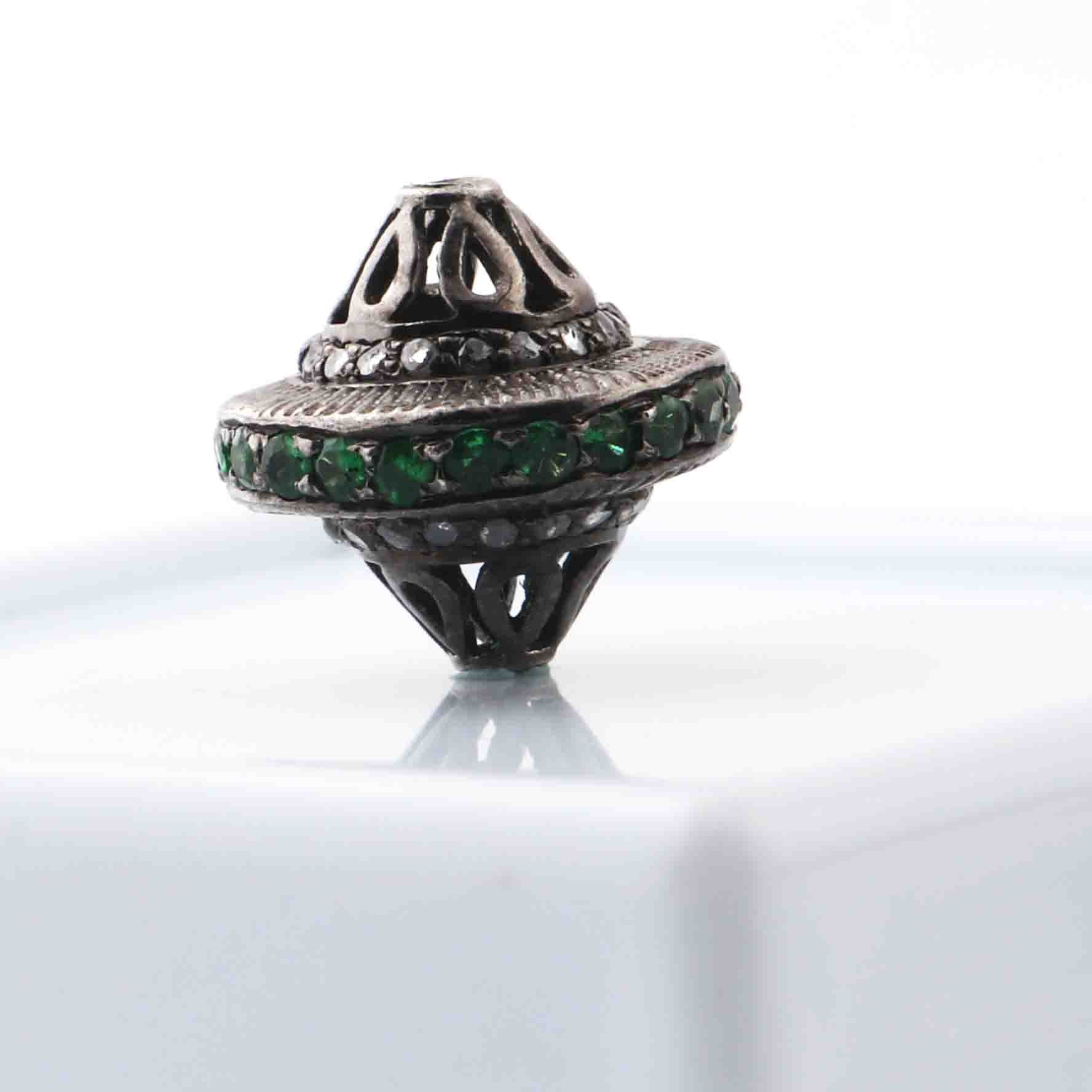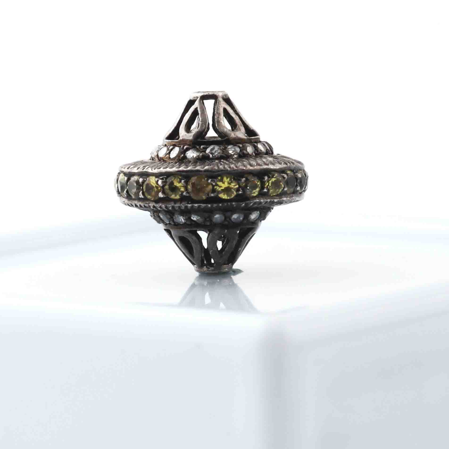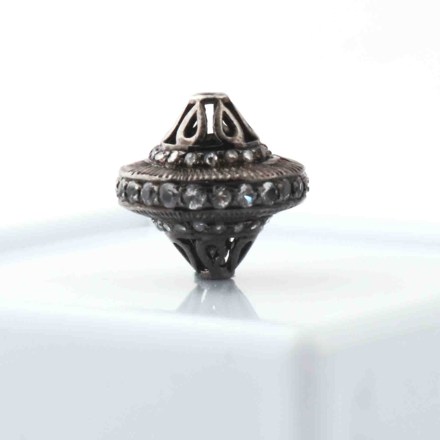 Listing Is For 1 Pc Pave Diamond 925 Sterling Silver Antique Finish Designer Melon Bead - 13mm PDC1348