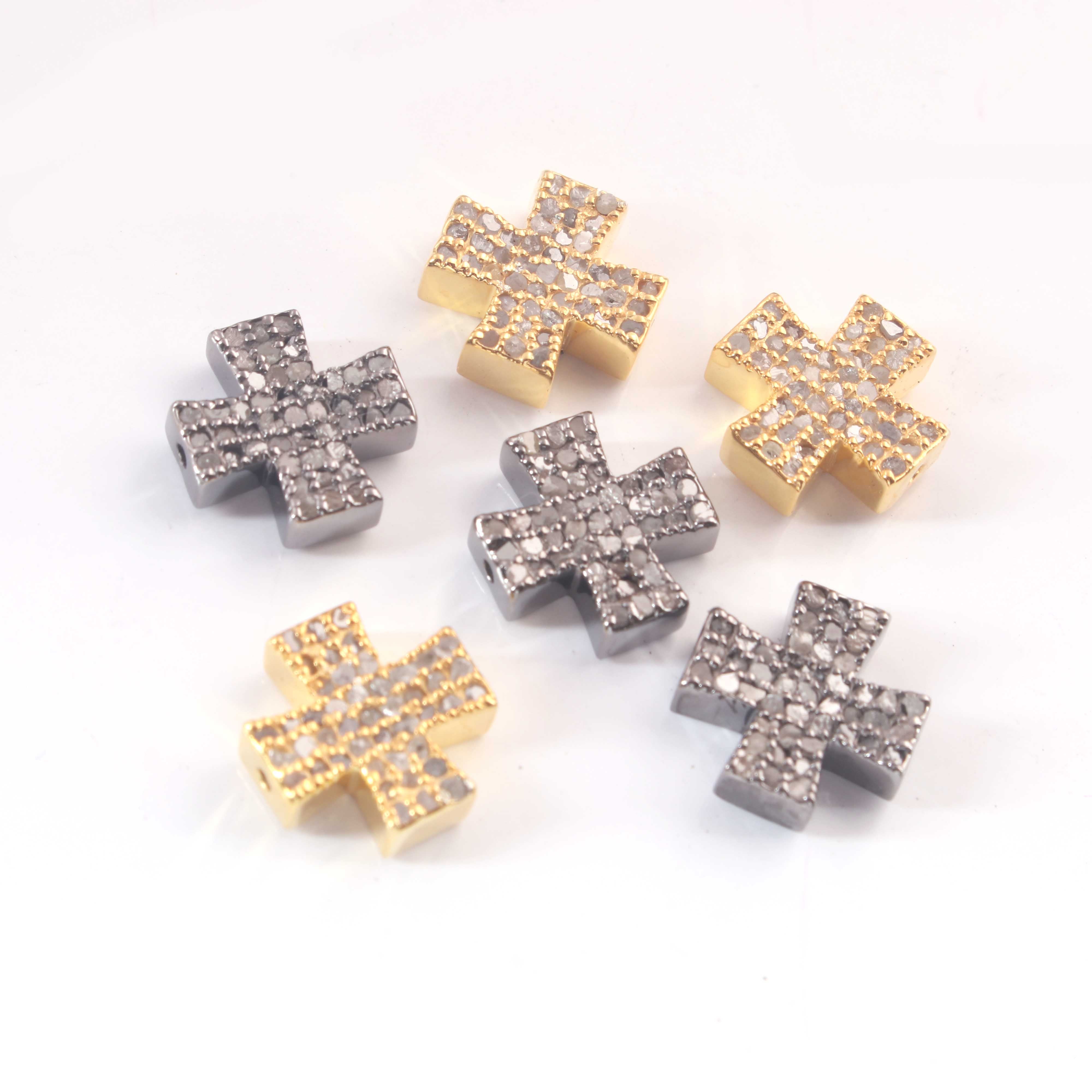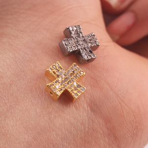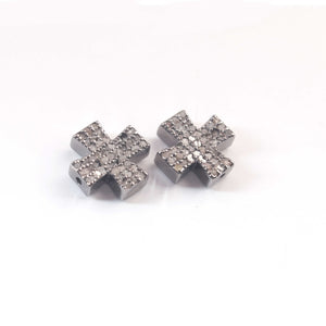 Listing Is For One (1) Pc Beautiful Pave Diamond Cross Bead 925 Sterling Silver - Antique Finish Designer Bead - Plus Sign Bead PDC1105