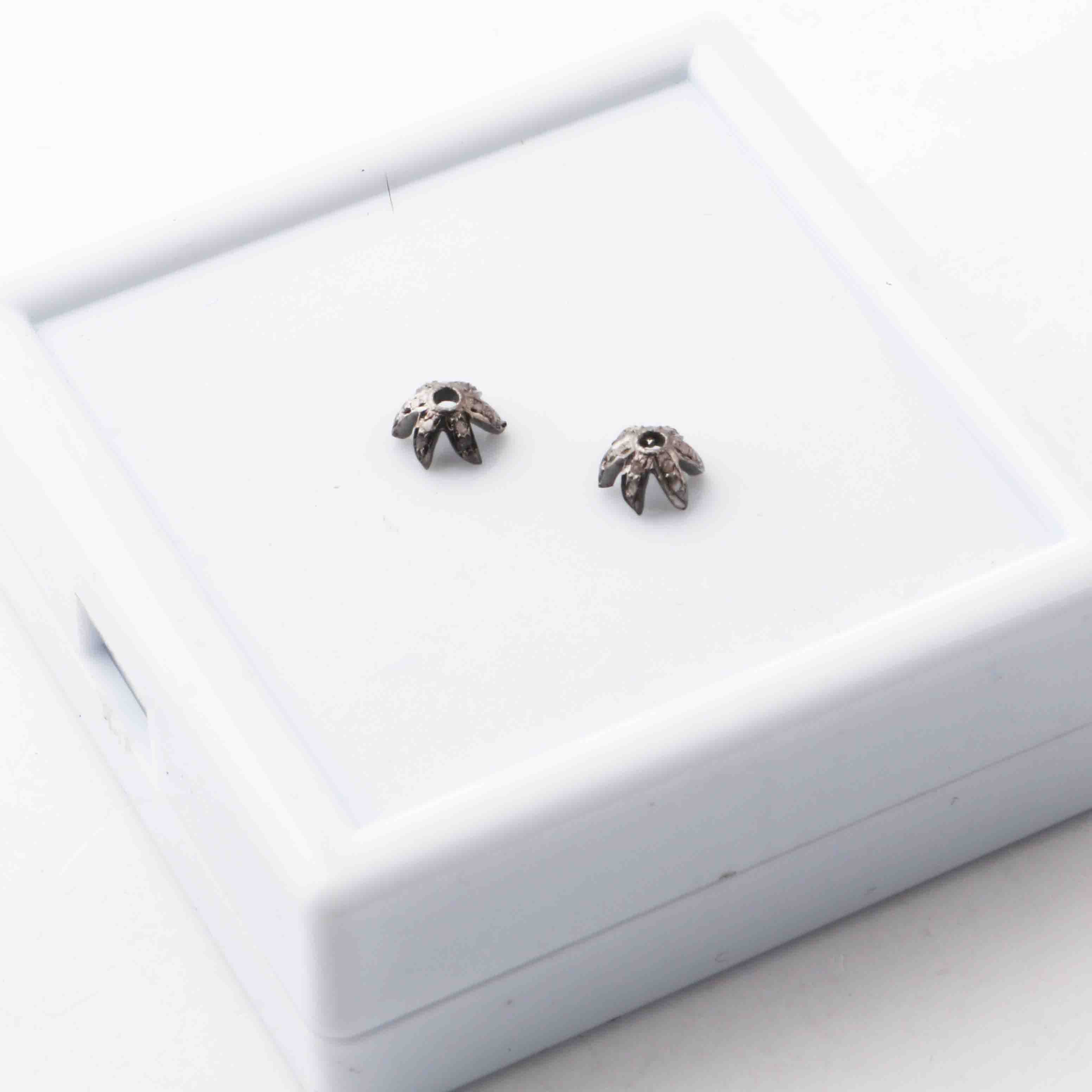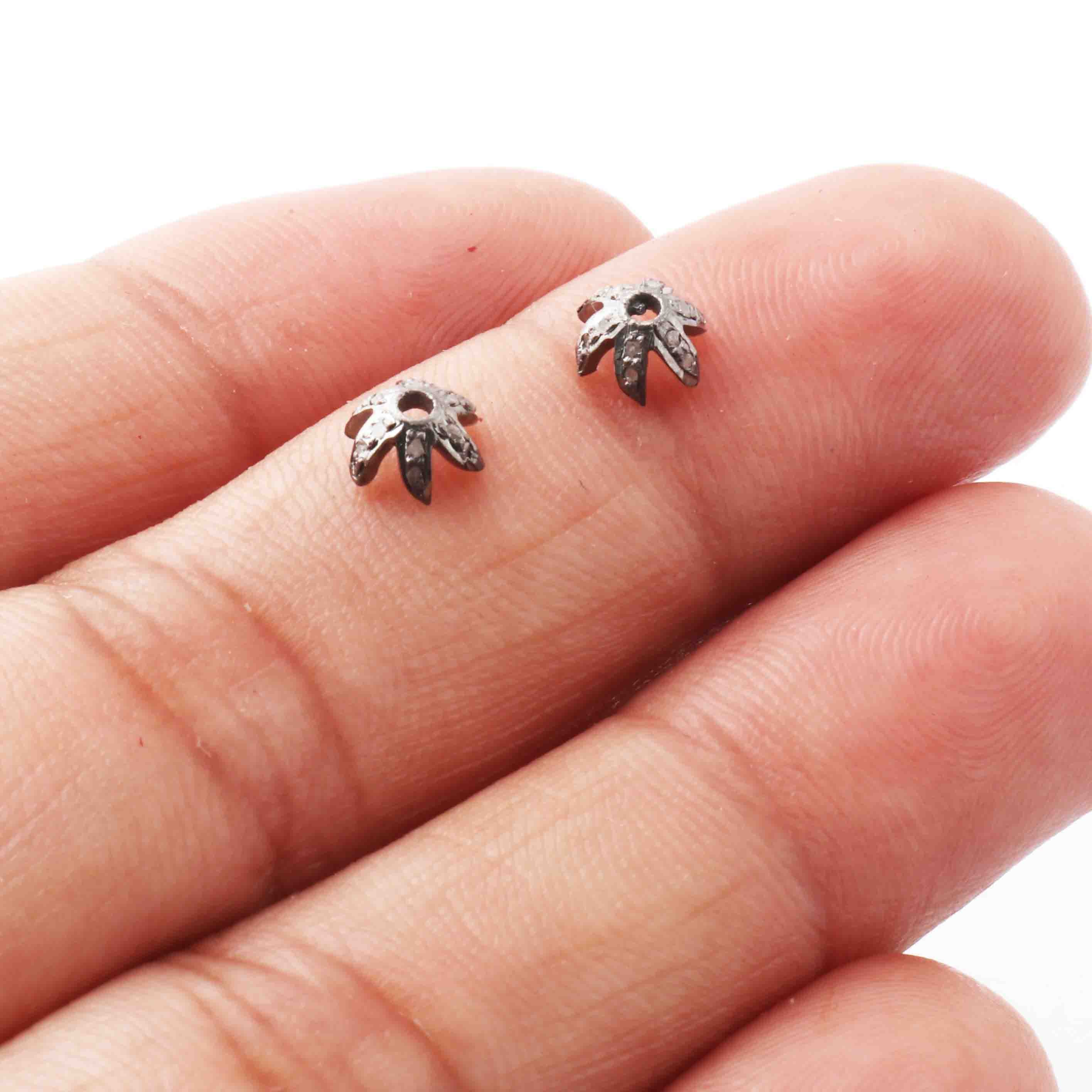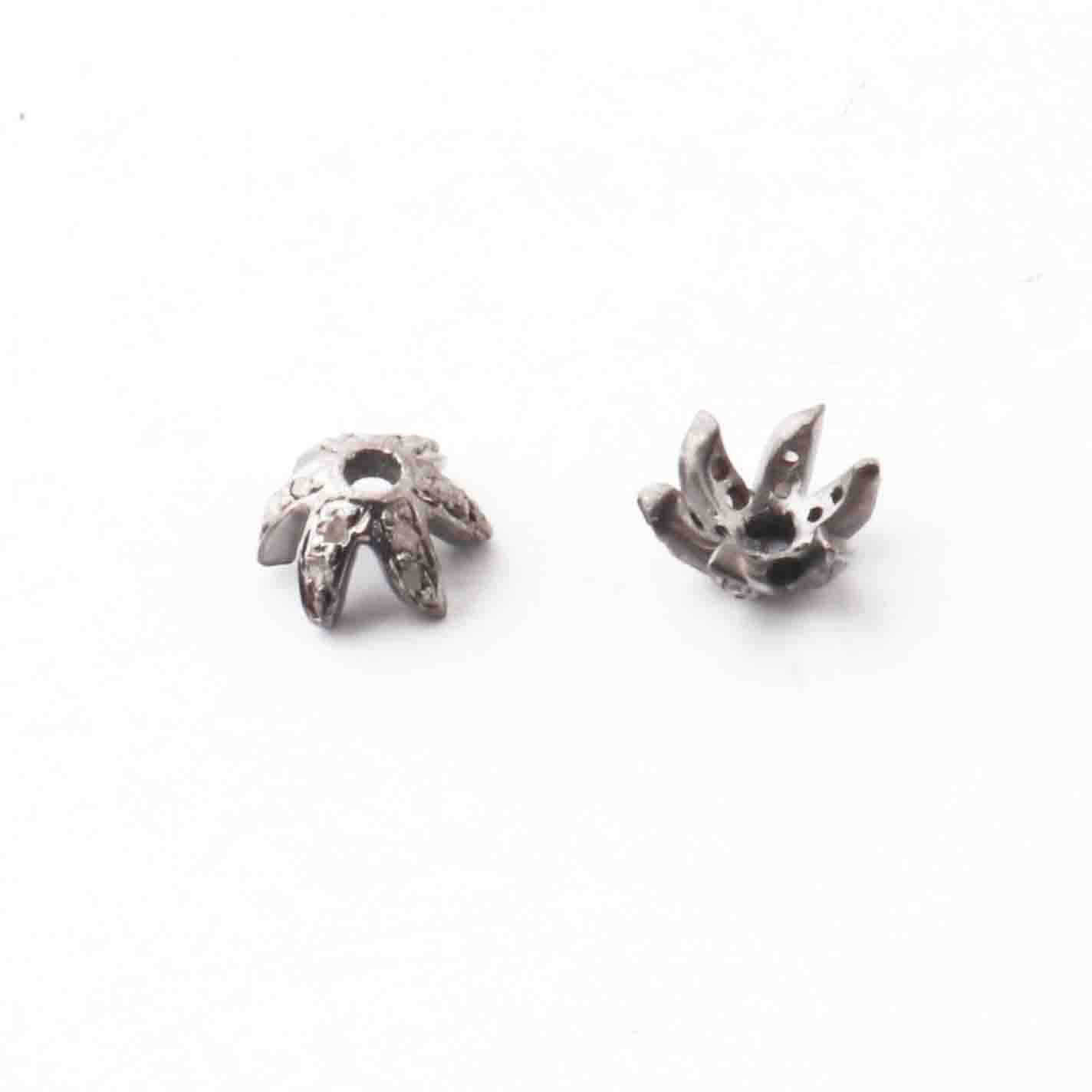 Listing Is For (1) Pc Pave Diamond Antique Finish Flower Half Cap Beads Over 925 Sterling Silver - Pave Jewelry Bead 6mm PDC323
