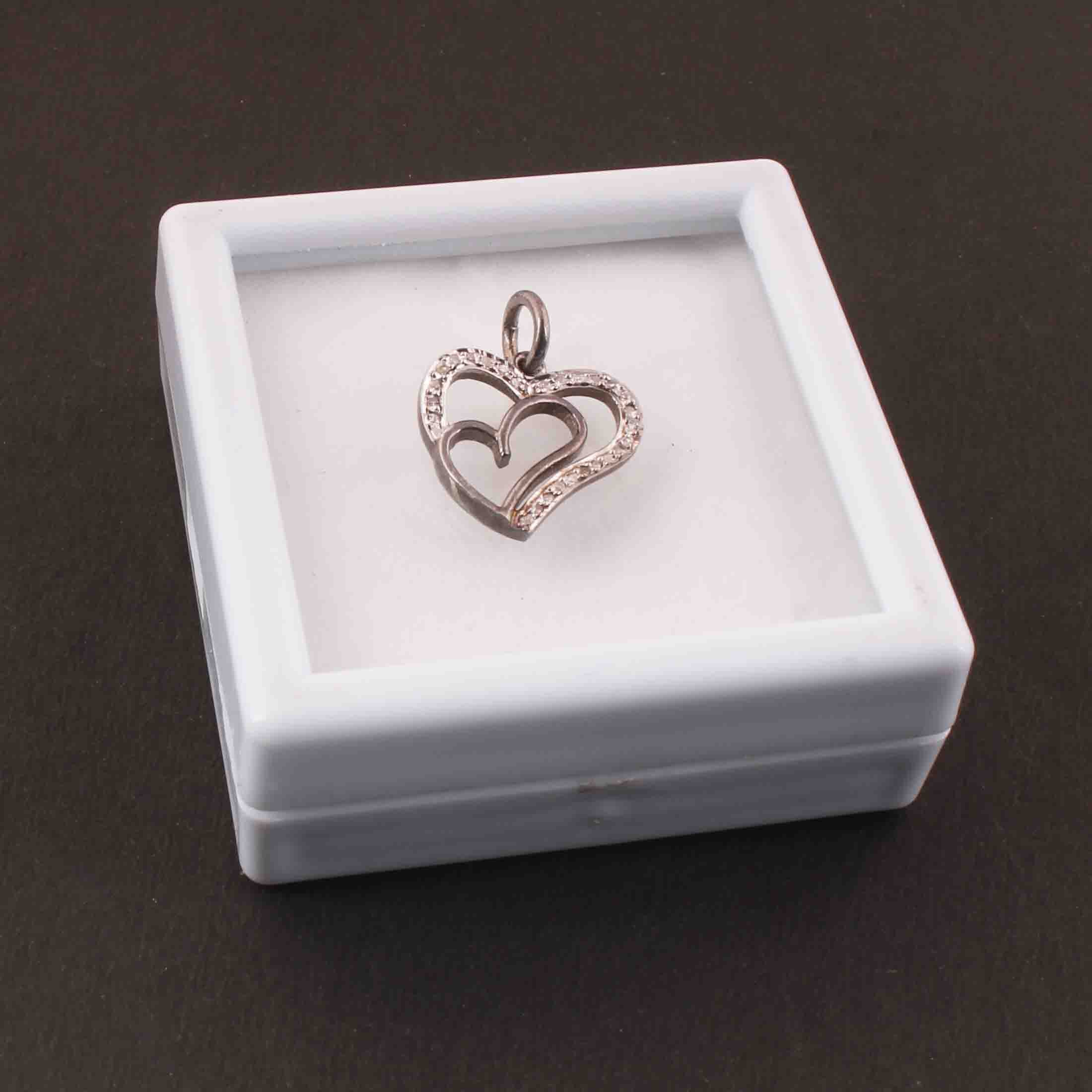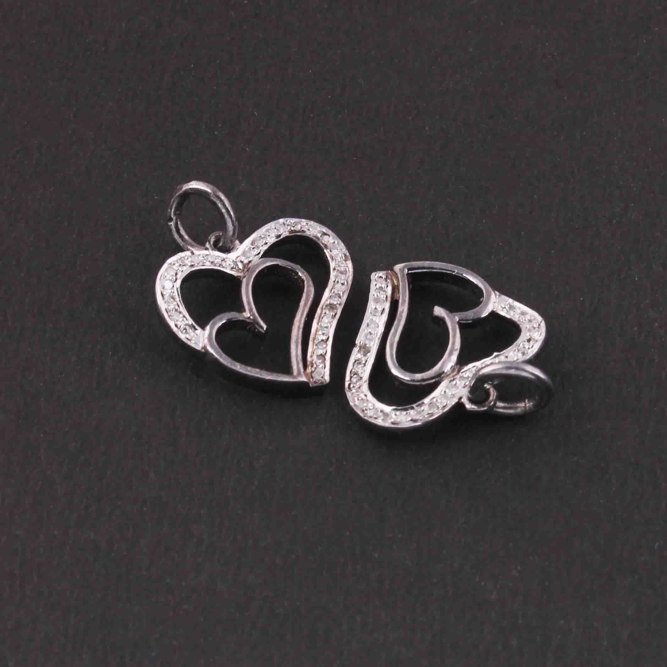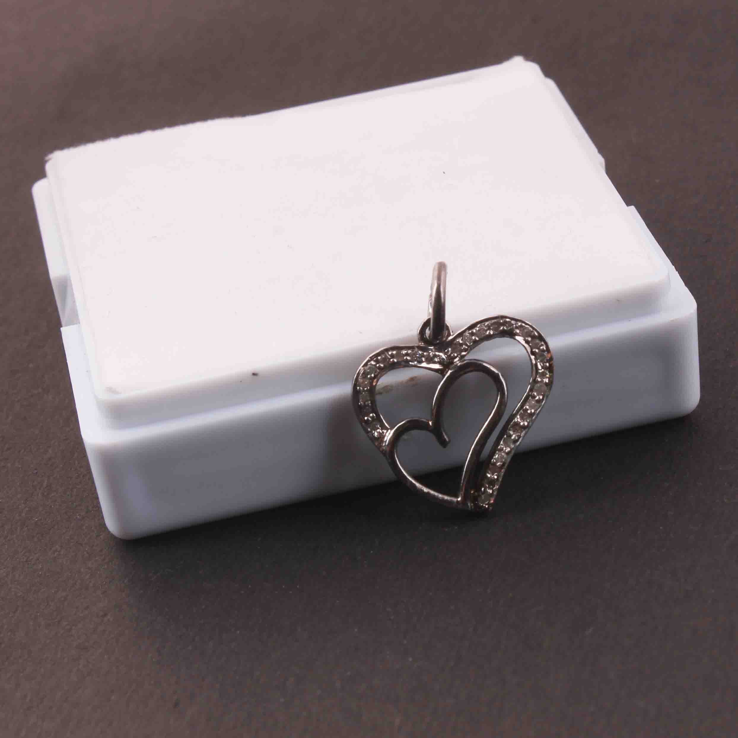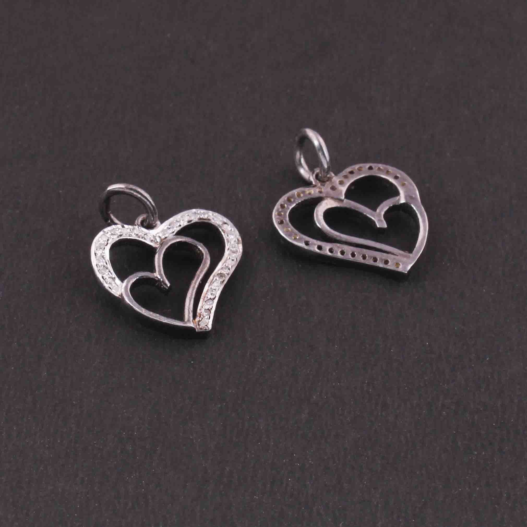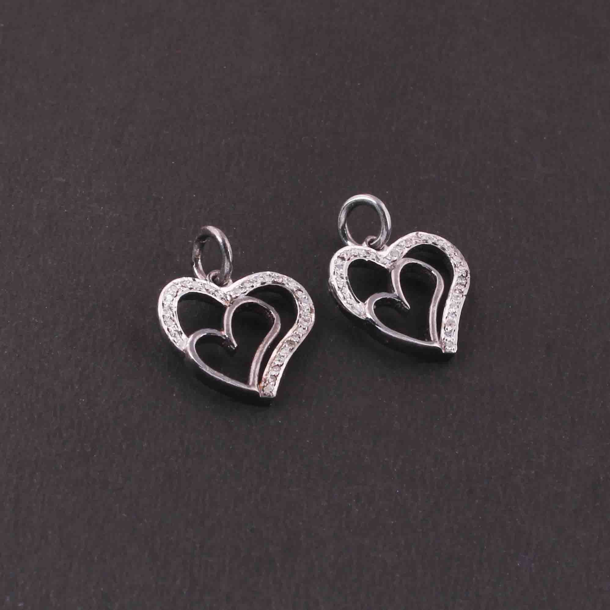 1 Pc Natural Pave Diamond Heart Charm Pendant --925 Sterling Silver Charm 16mm PDC944