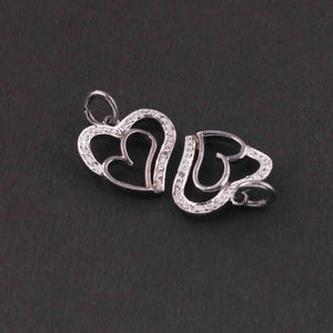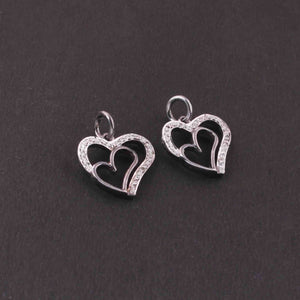 Listing Is For (1) Pc Natural Pave Diamond Heart Charm Pendant --925 Sterling Silver Charm 16mm PDC944